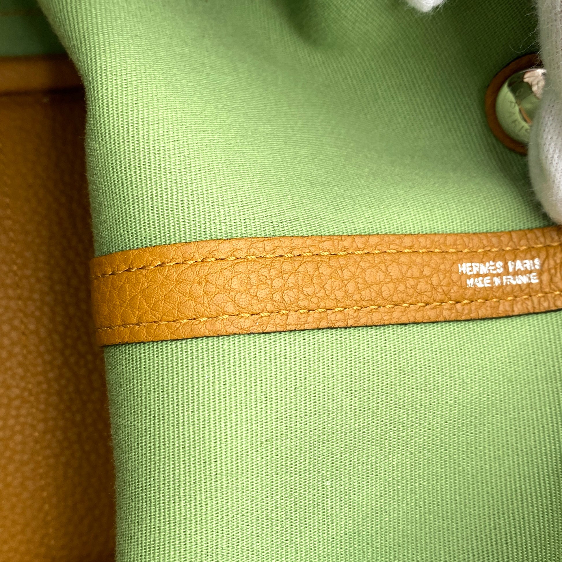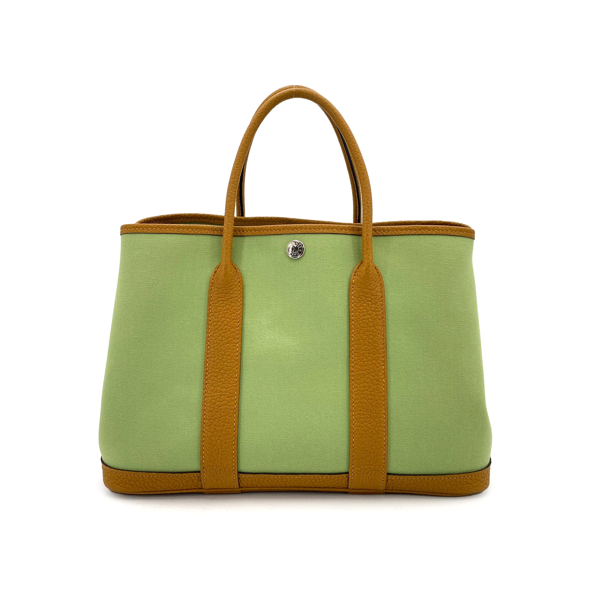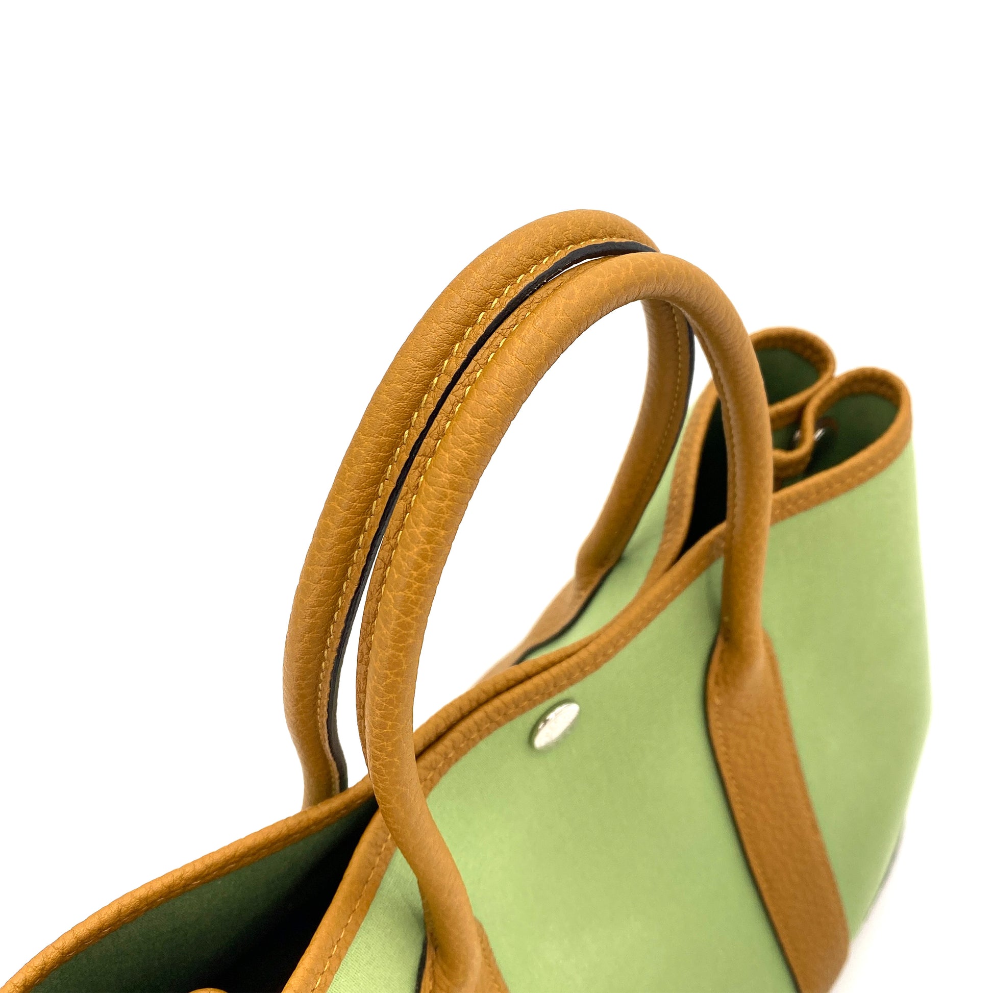 HERMES GARDEN PARTY TPM VERT CRIQUET OCRE TOILE OFFICIER VEAU NEGONDA HAND BAG Y 90249013