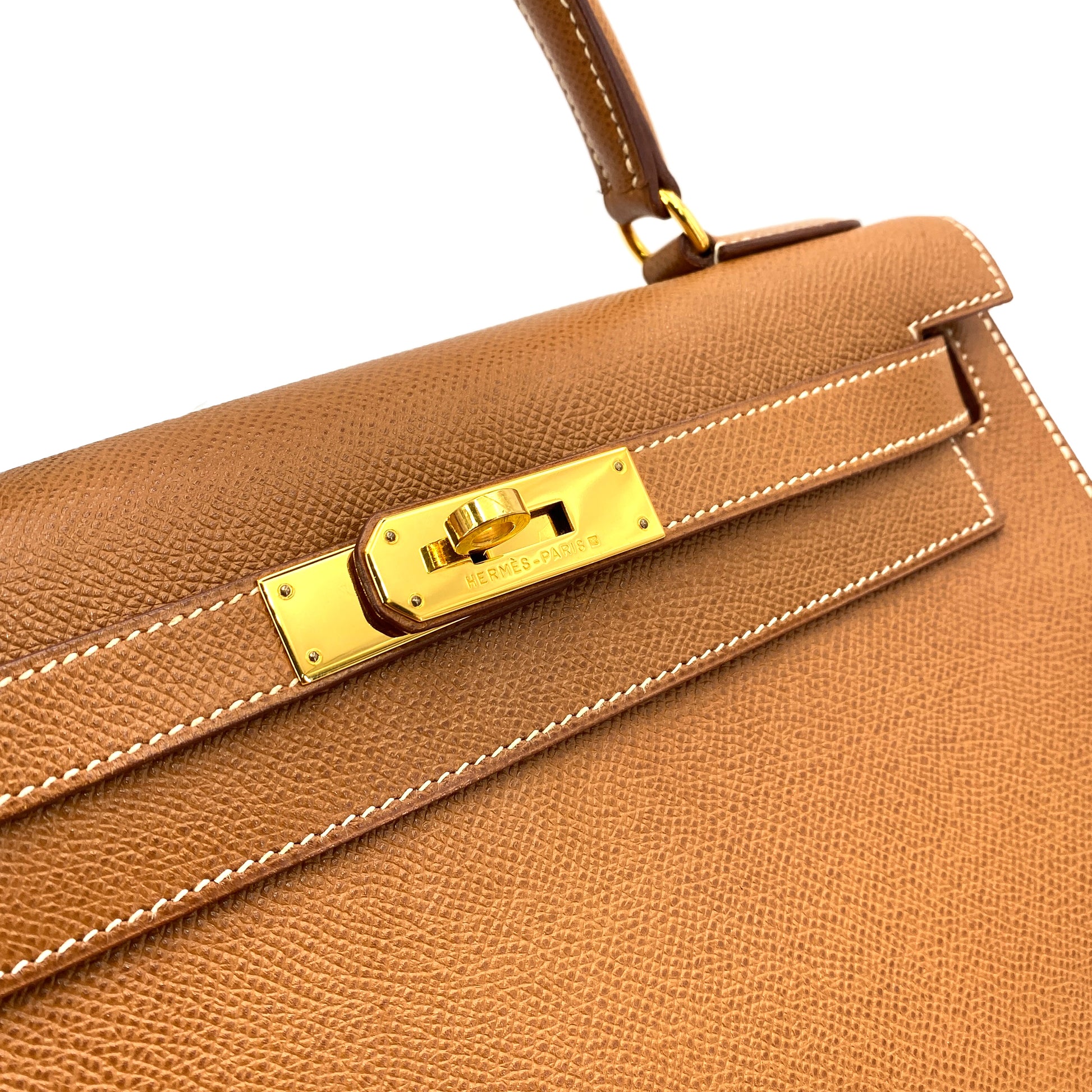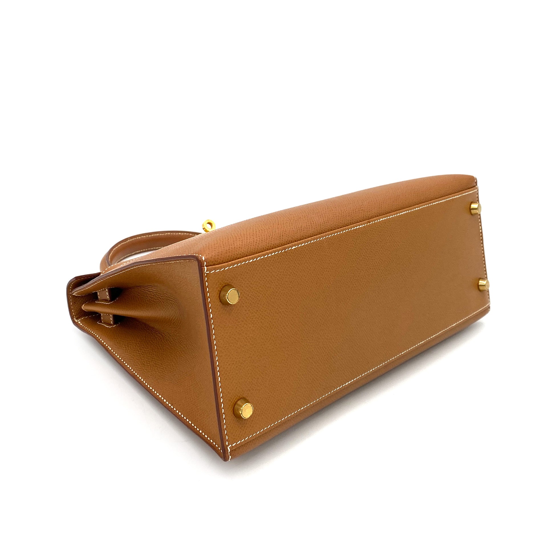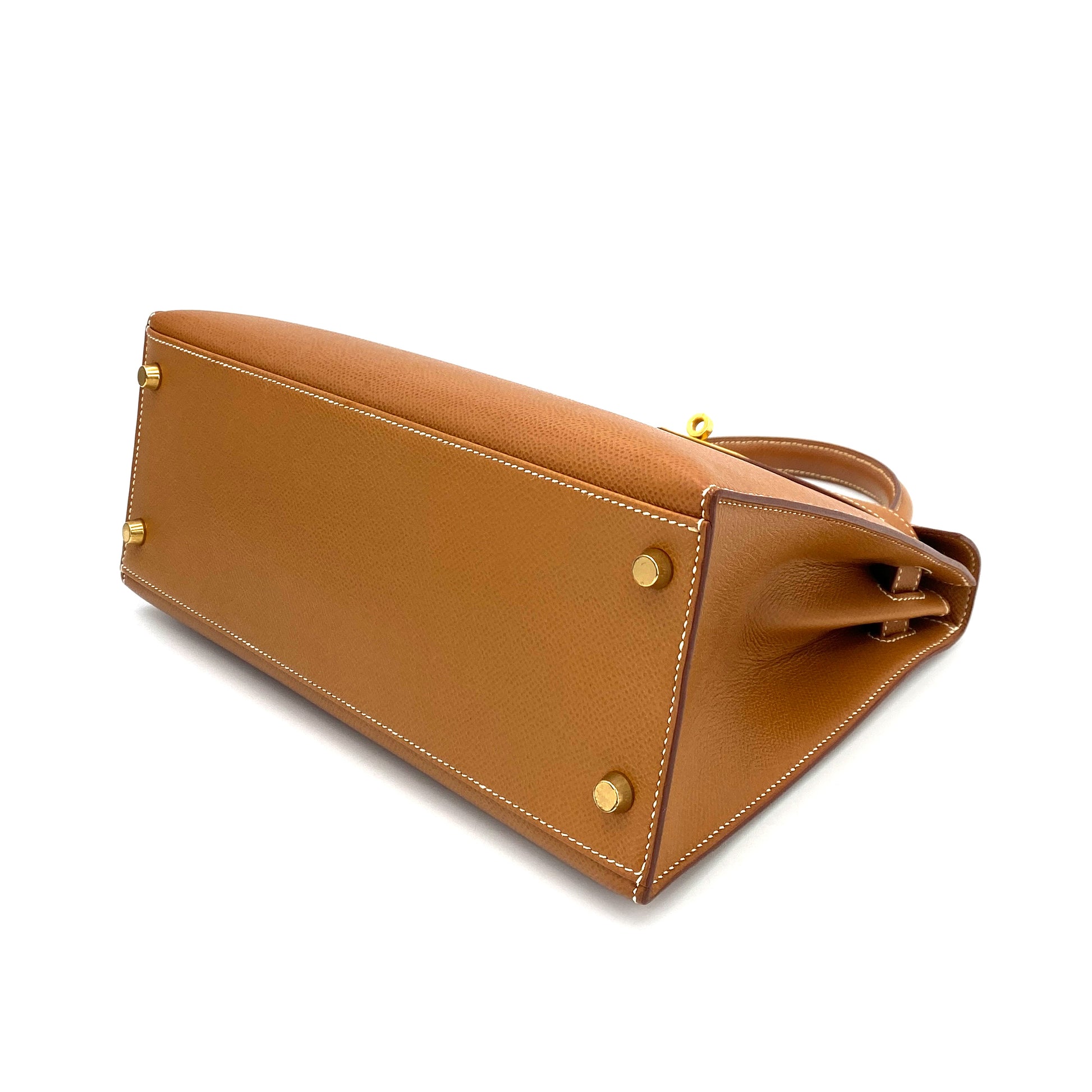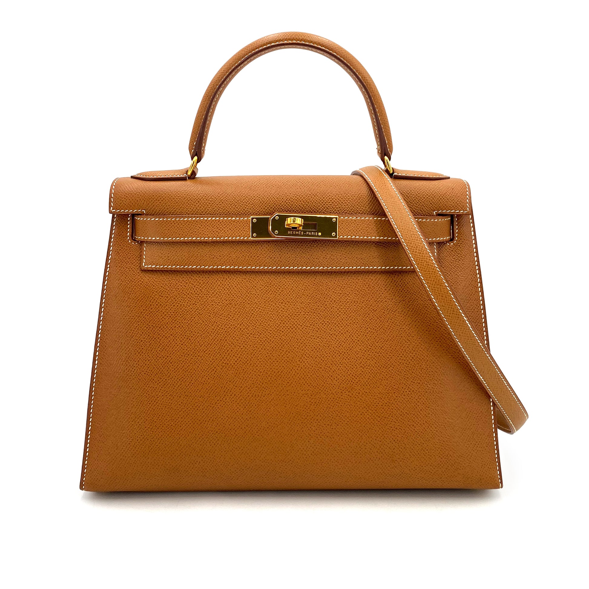 HERMES KELLY 28 SELLIER GOLD COUCHEVEL HAND SHOULDER BAG 〇Y 90249025