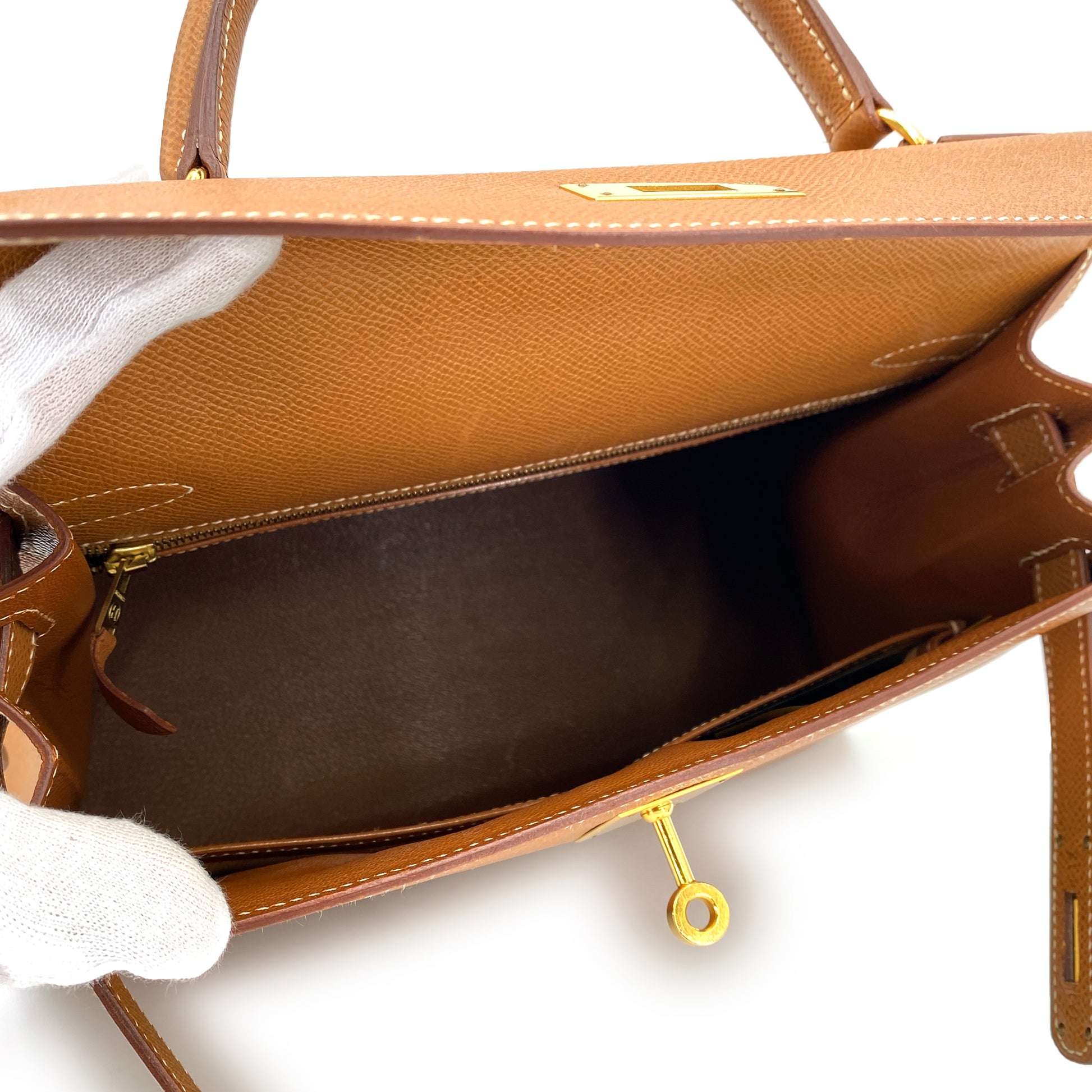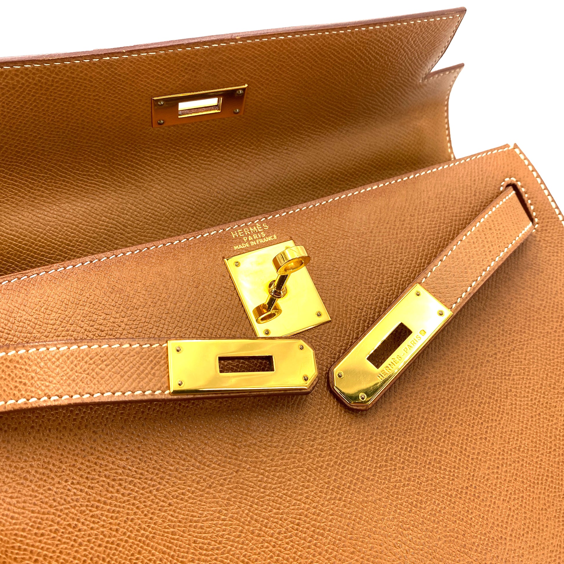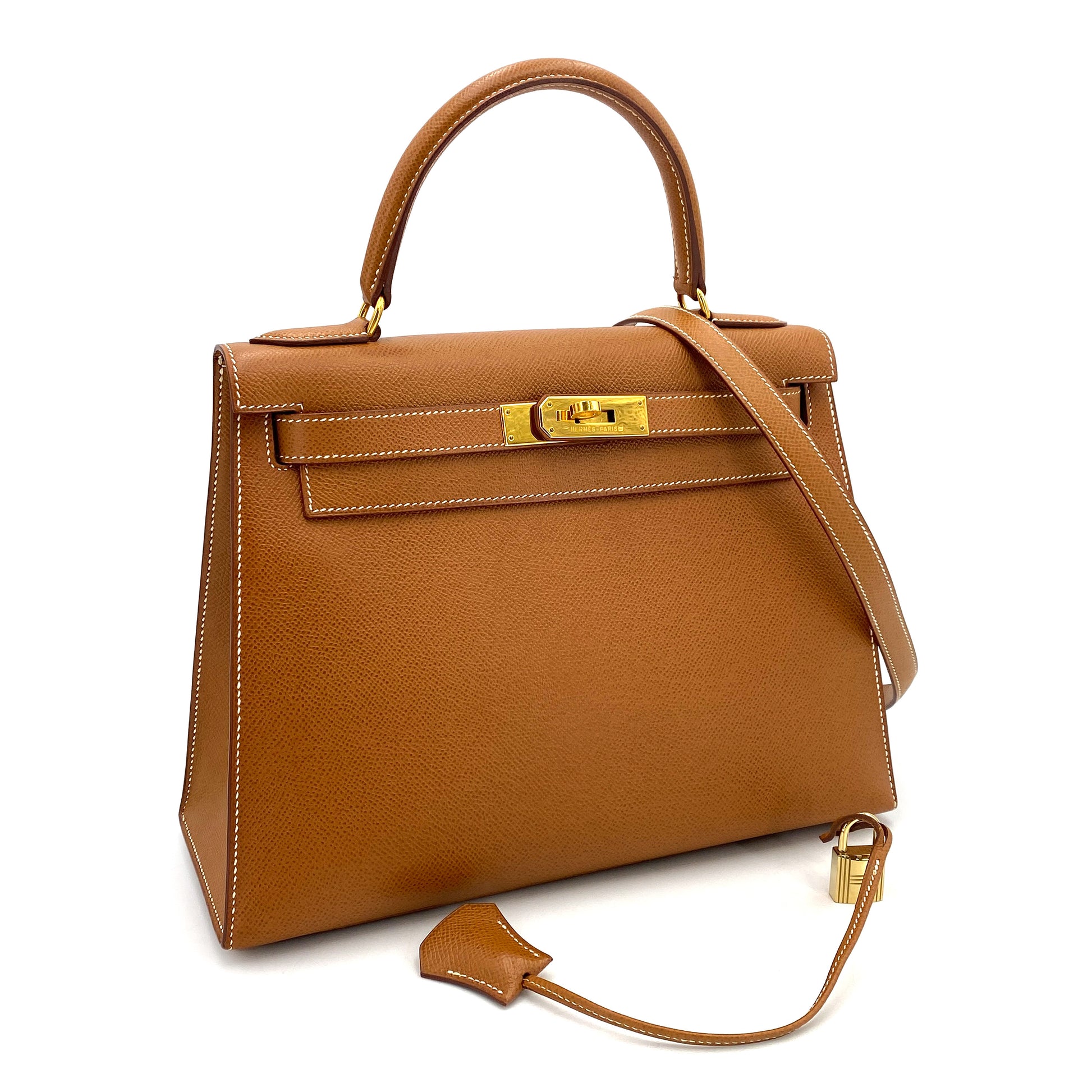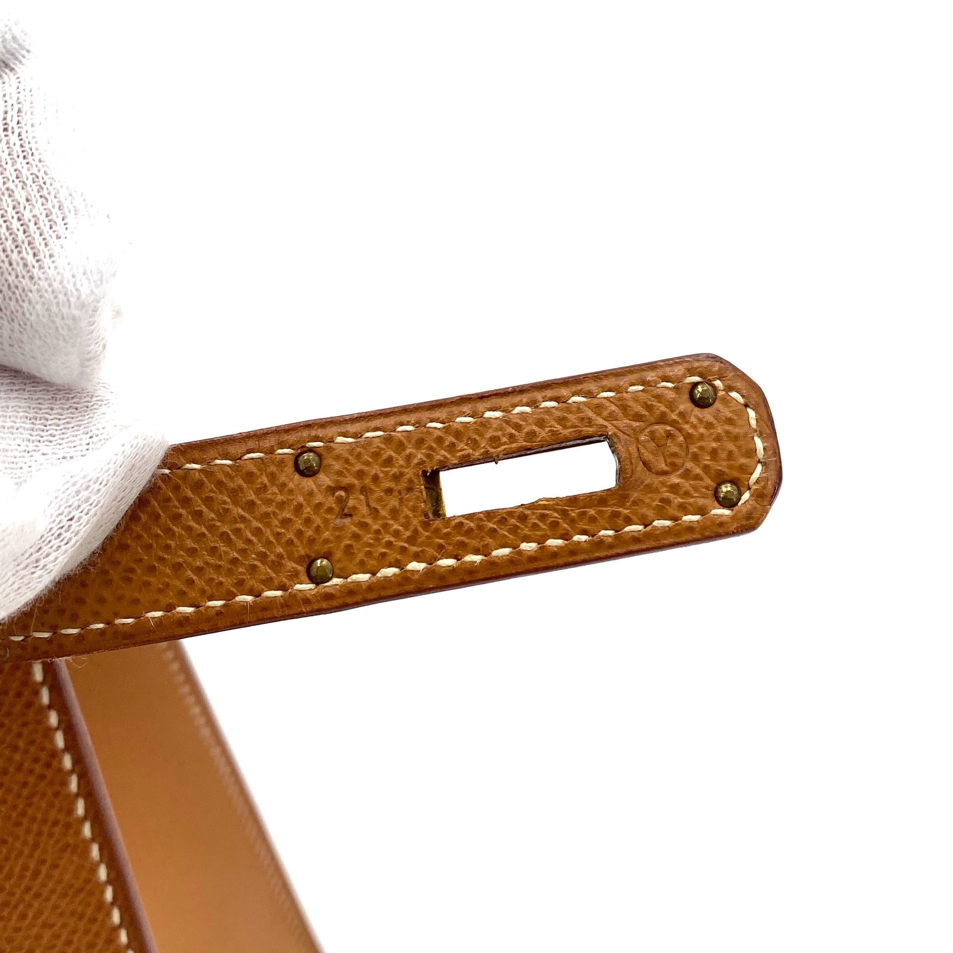 HERMES KELLY 28 SELLIER GOLD COUCHEVEL HAND SHOULDER BAG 〇Y 90249025