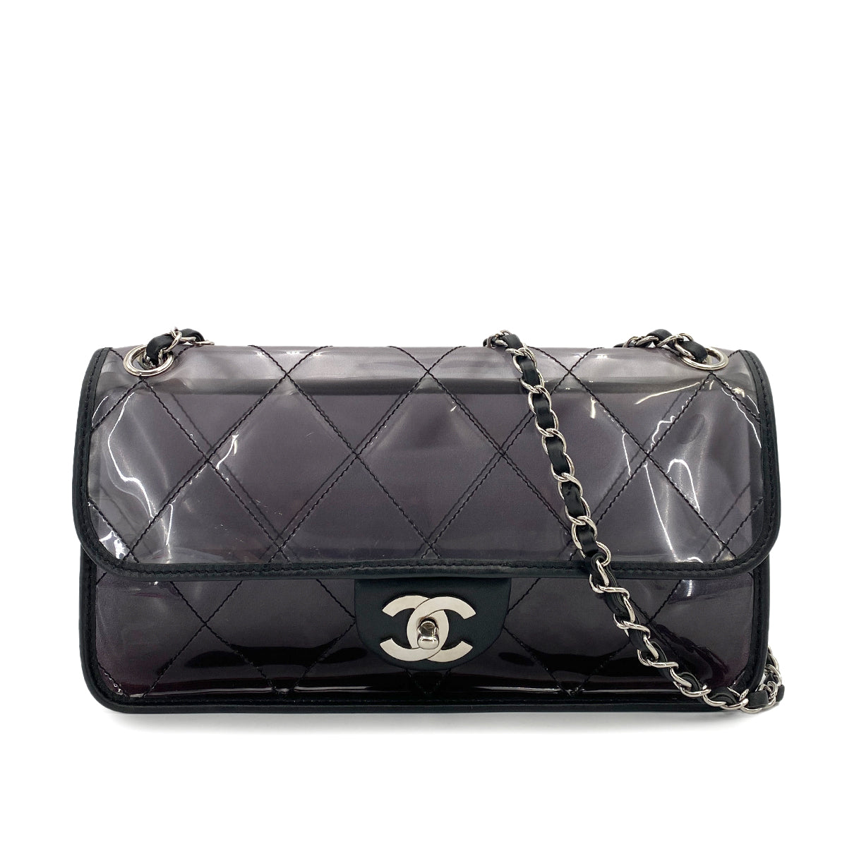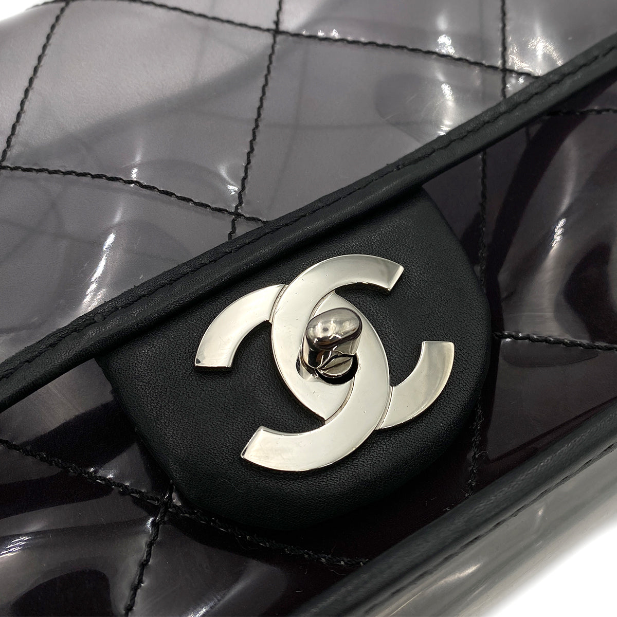 CHANEL VINTAGE MATELASSE CHAIN SHOULDER BAG BLACK VINYL LEATHER 90249473
