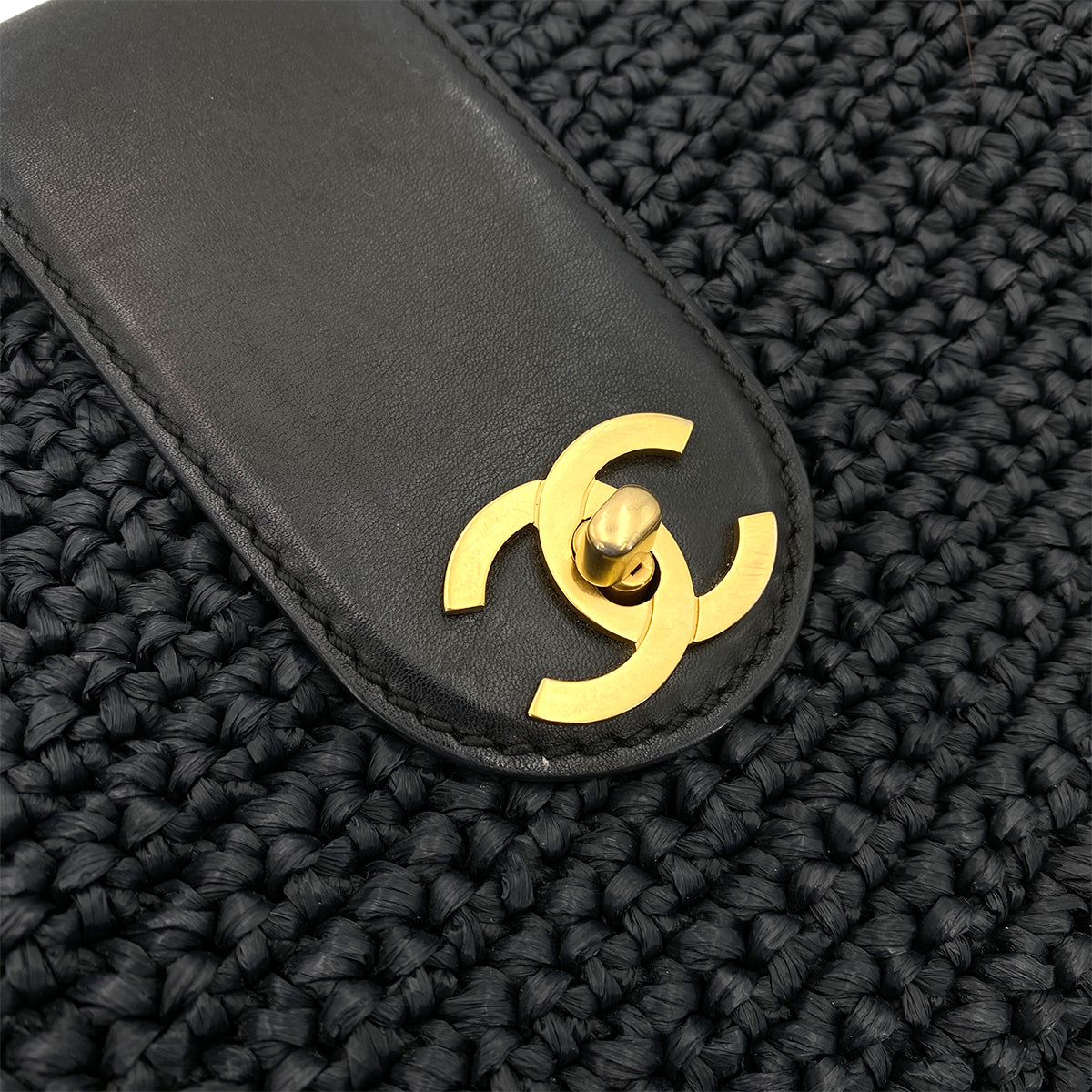 CHANEL VINTAGE CHAIN TOTE BAG NAVY RAFFIA 90249817