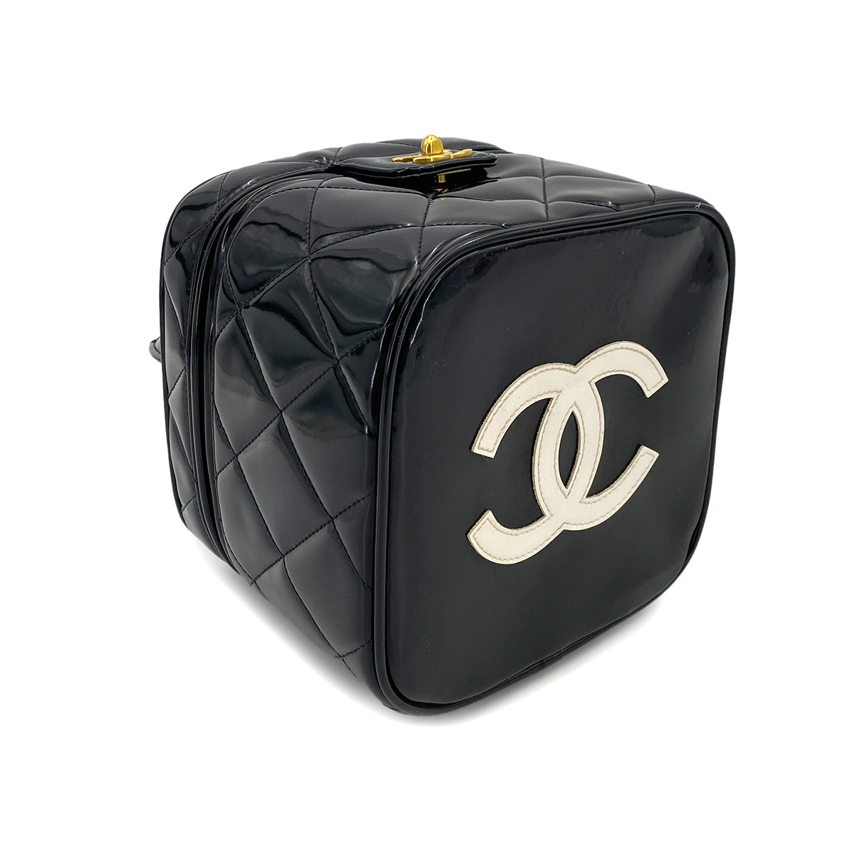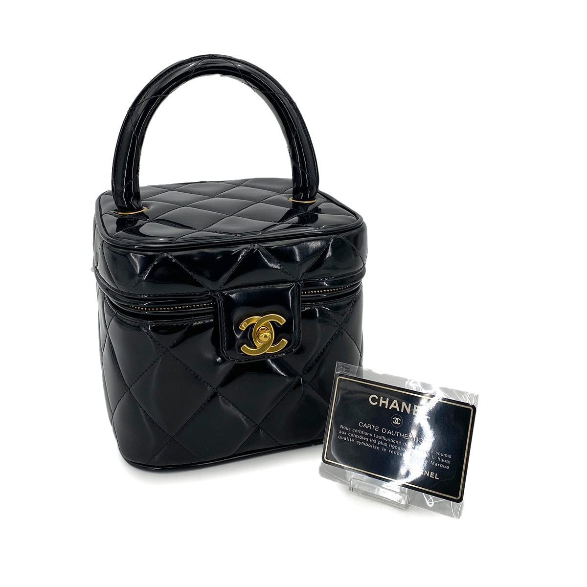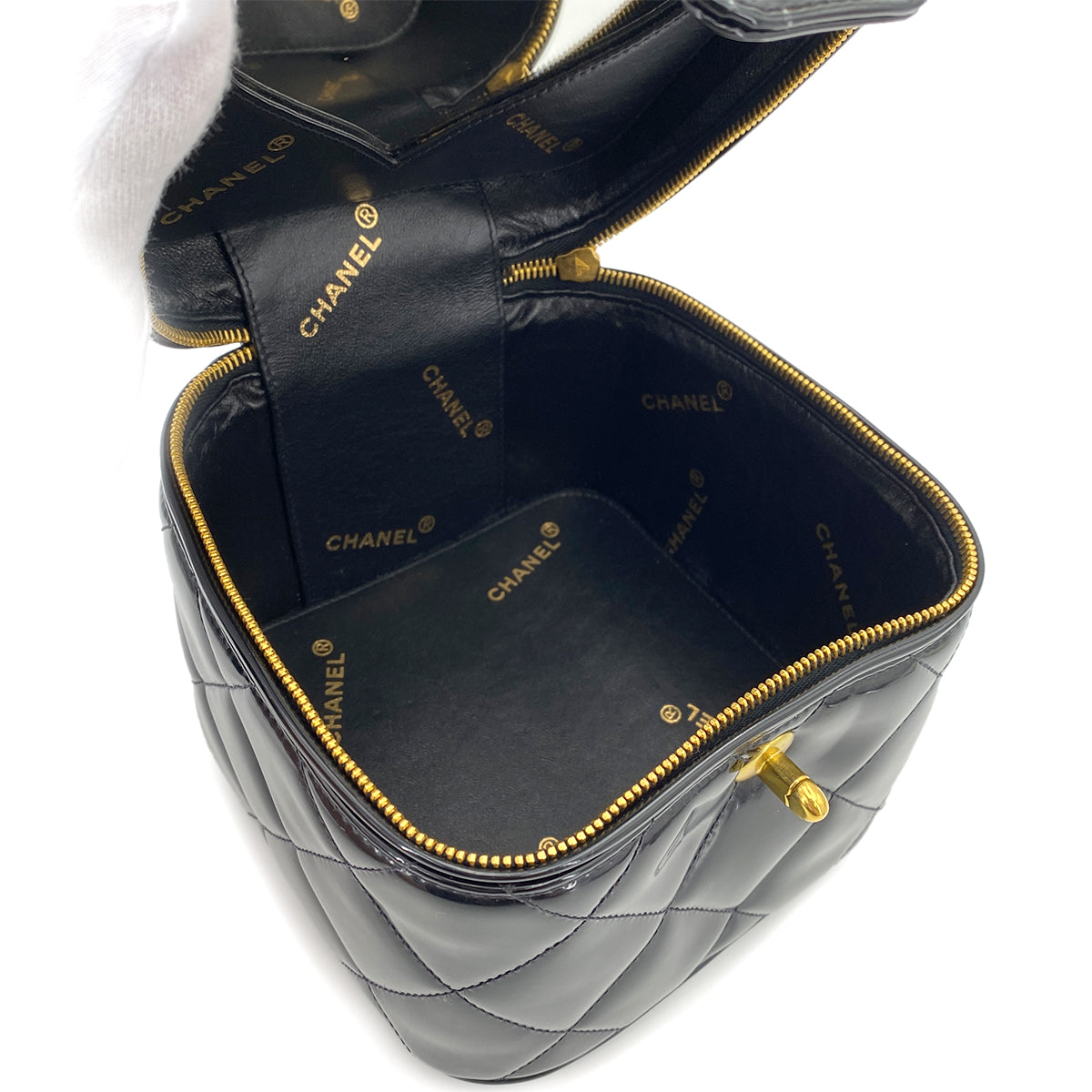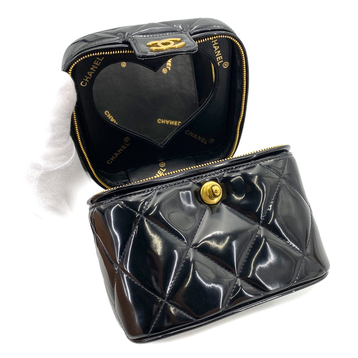 CHANEL VINTAGE VANITY HEART MIRROR HAND BAG BLACK ENAMEL 90249831