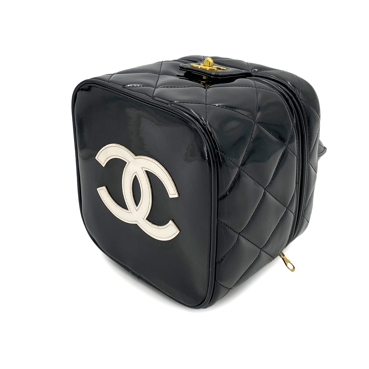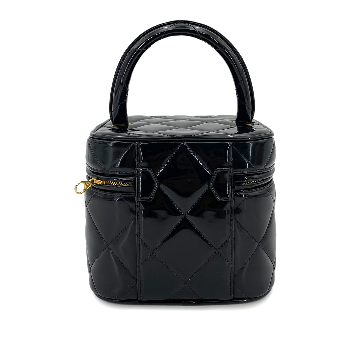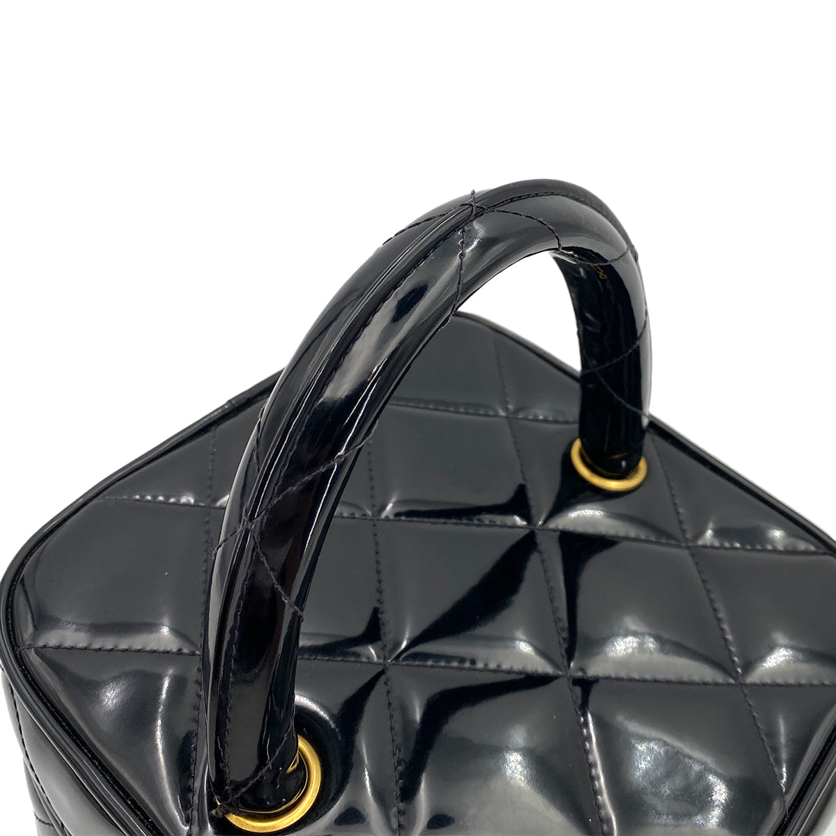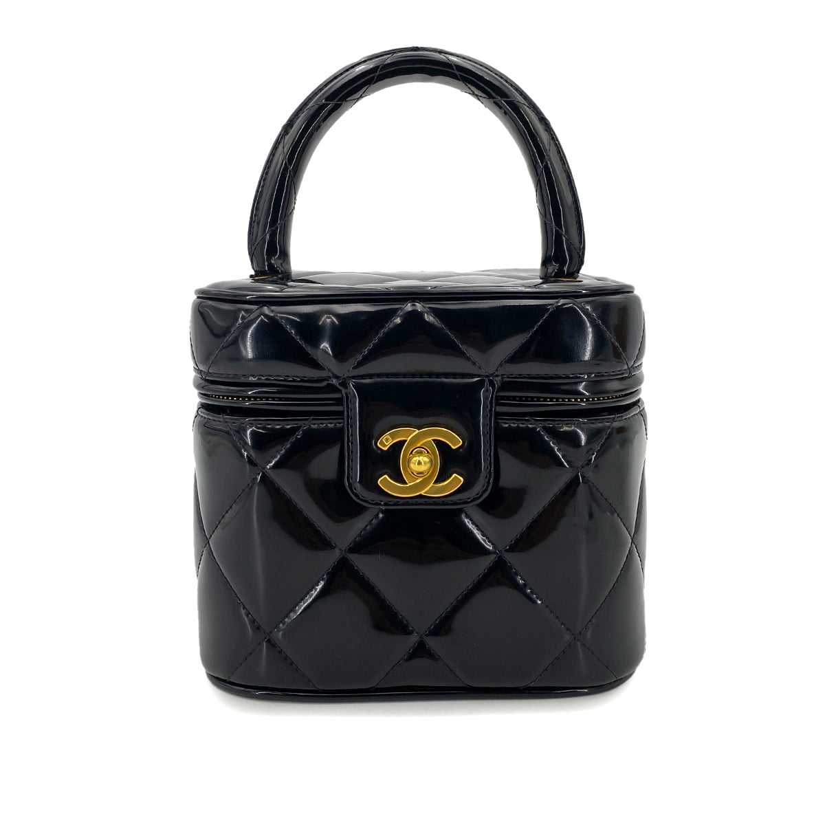 CHANEL VINTAGE VANITY HEART MIRROR HAND BAG BLACK ENAMEL 90249831