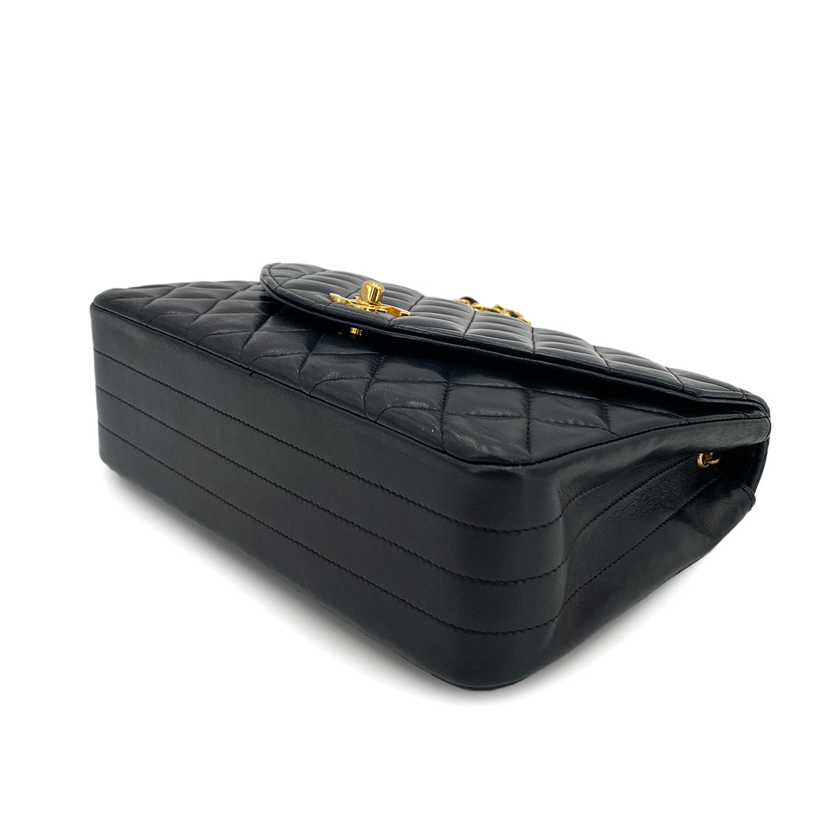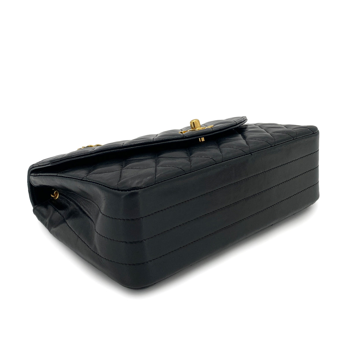 CHANEL VINTAGE HALF MOON CHAIN SHOULDER BAG BLACK LAMB SKIN 90249863