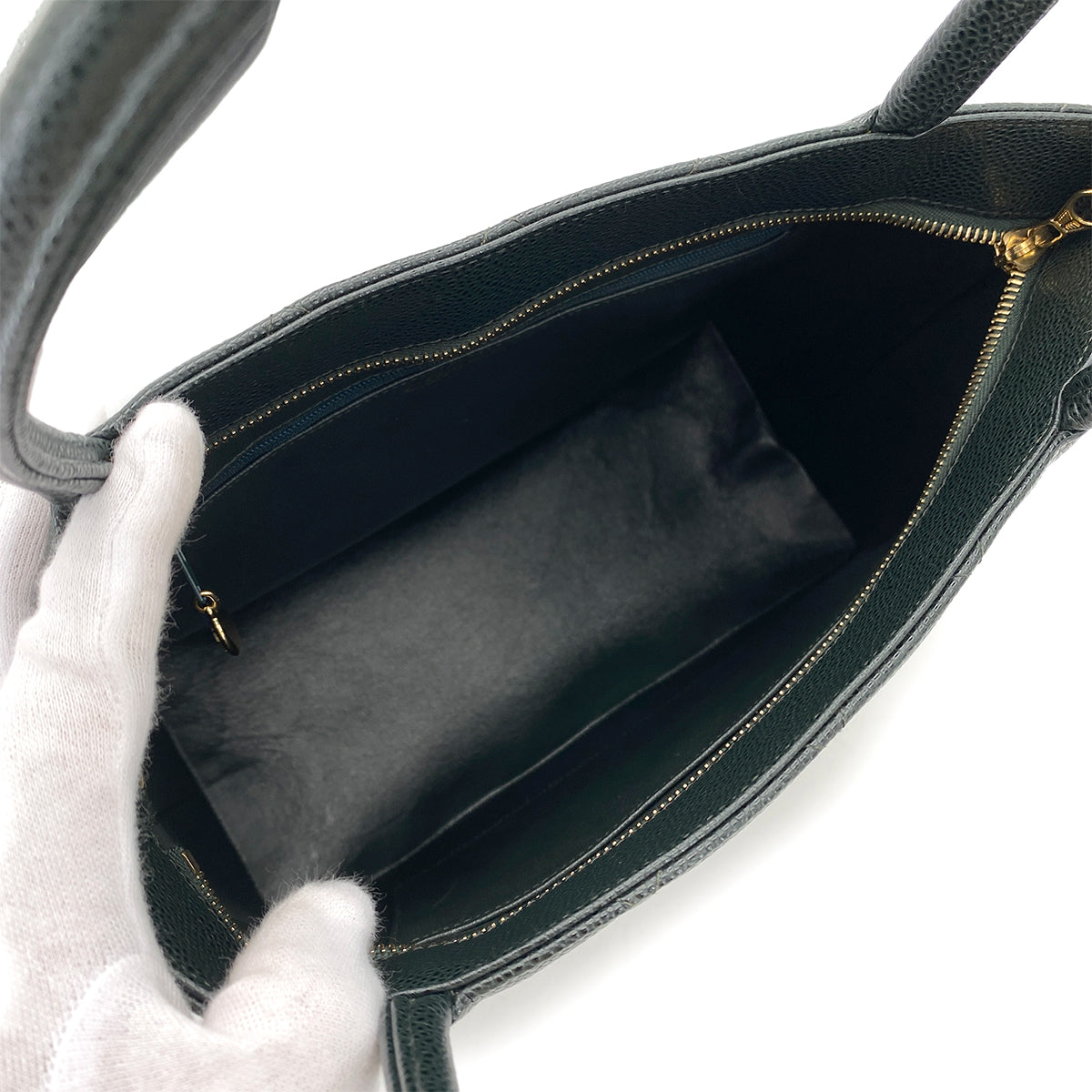 CHANEL VINTAGE MEDALLION TOTE BAG DARK GREEN CAVIAR SKIN 90249866