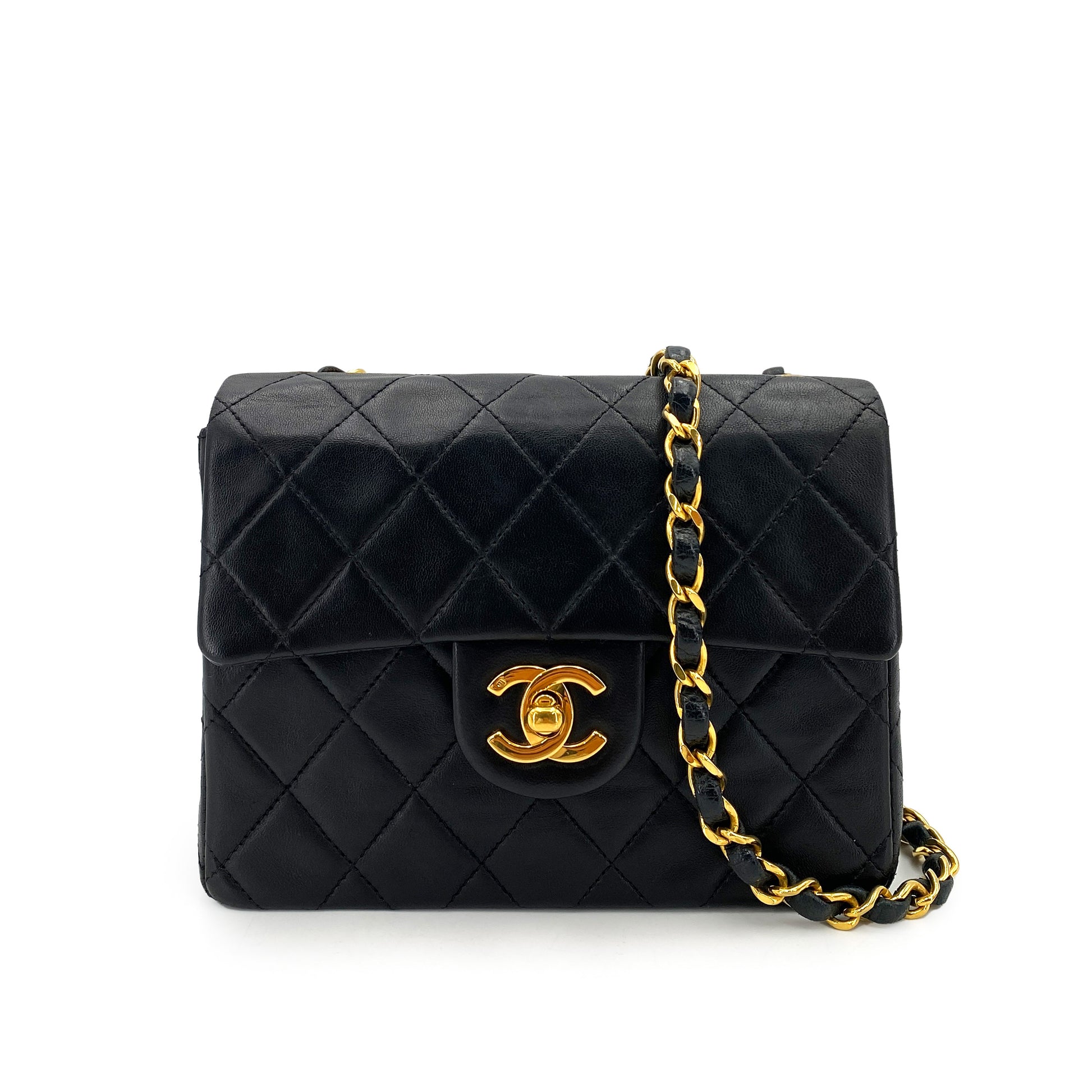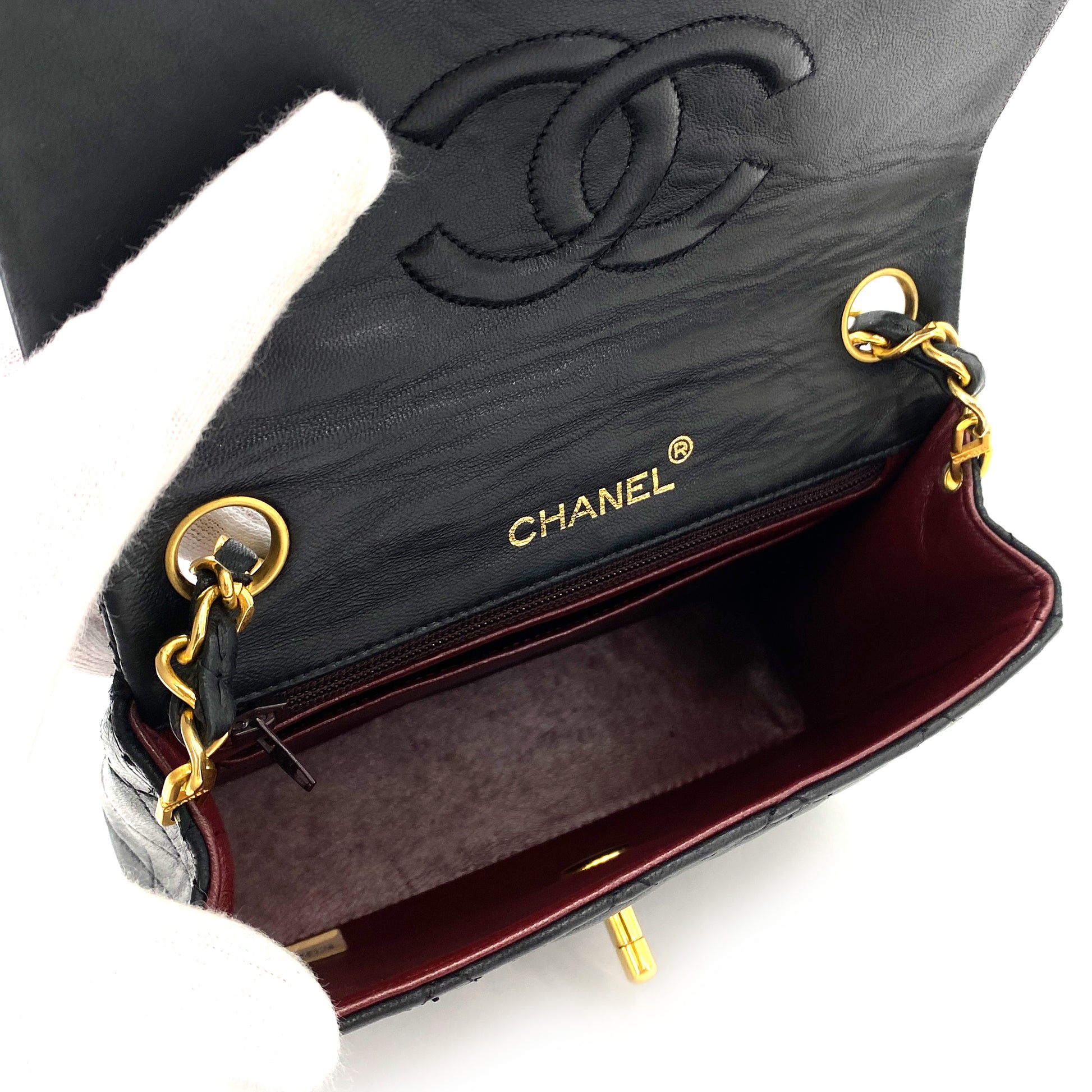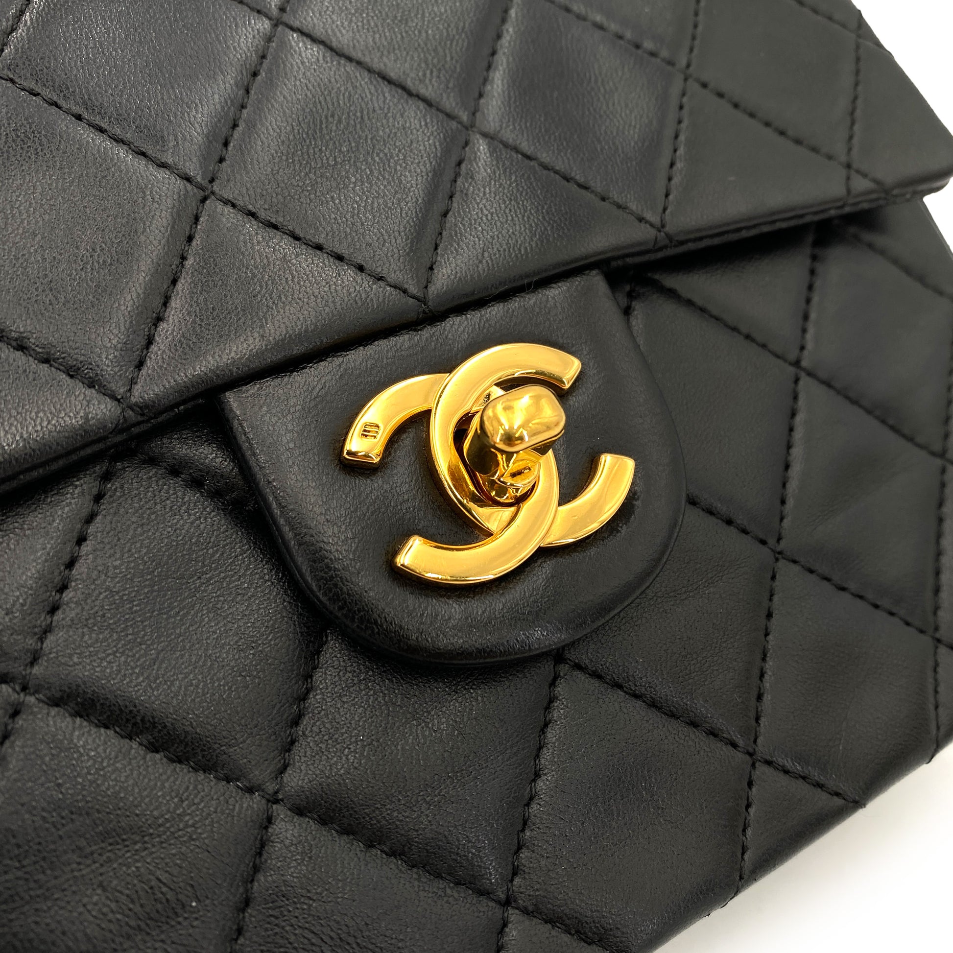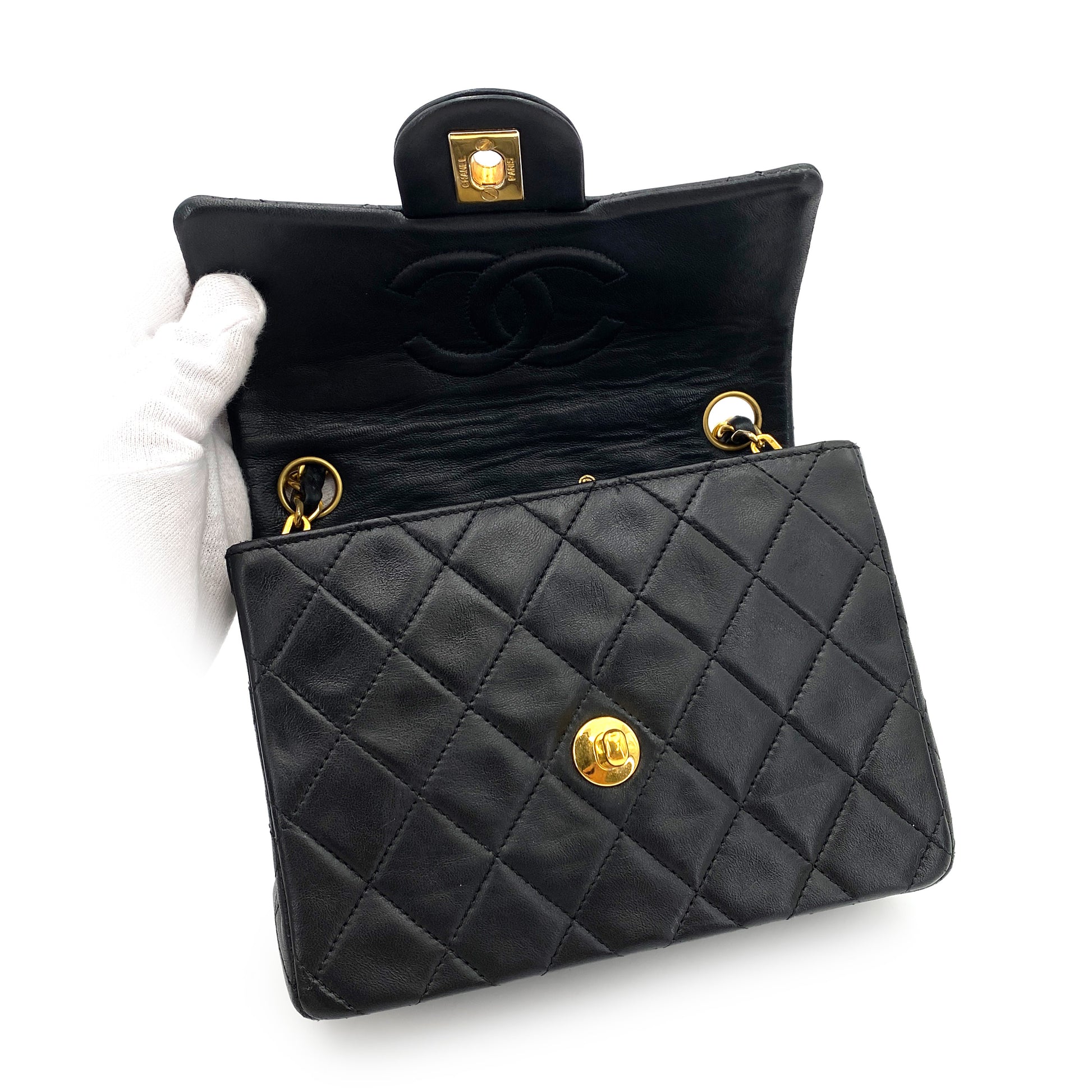 CHANEL VINTAGE MINI SQUARE 17 CHAIN SHOULDER BAG BLACK LAMB SKIN 90249979