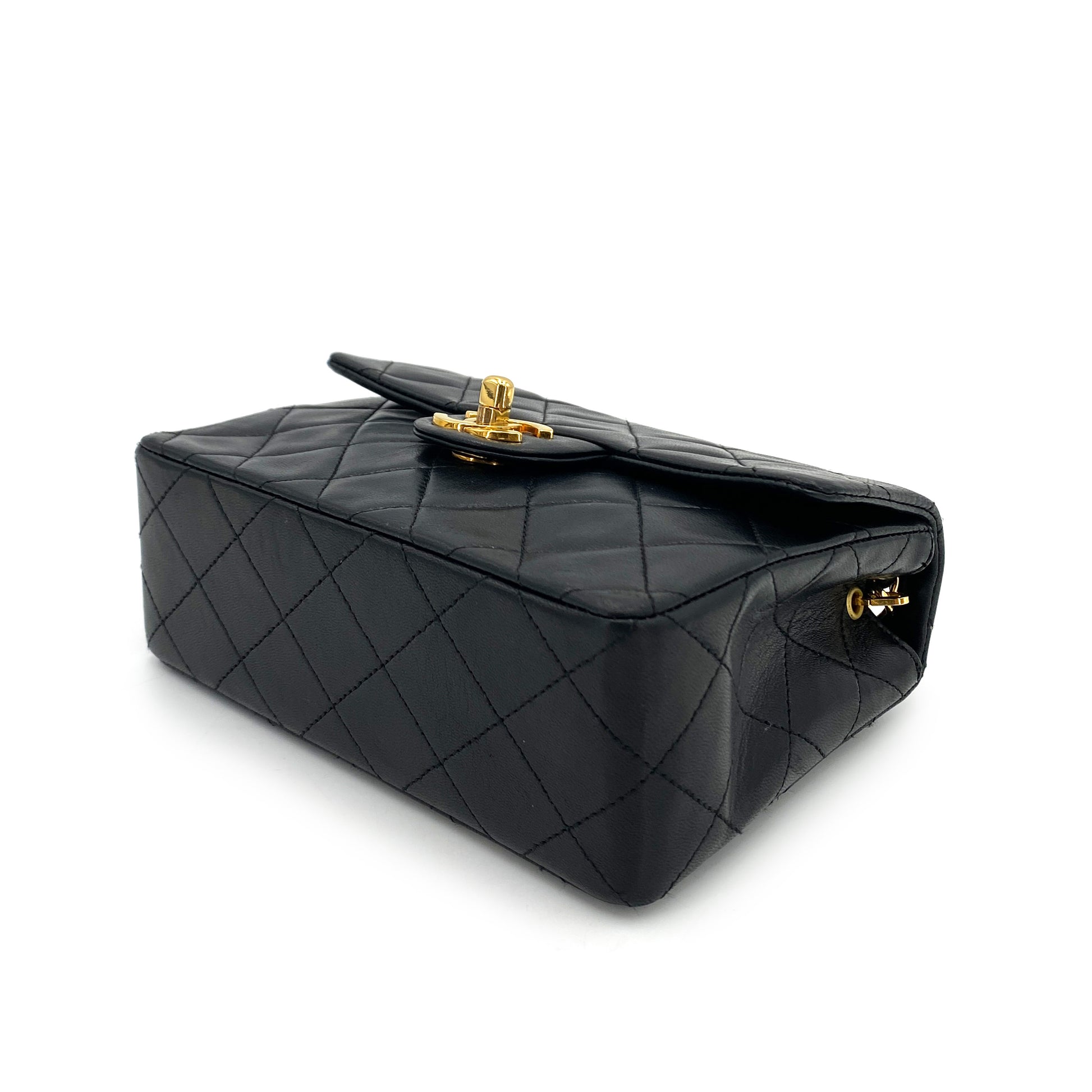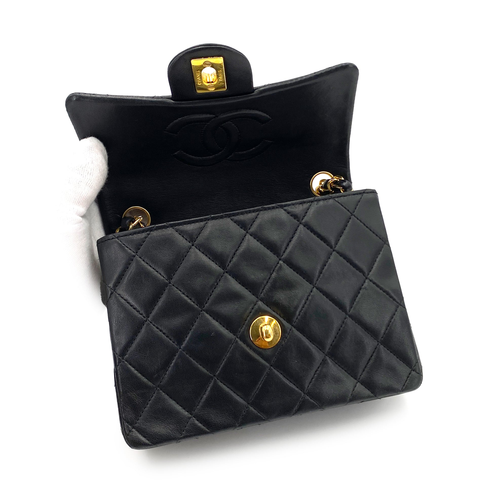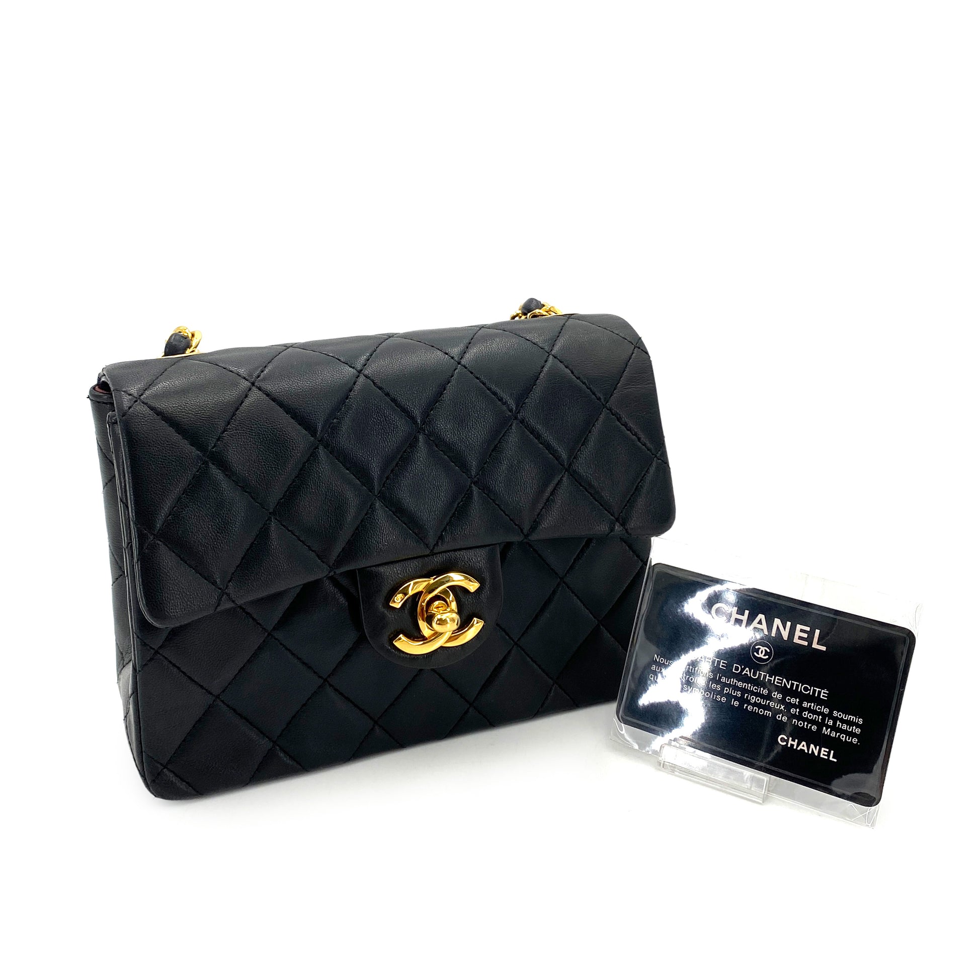 CHANEL VINTAGE MINI SQUARE 17 CHAIN SHOULDER BAG BLACK LAMB SKIN 90250014