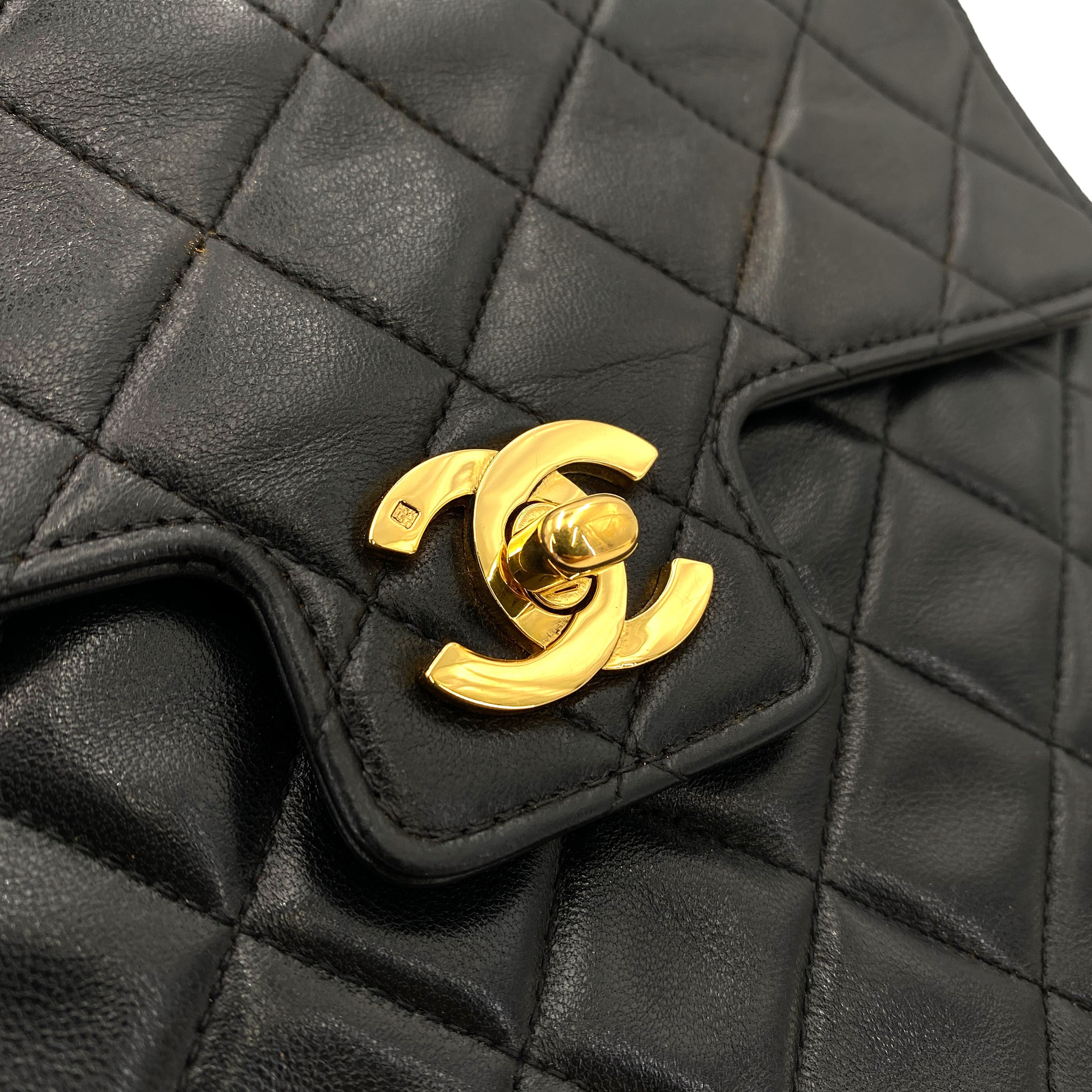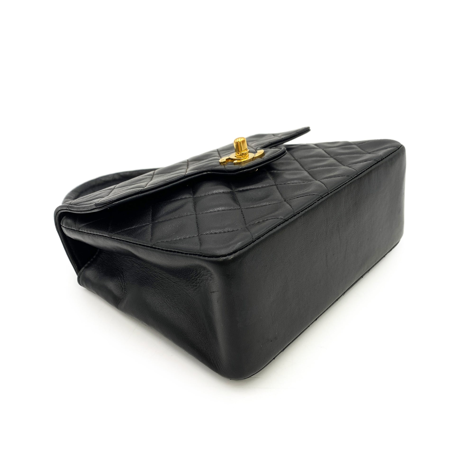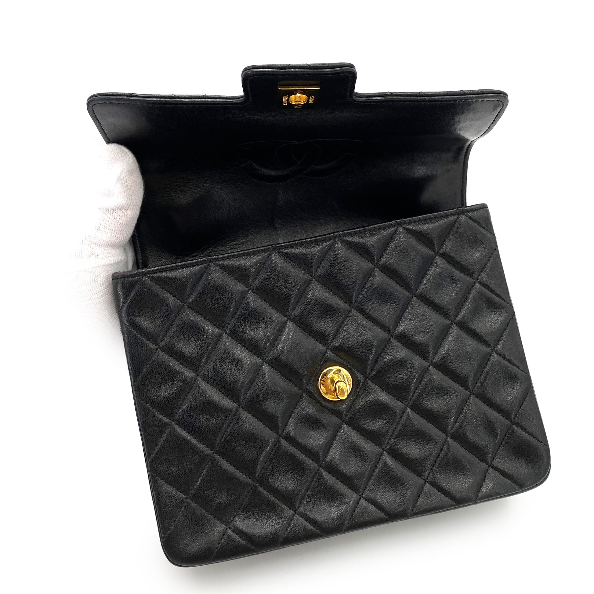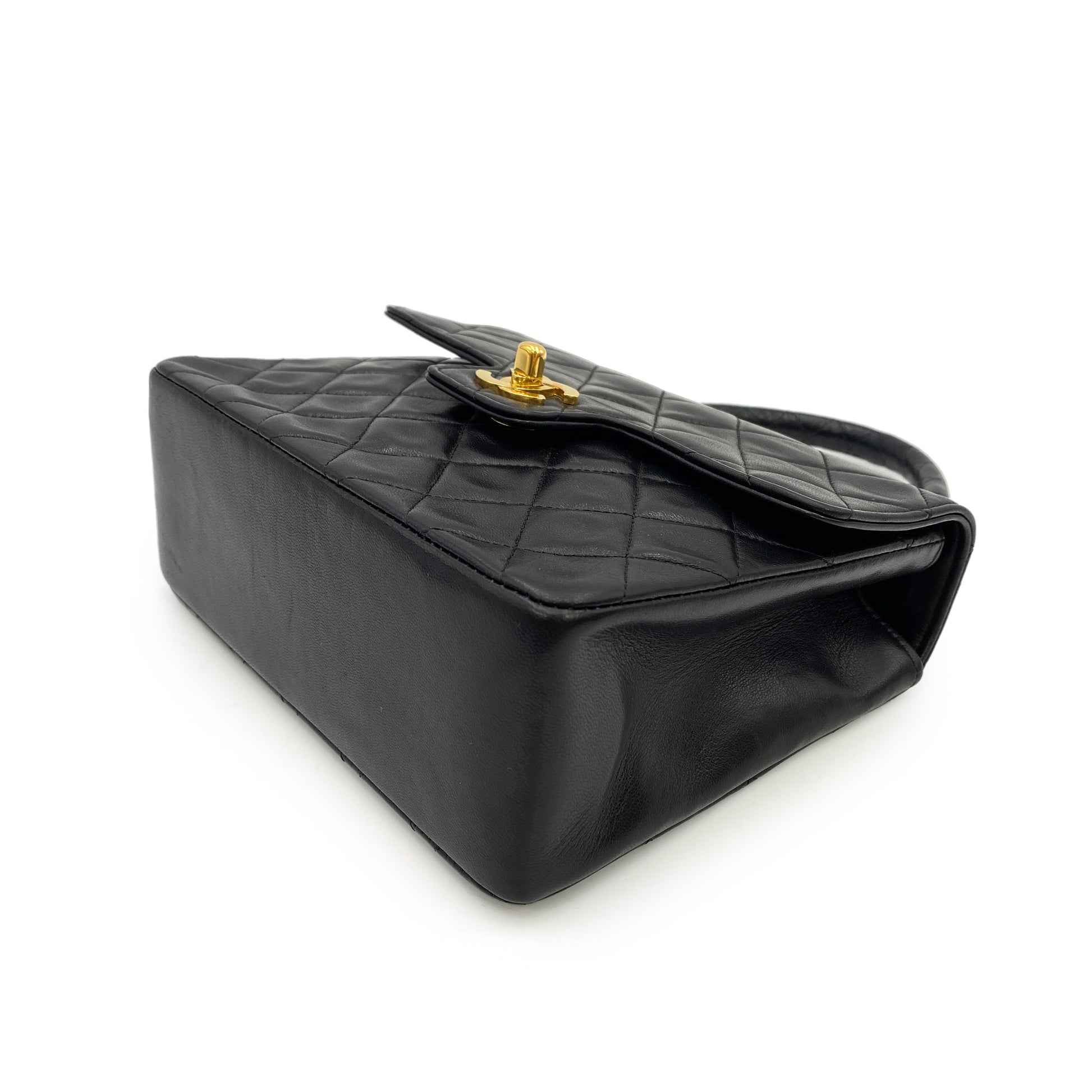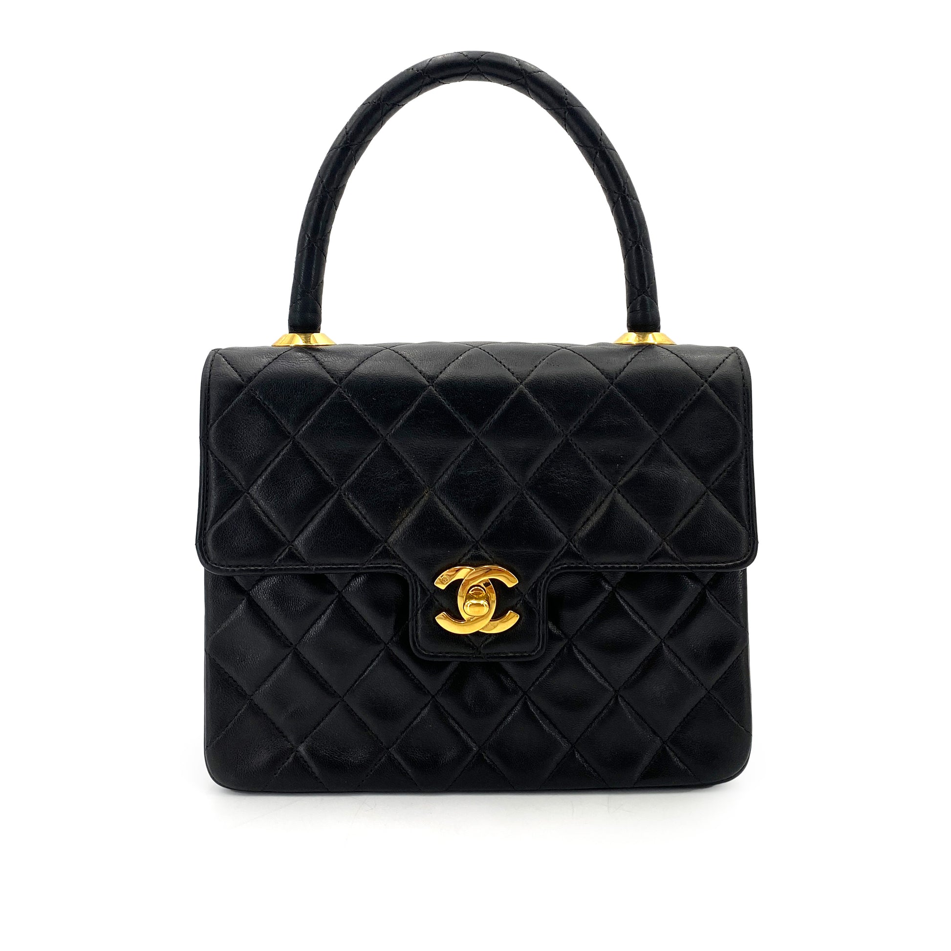 CHANEL VINTAGE MATELASSE HAND BAG BLACK LAMB SKIN 90250015