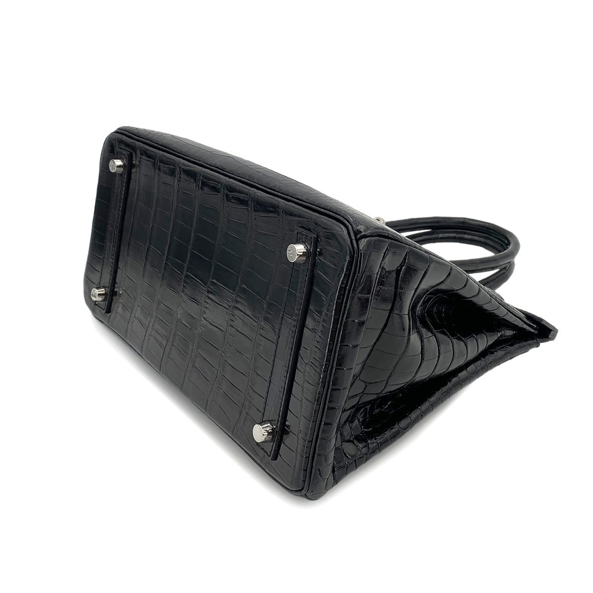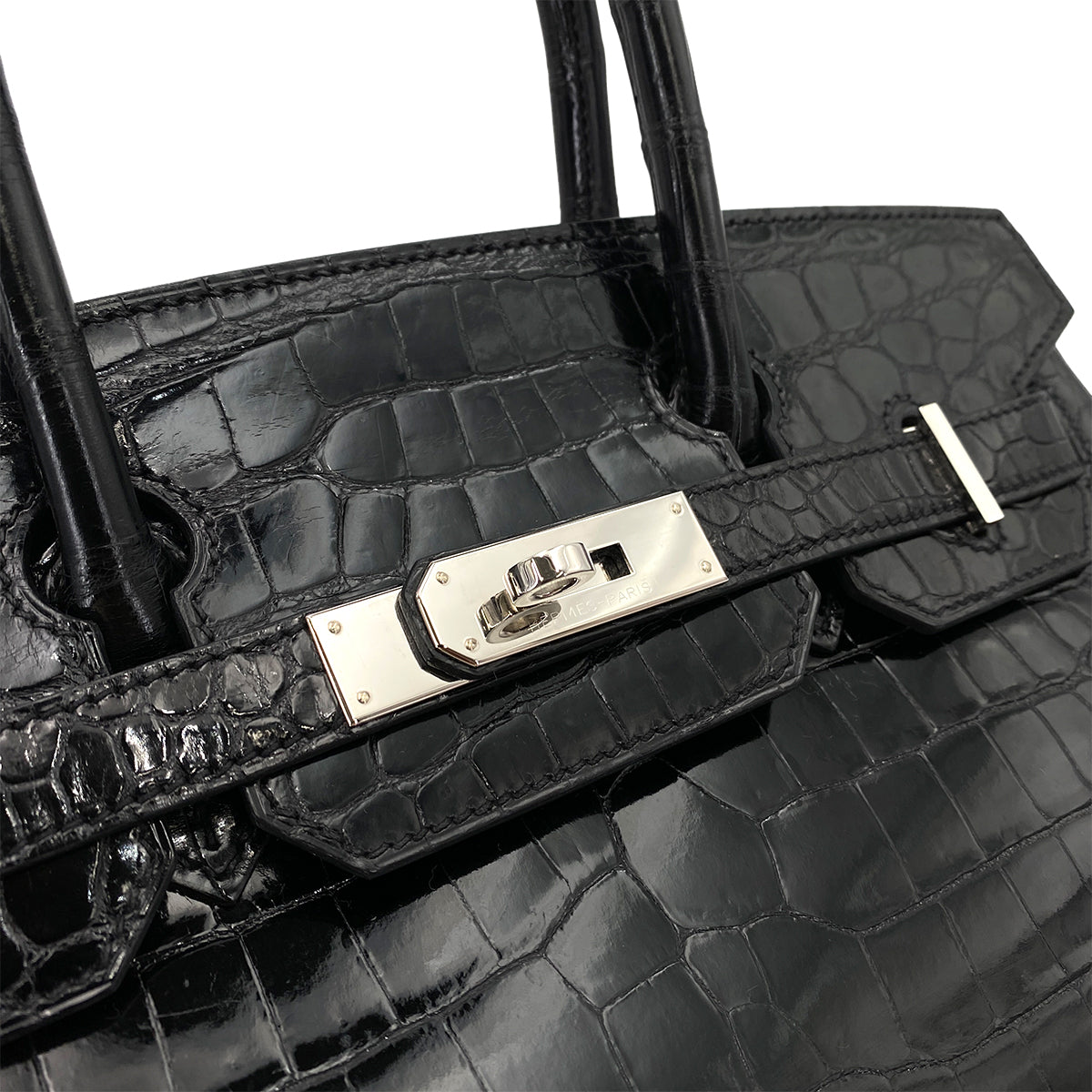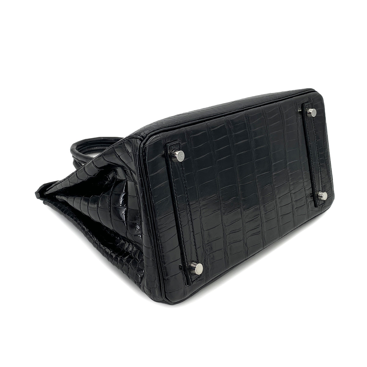 HERMES BIRKIN 30 BLACK CROCODILE POROSUS LISSE HAND BAG □Q SHW 90250279