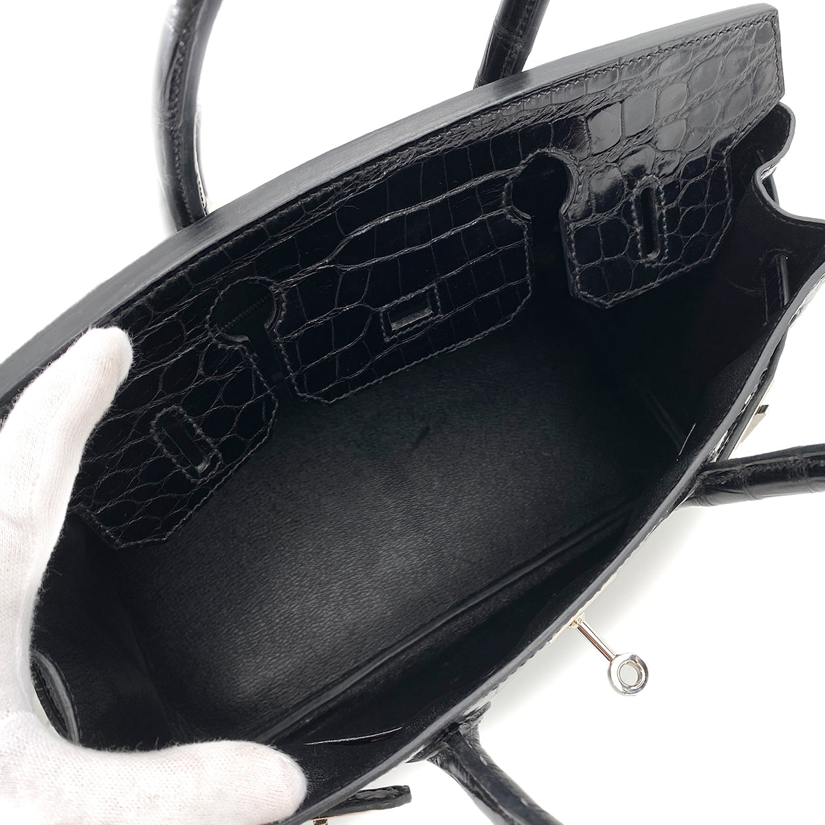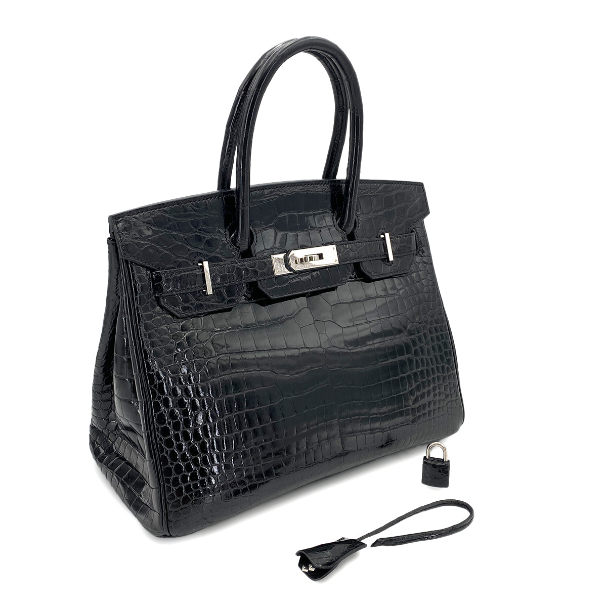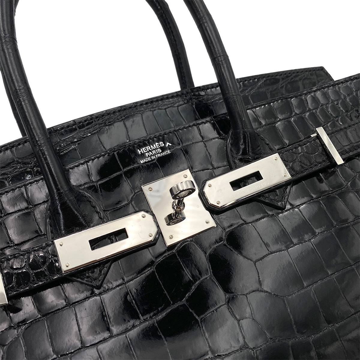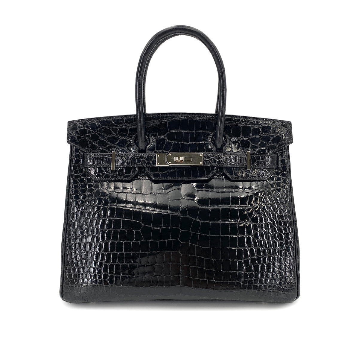 HERMES BIRKIN 30 BLACK CROCODILE POROSUS LISSE HAND BAG □Q SHW 90250279