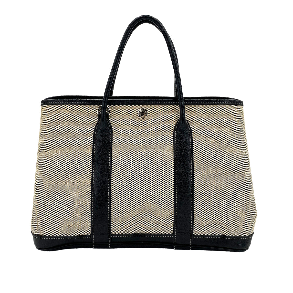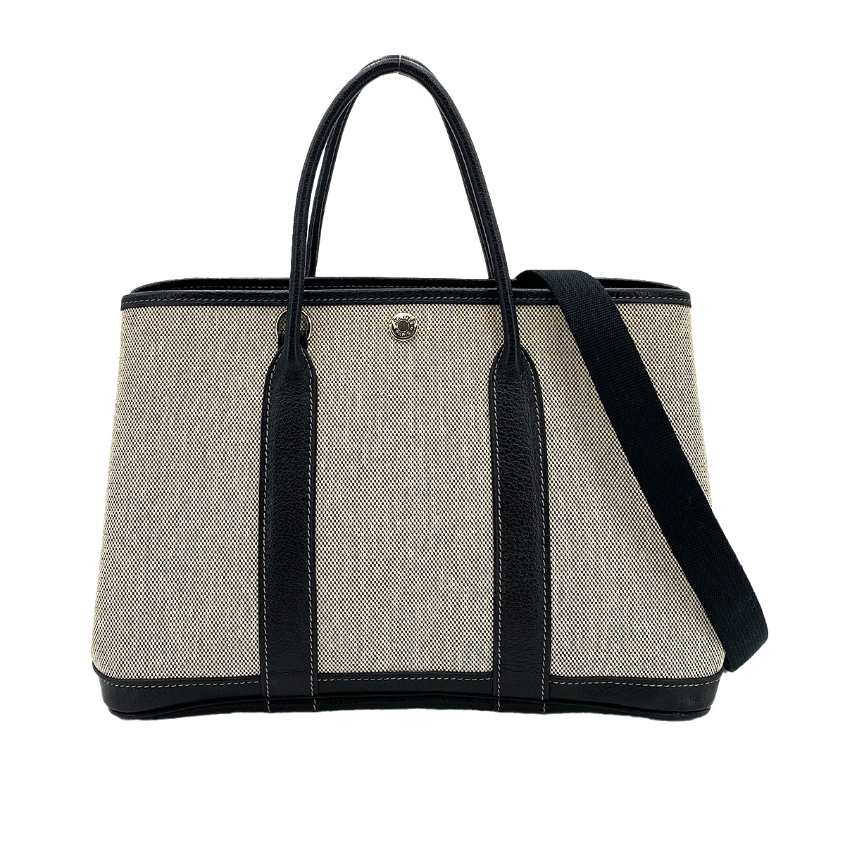 HERMES GARDEN PARTY TPM ECRU BLACK TOILE H HAND SHOULDER BAG □H 90250285