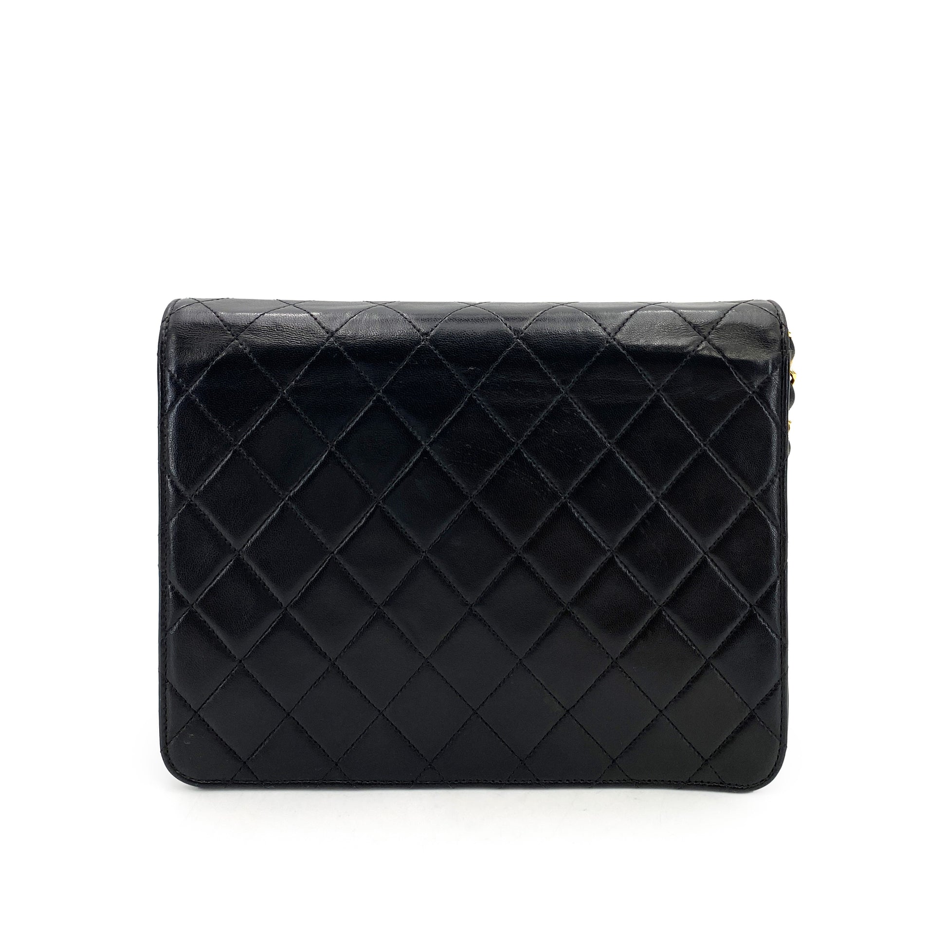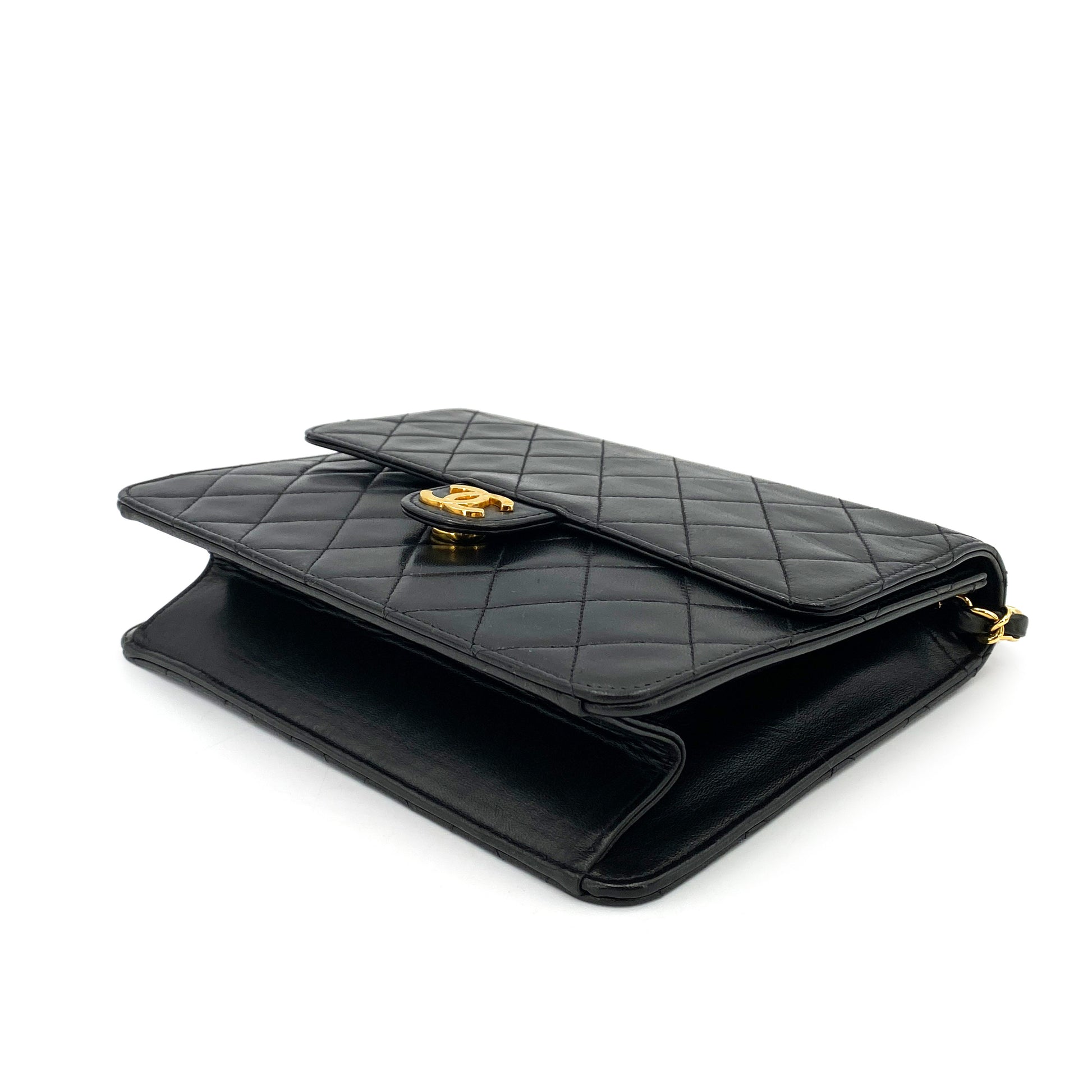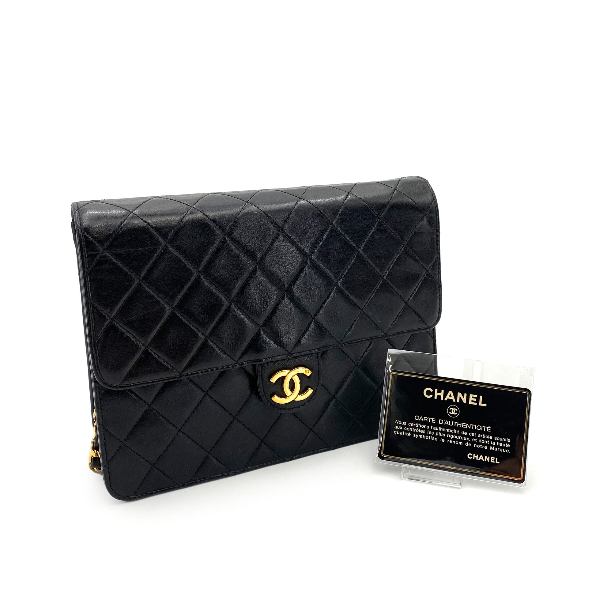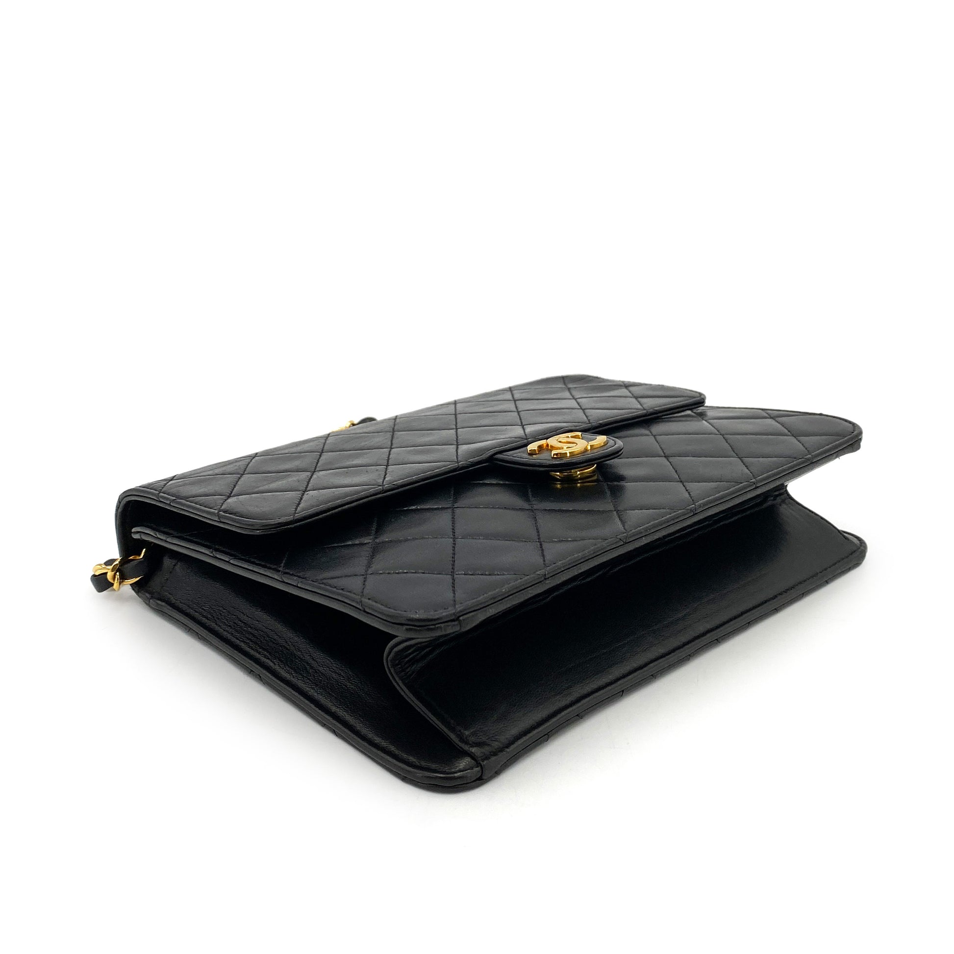 CHANEL VINTAGE MATELASSE PUSH LOCK CHAIN SHOULDER BAG BLACK LAMB SKIN 90246356