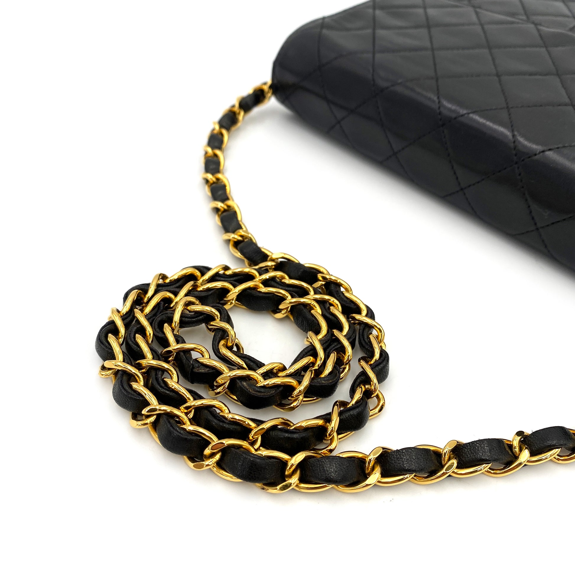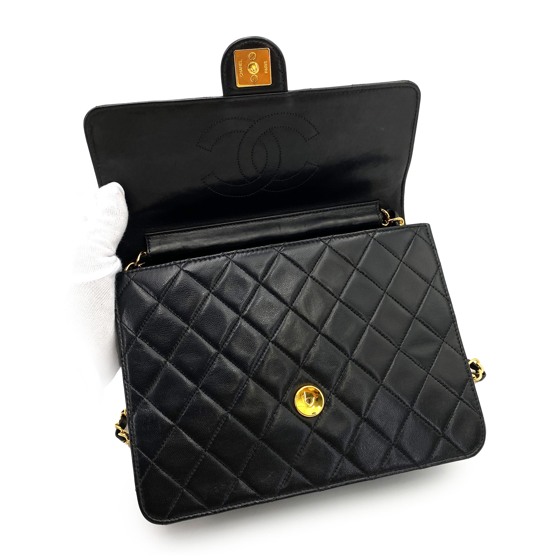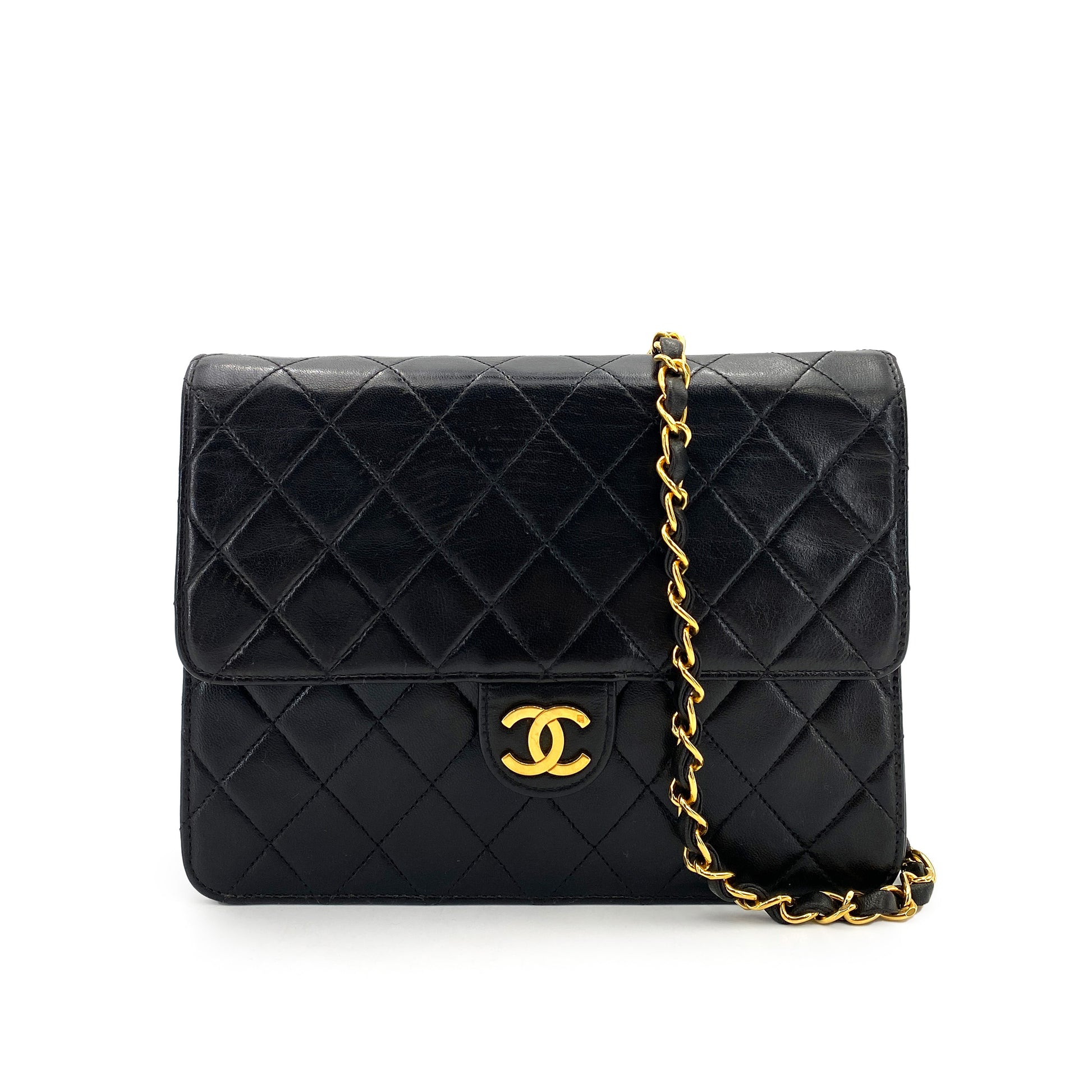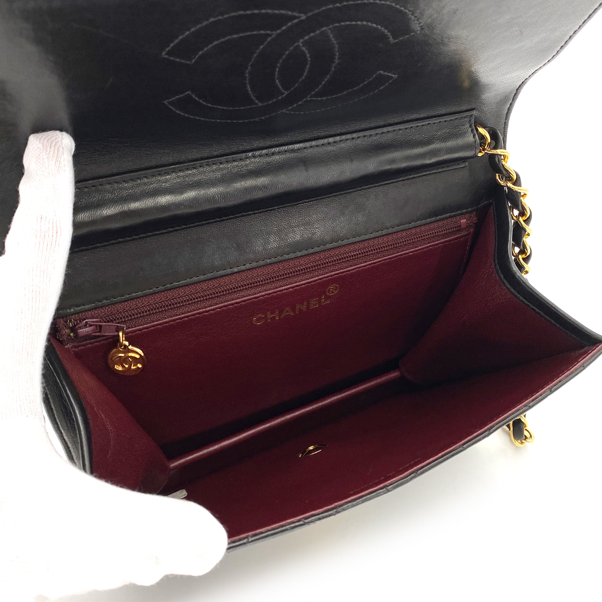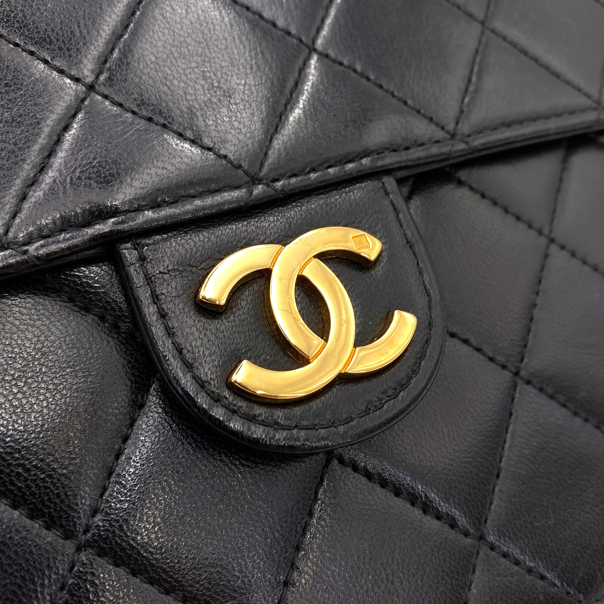 CHANEL VINTAGE MATELASSE PUSH LOCK CHAIN SHOULDER BAG BLACK LAMB SKIN 90246356