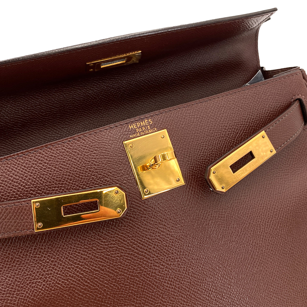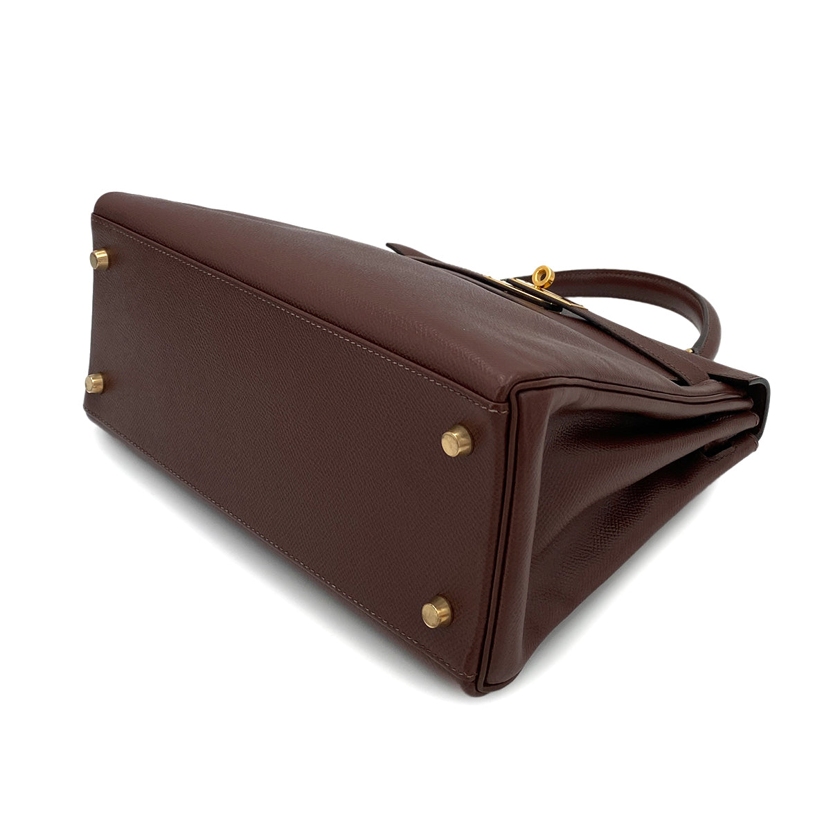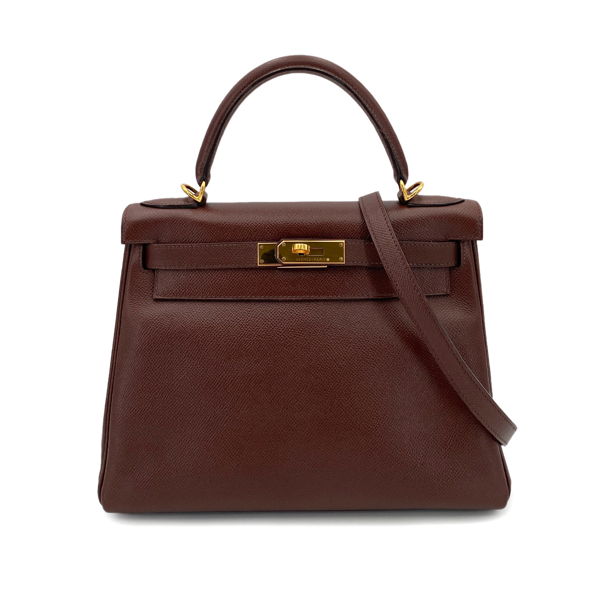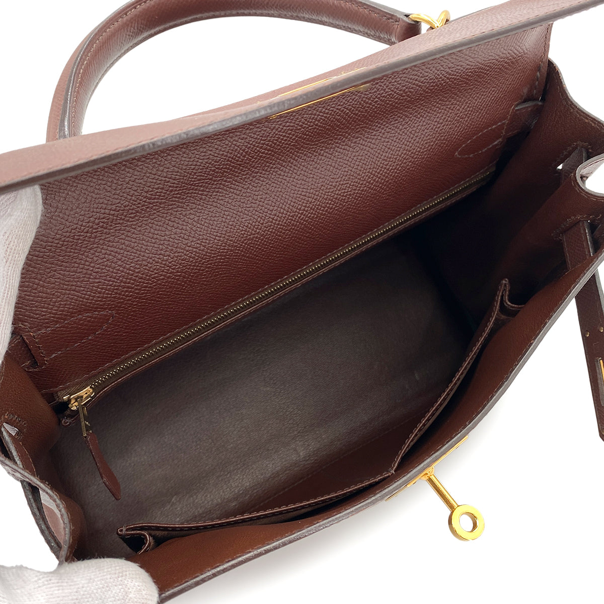 HERMES KELLY 28 RETOURNE BROWN TYPE COUCHVEL HAND SHOULDER BAG □E 90250467