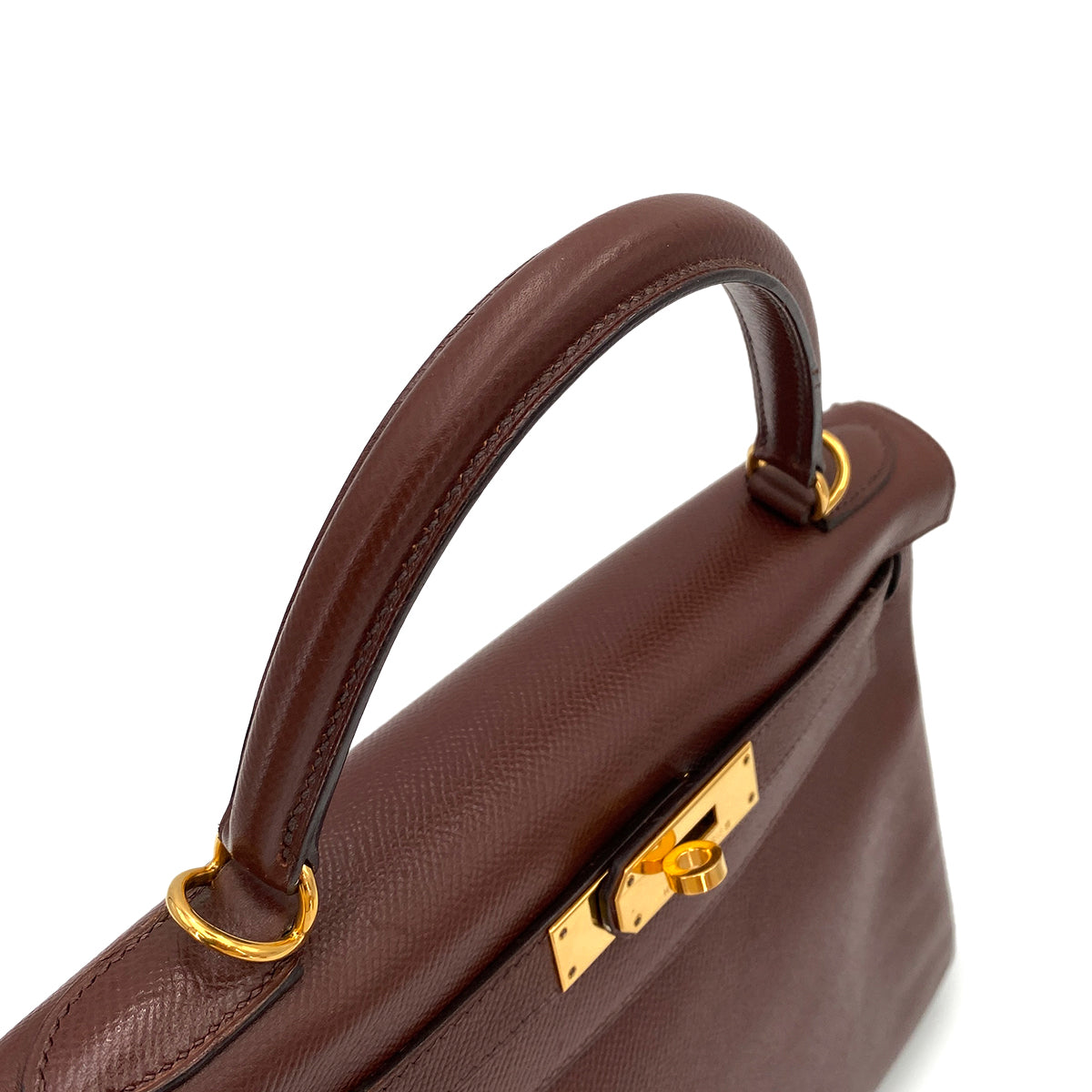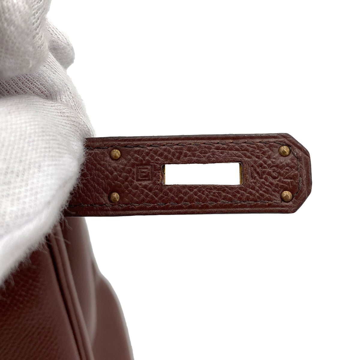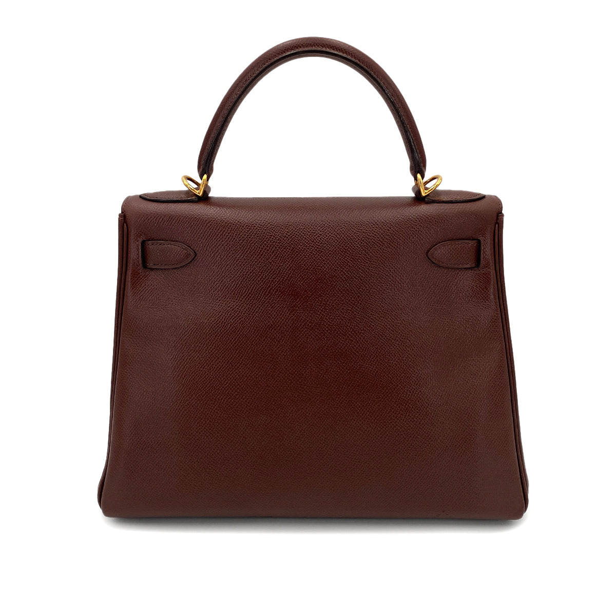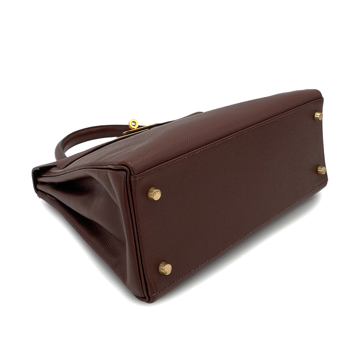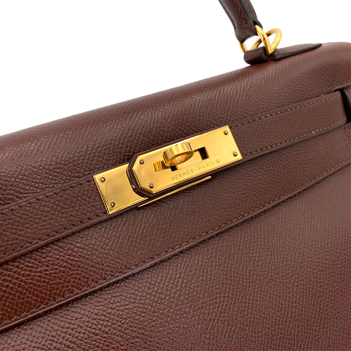 HERMES KELLY 28 RETOURNE BROWN TYPE COUCHVEL HAND SHOULDER BAG □E 90250467