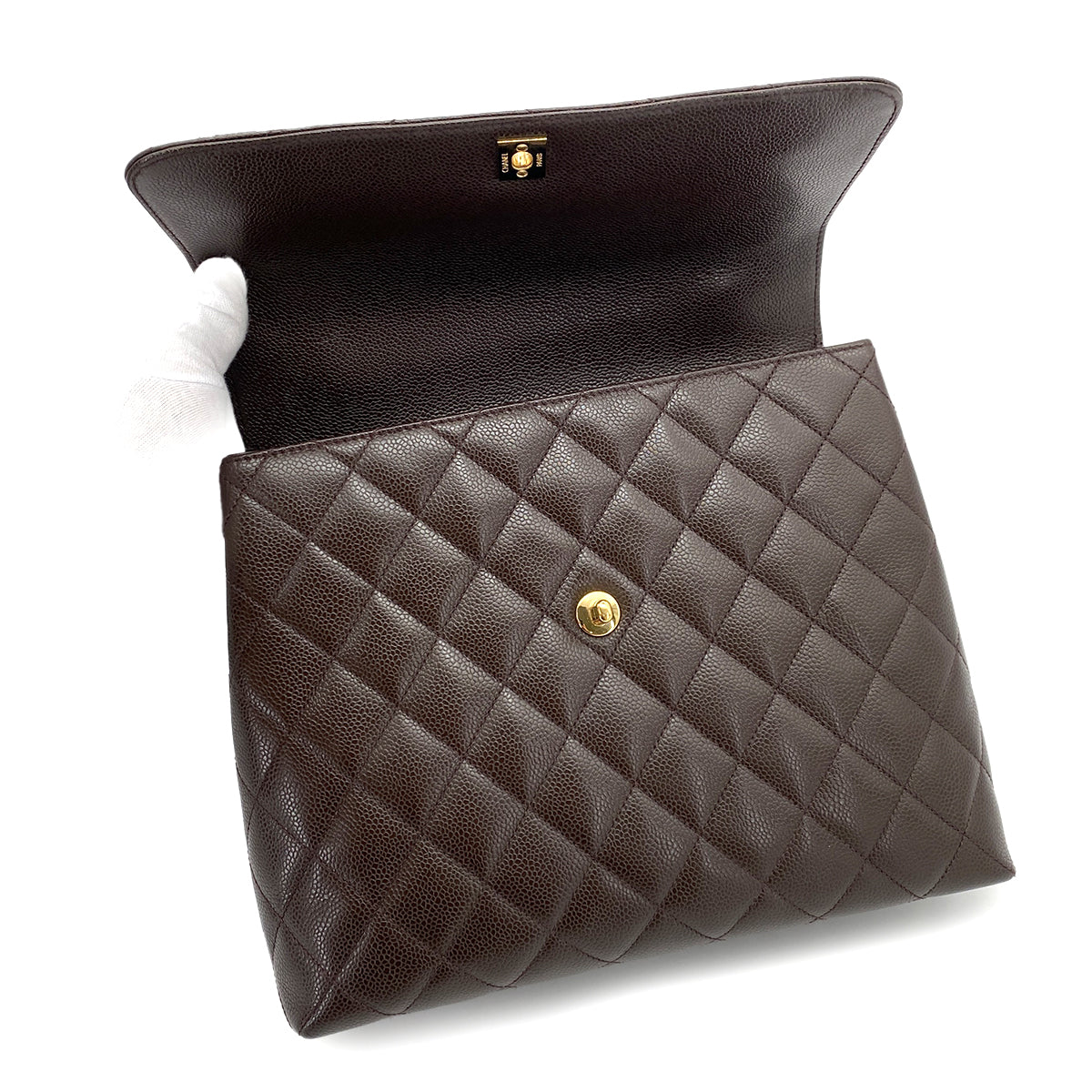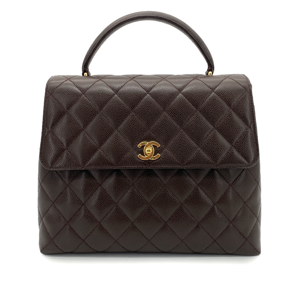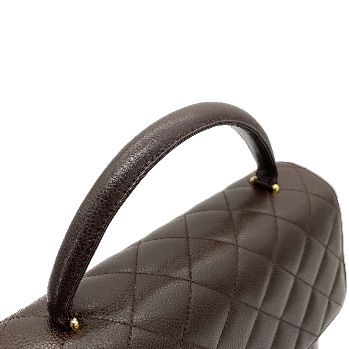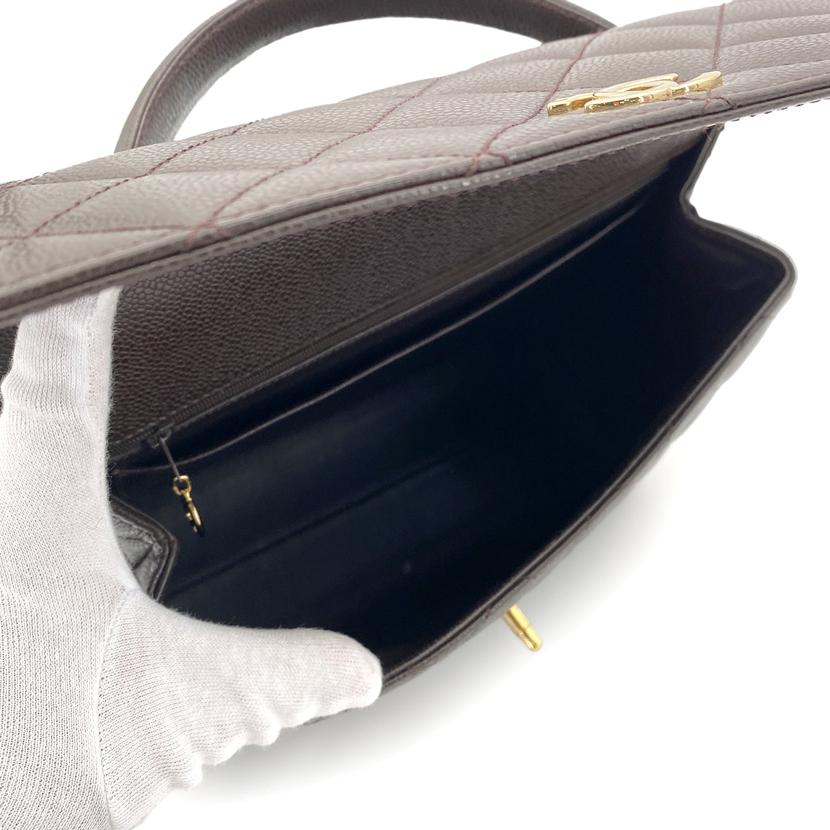 CHANEL VINTAGE MATELASSE HAND BAG DARK BROWN CAVIAR SKIN 90250468