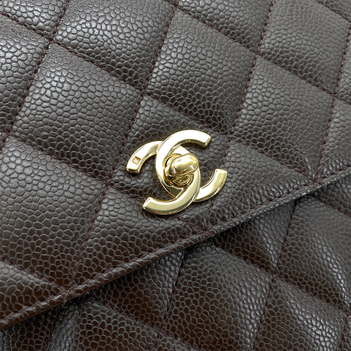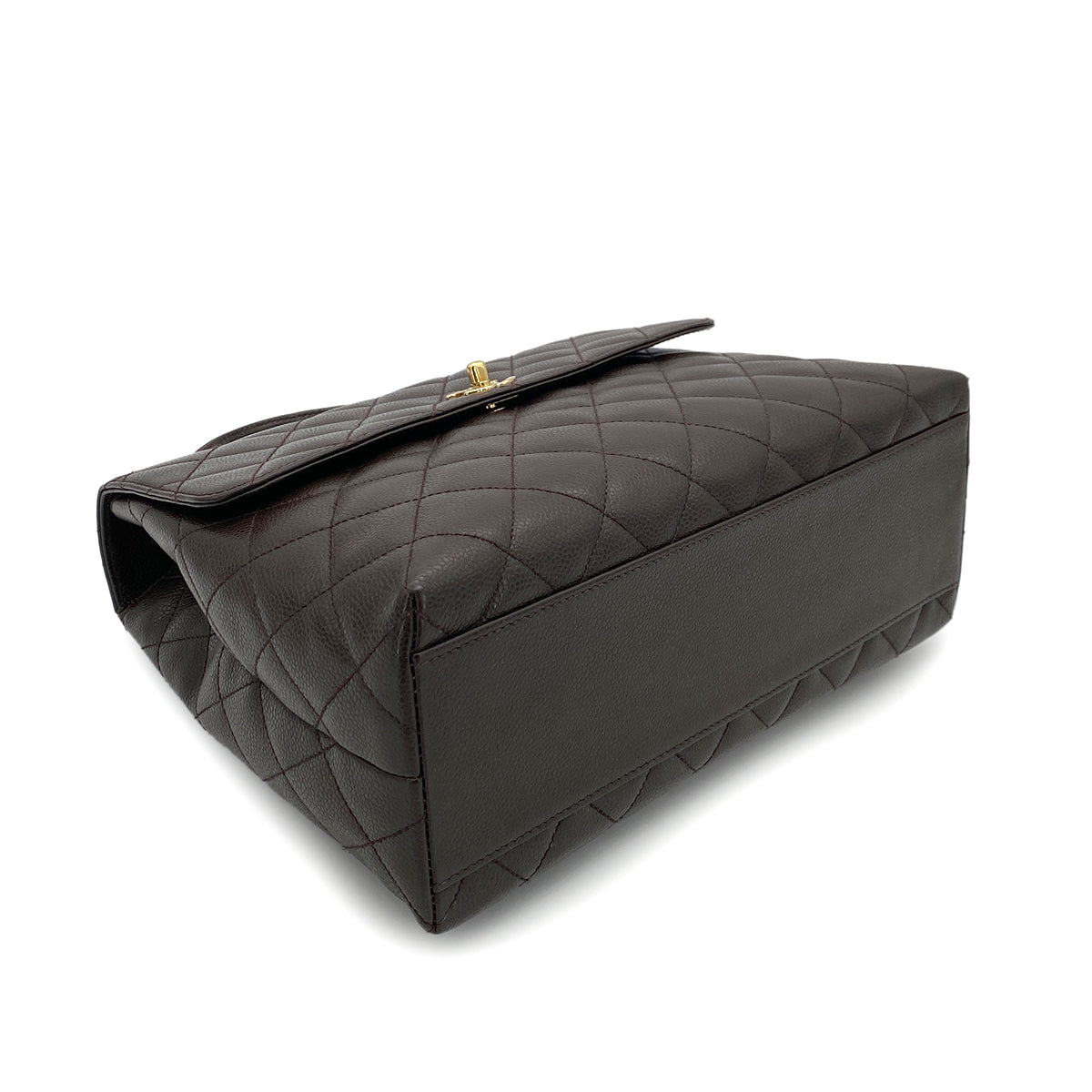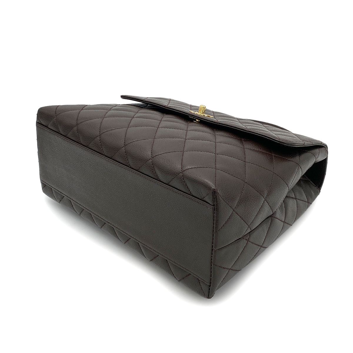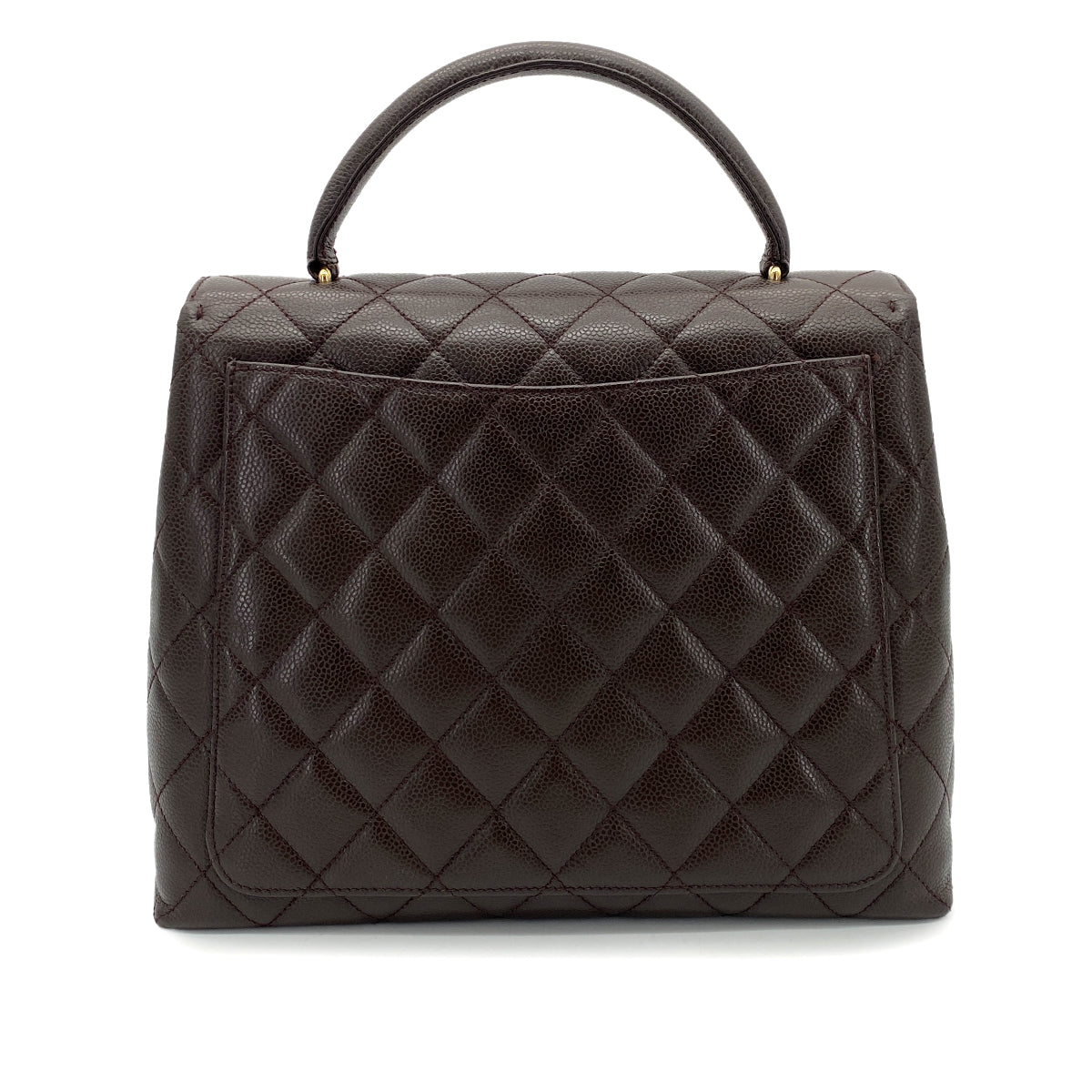 CHANEL VINTAGE MATELASSE HAND BAG DARK BROWN CAVIAR SKIN 90250468