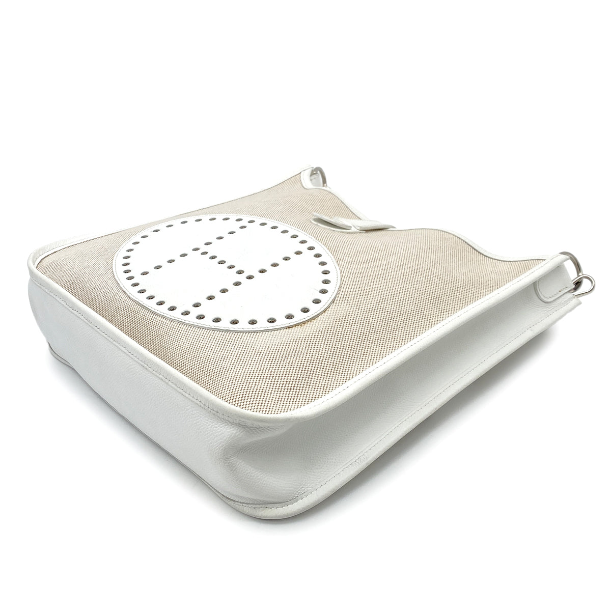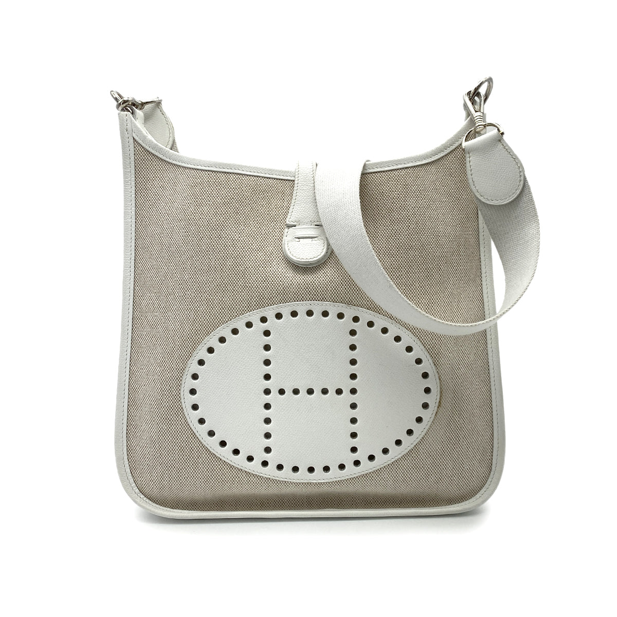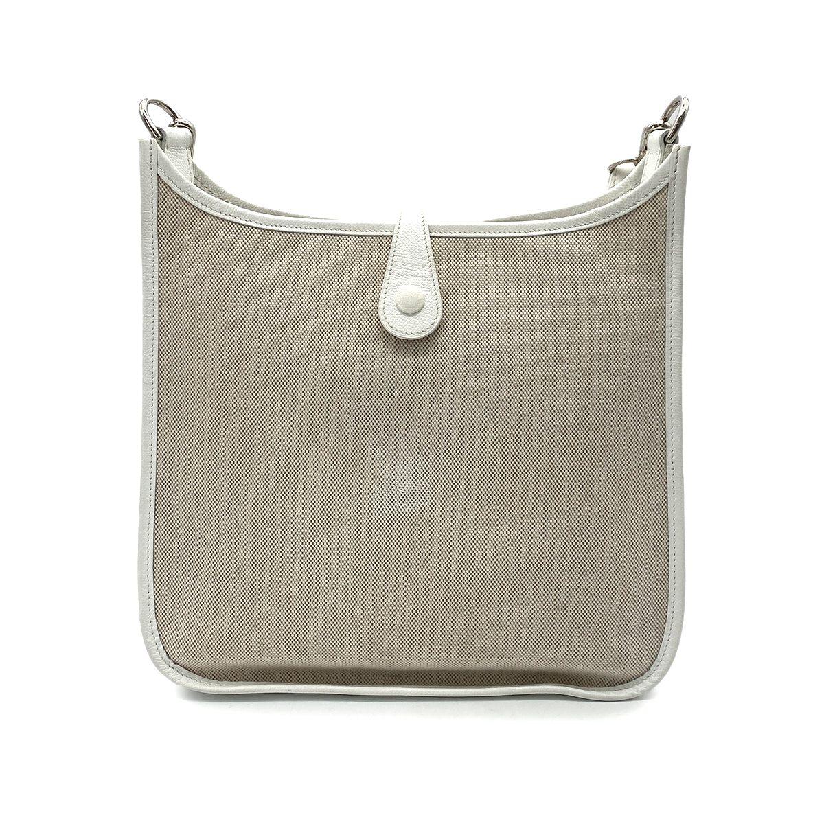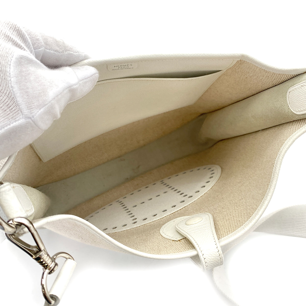 HERMES EVELYNE PM WHITE TOILE H SHOULDER BAG □H SHW 90251092