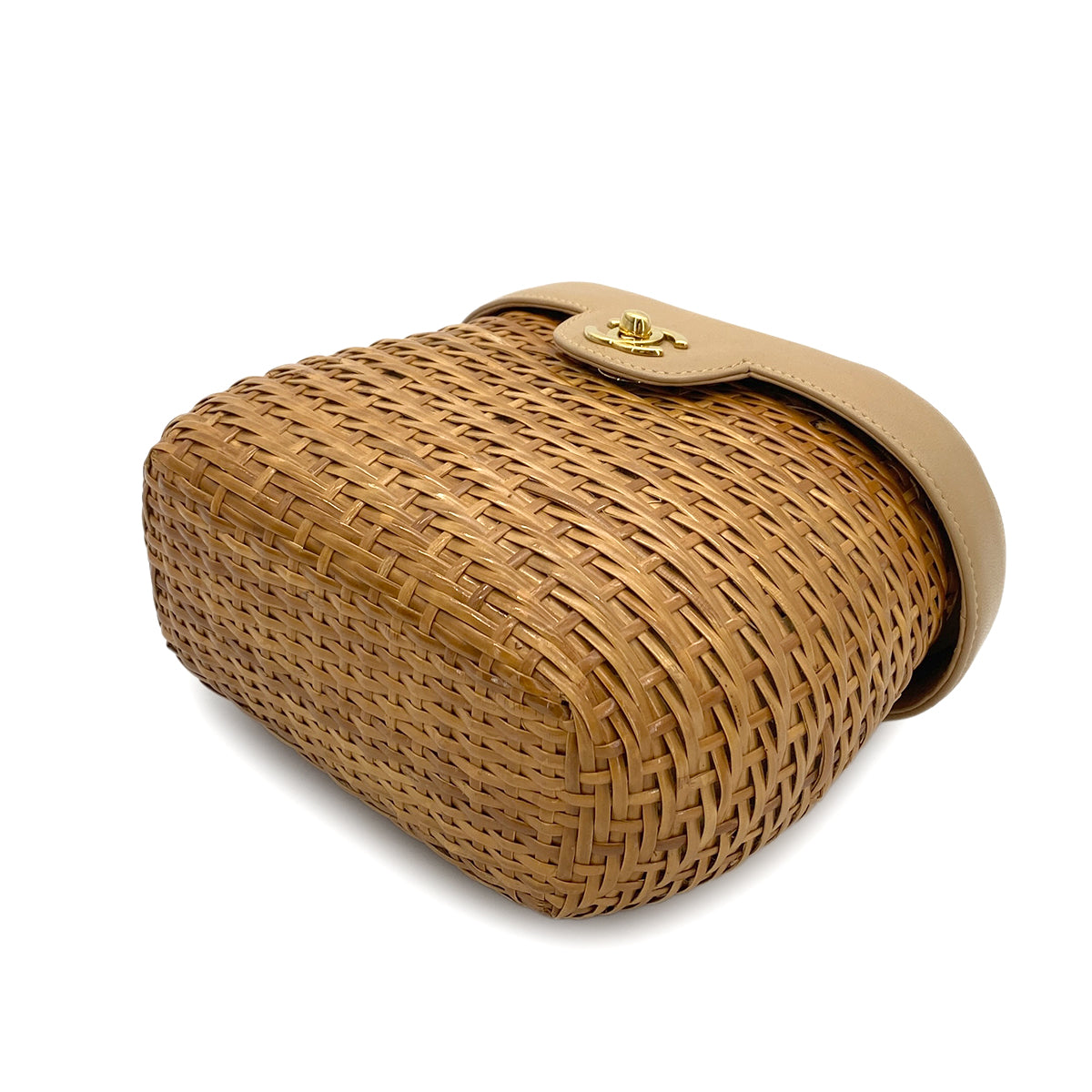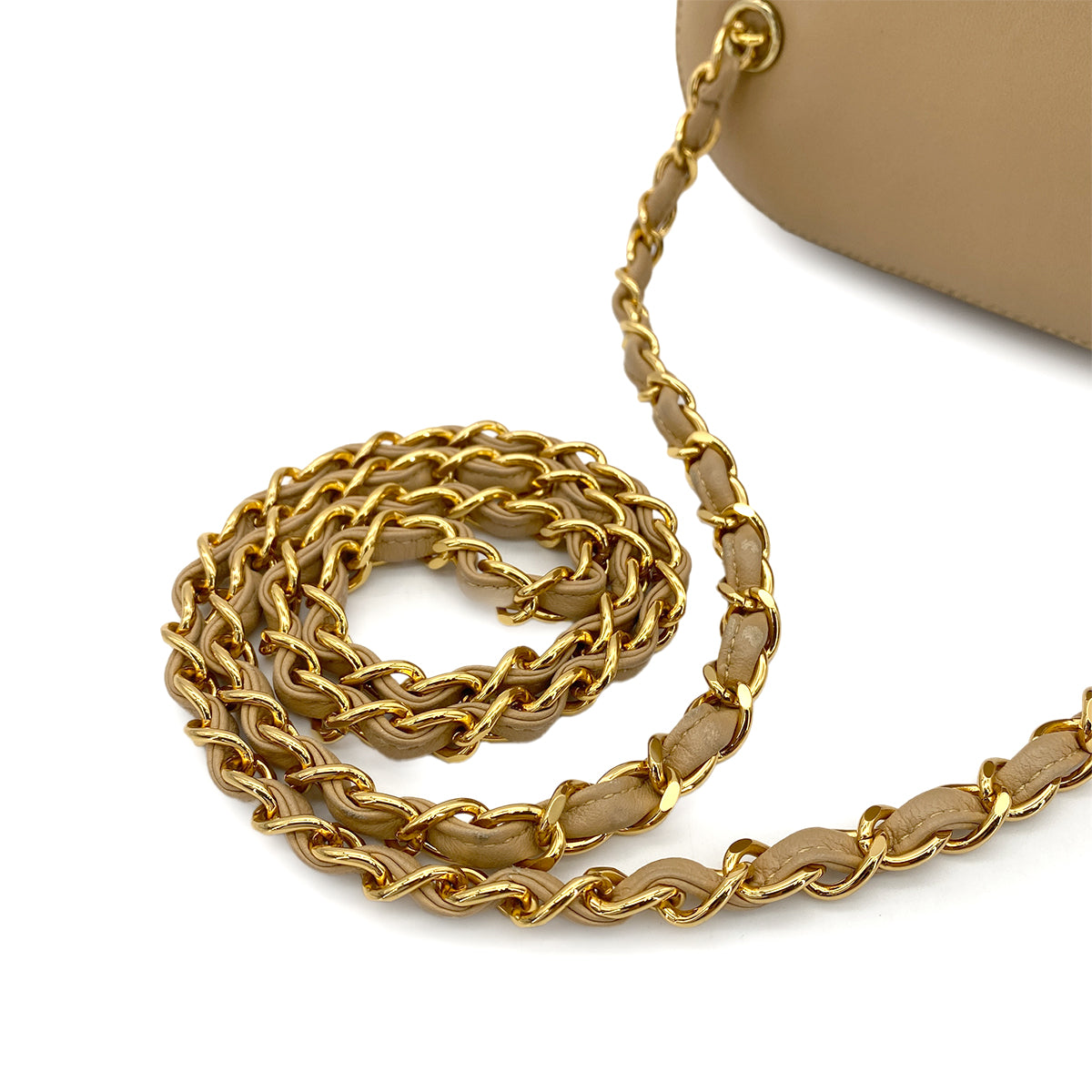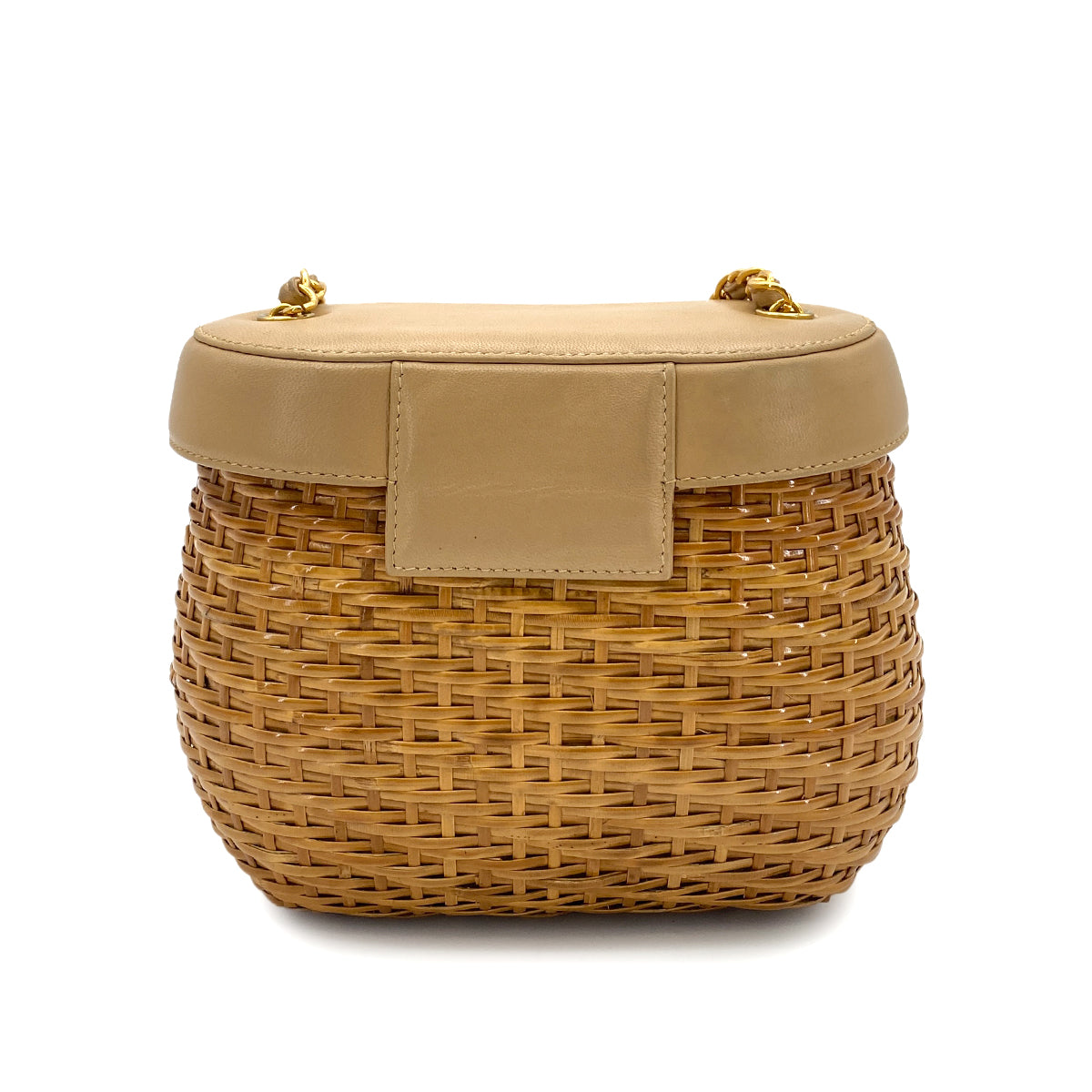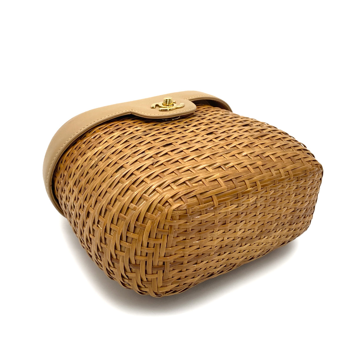 CHANEL VINTAGE CHAIN SHOULDER BEIGE BROWN RATTAN LEATHER 90251383