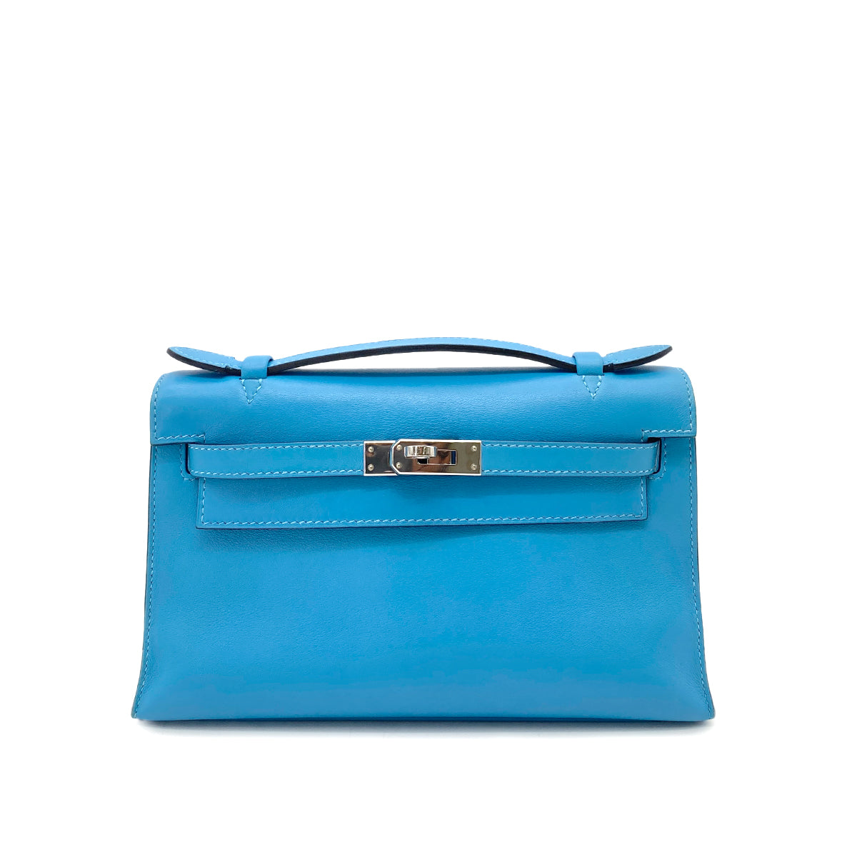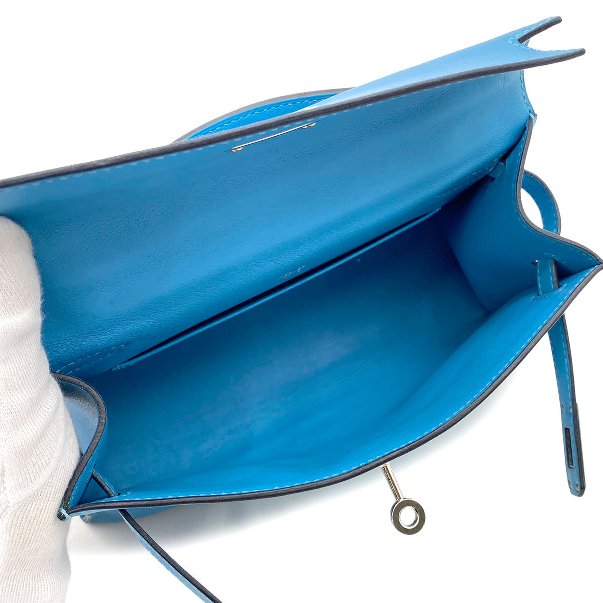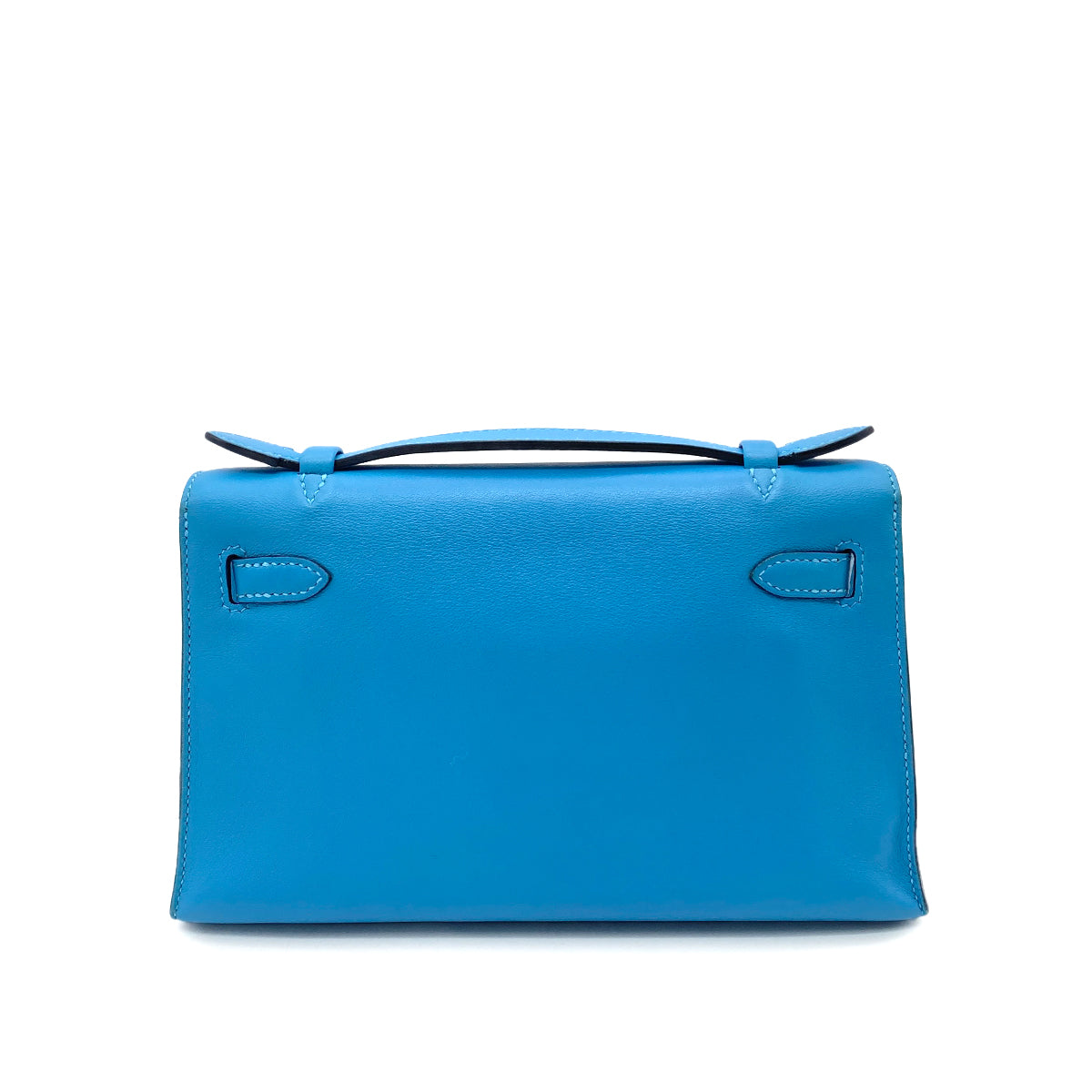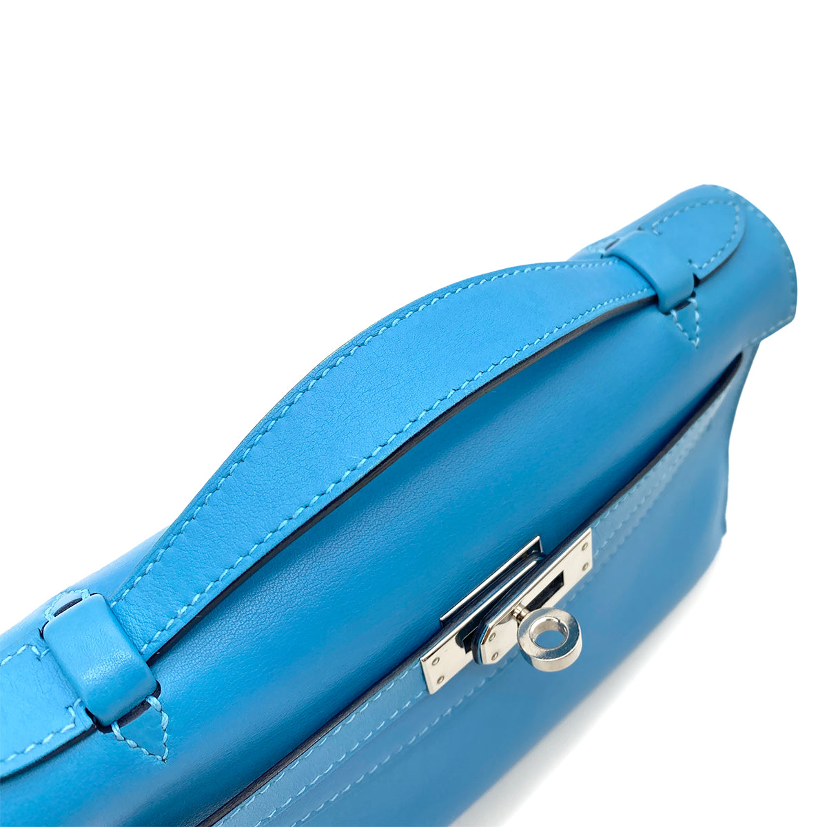 HERMES KELLY POCHETTE SELLIER TURQUOISE SWIFT HAND BAG D SHW 90251384