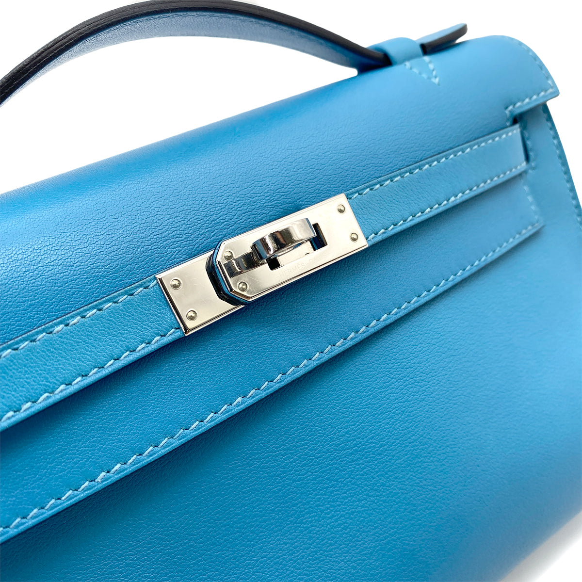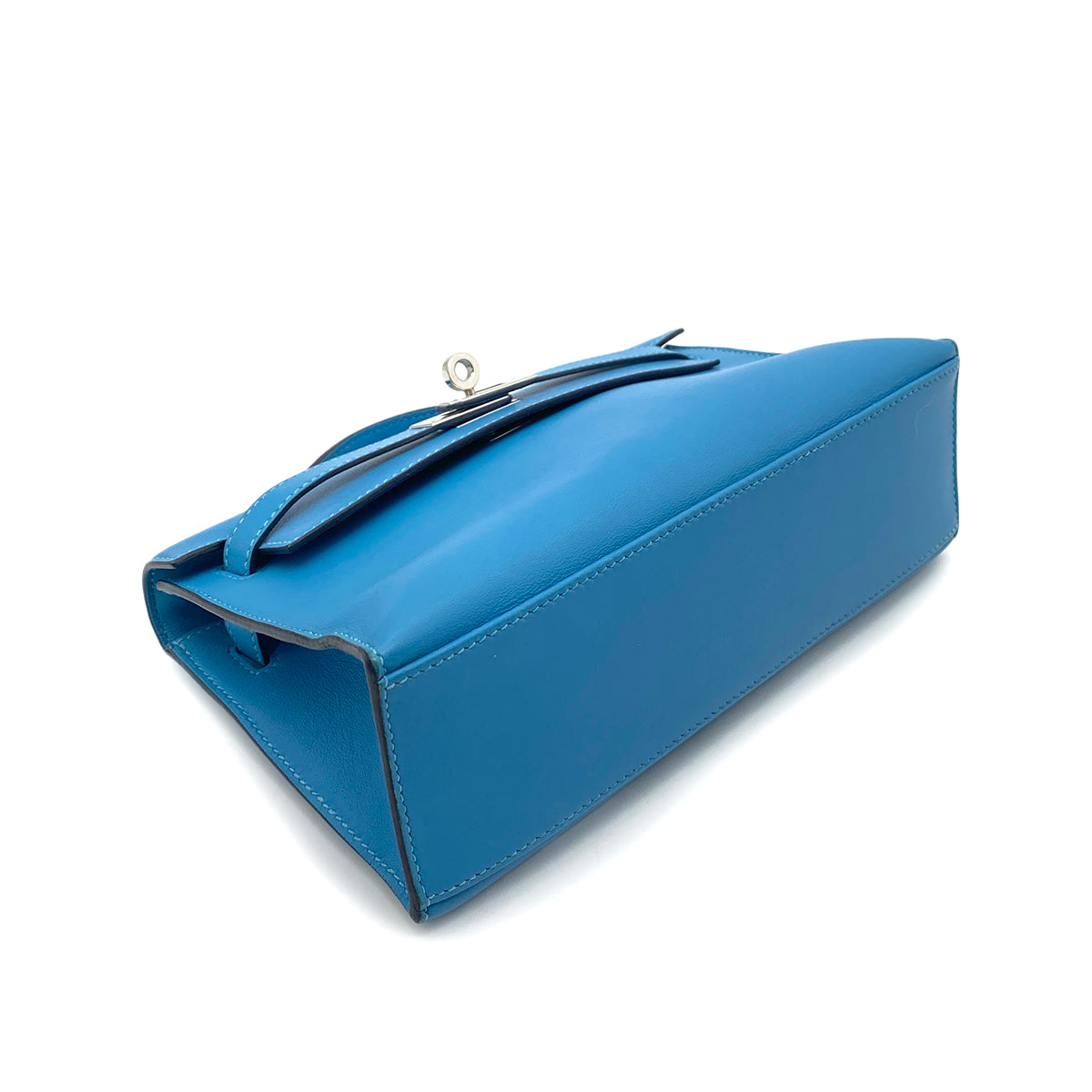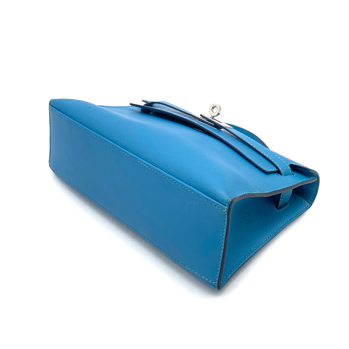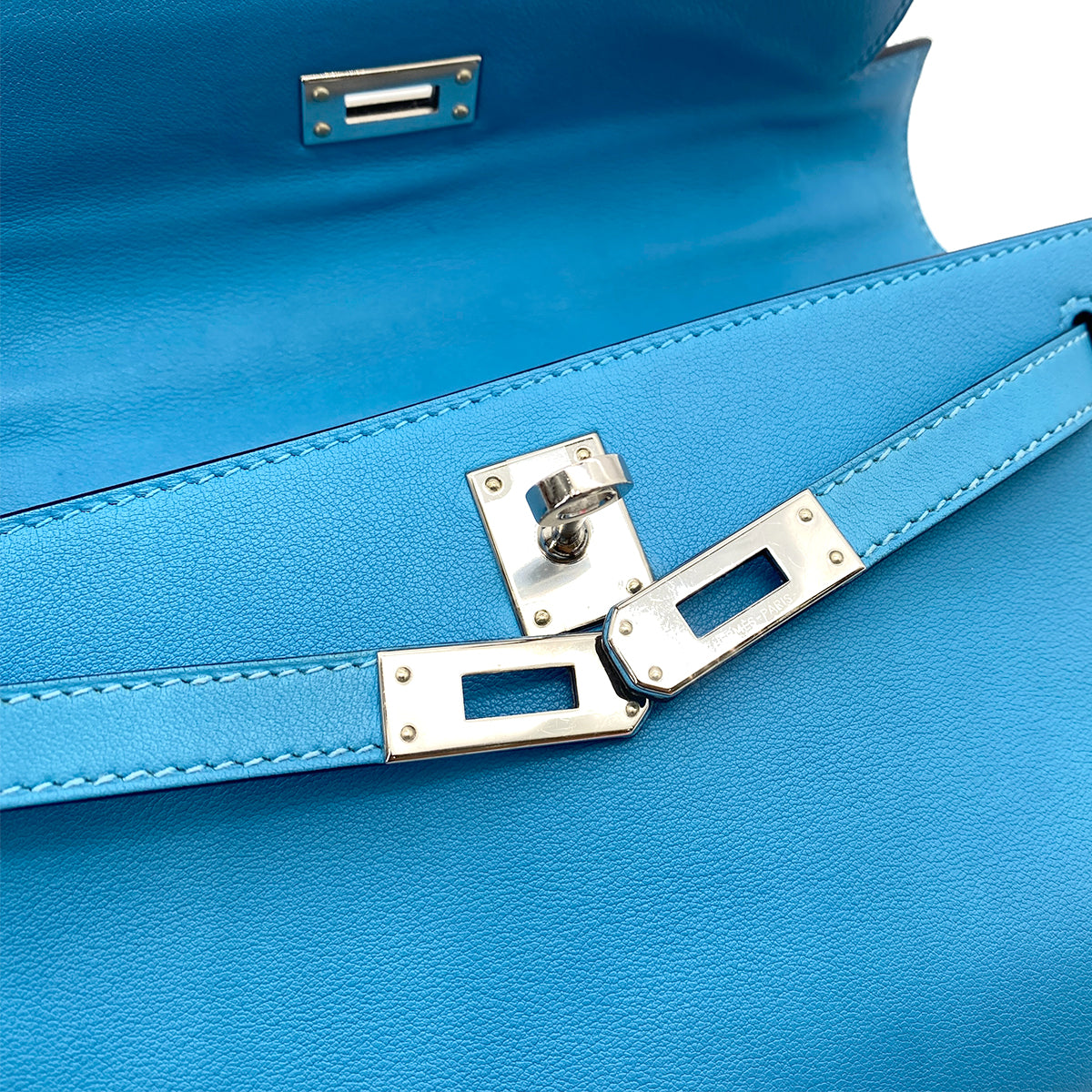 HERMES KELLY POCHETTE SELLIER TURQUOISE SWIFT HAND BAG D SHW 90251384