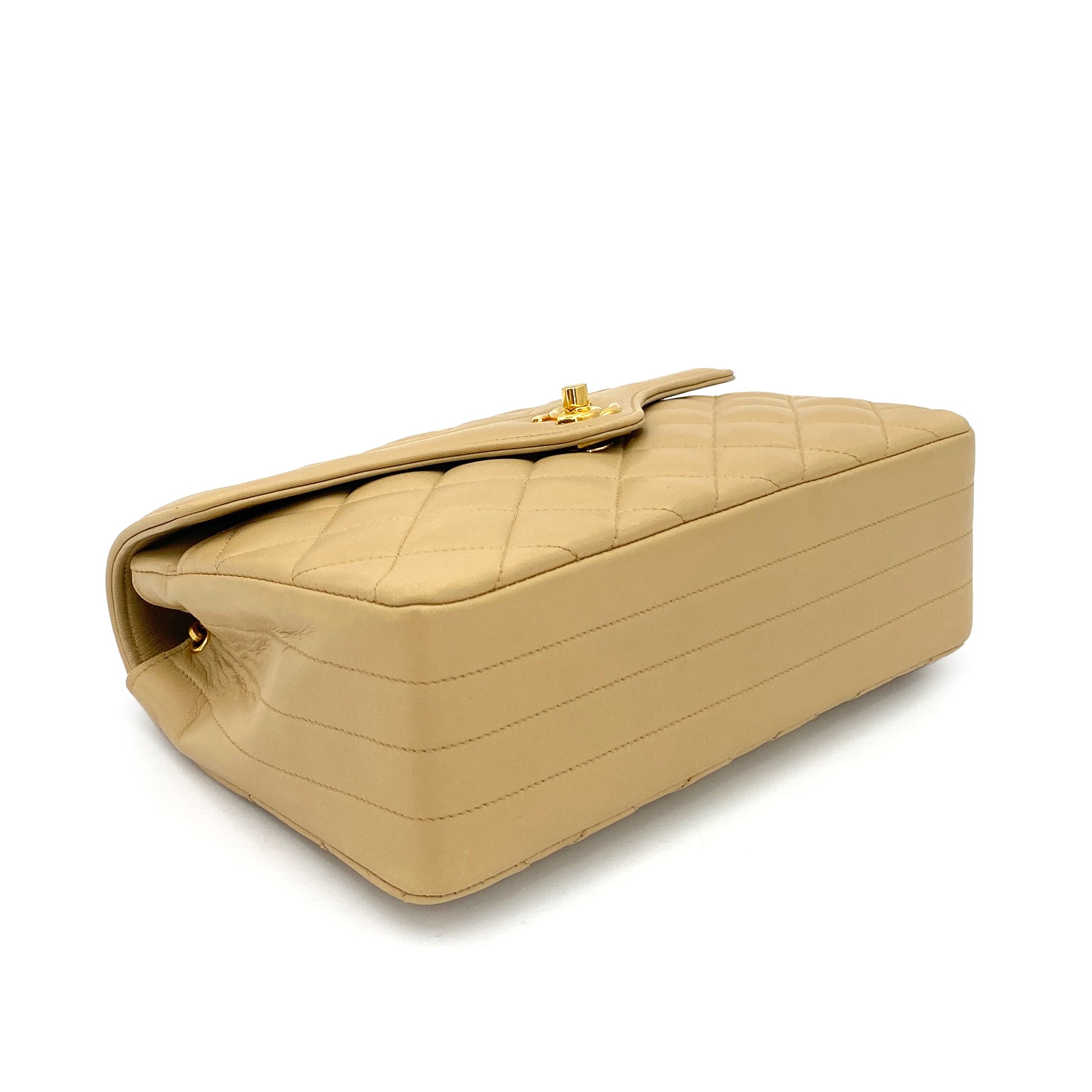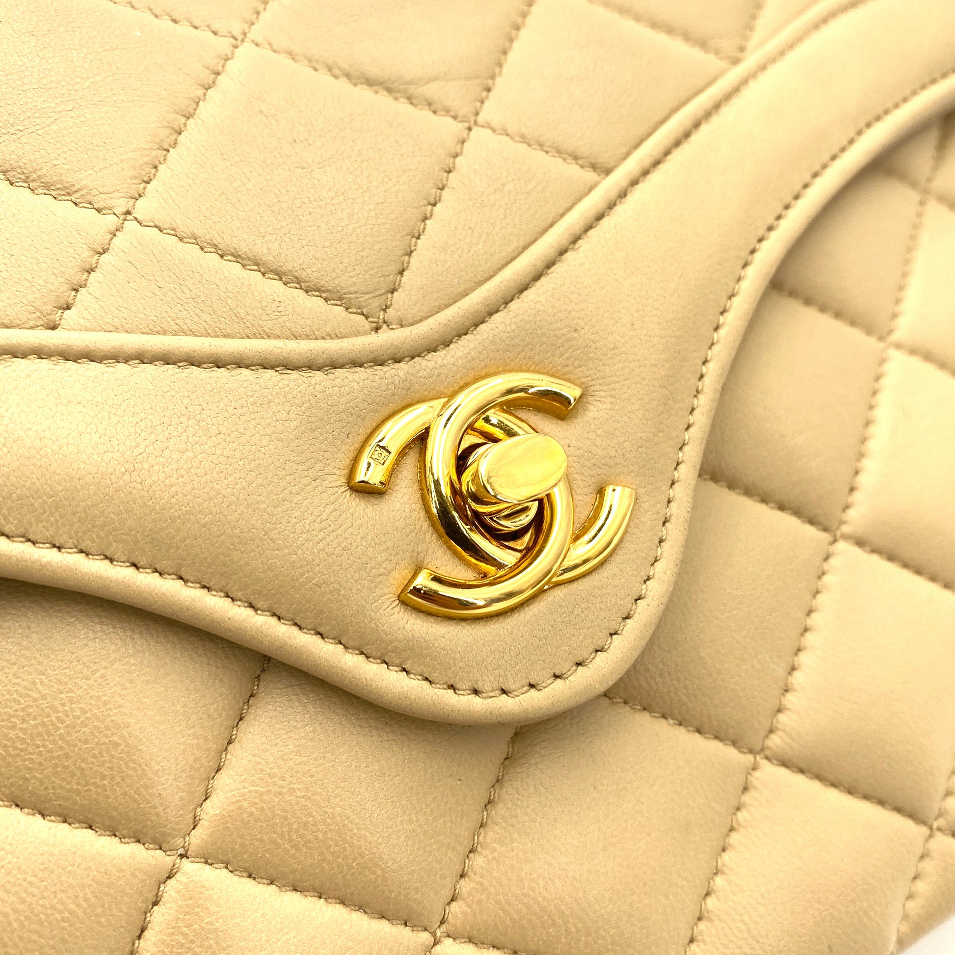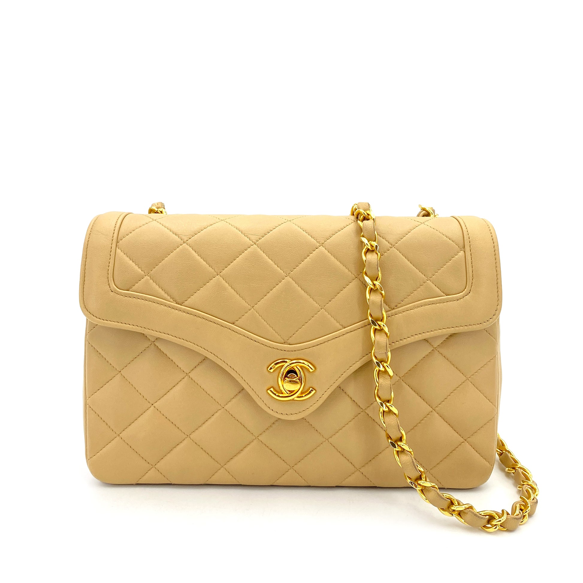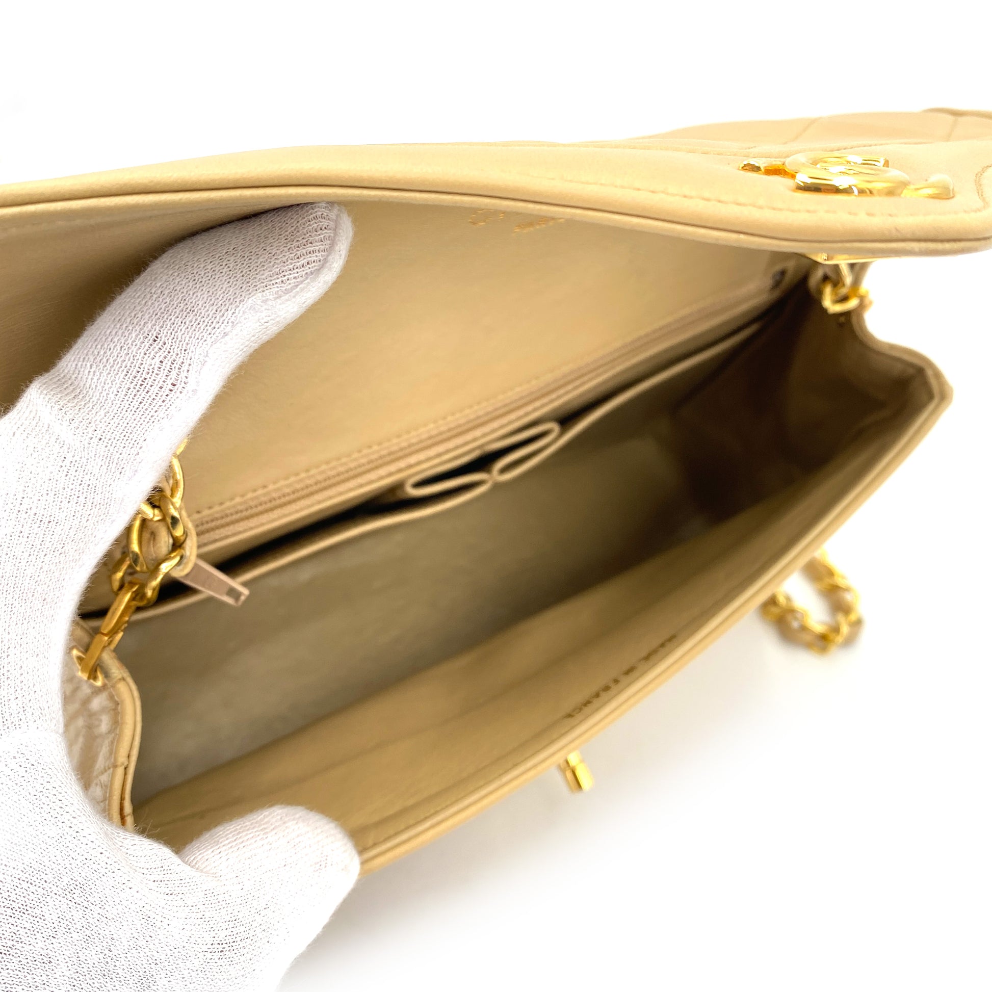 CHANEL VINTAGE PANTY LINE MATELASSE CHAIN SHOULDER BAG BEIGE LAMB SKIN 90251693