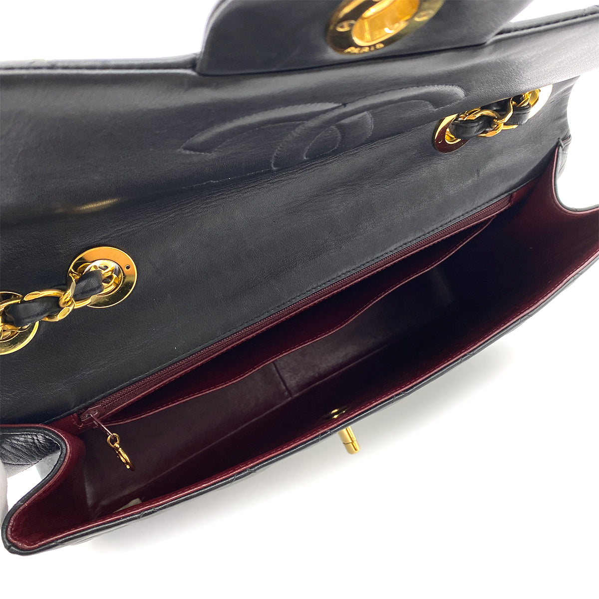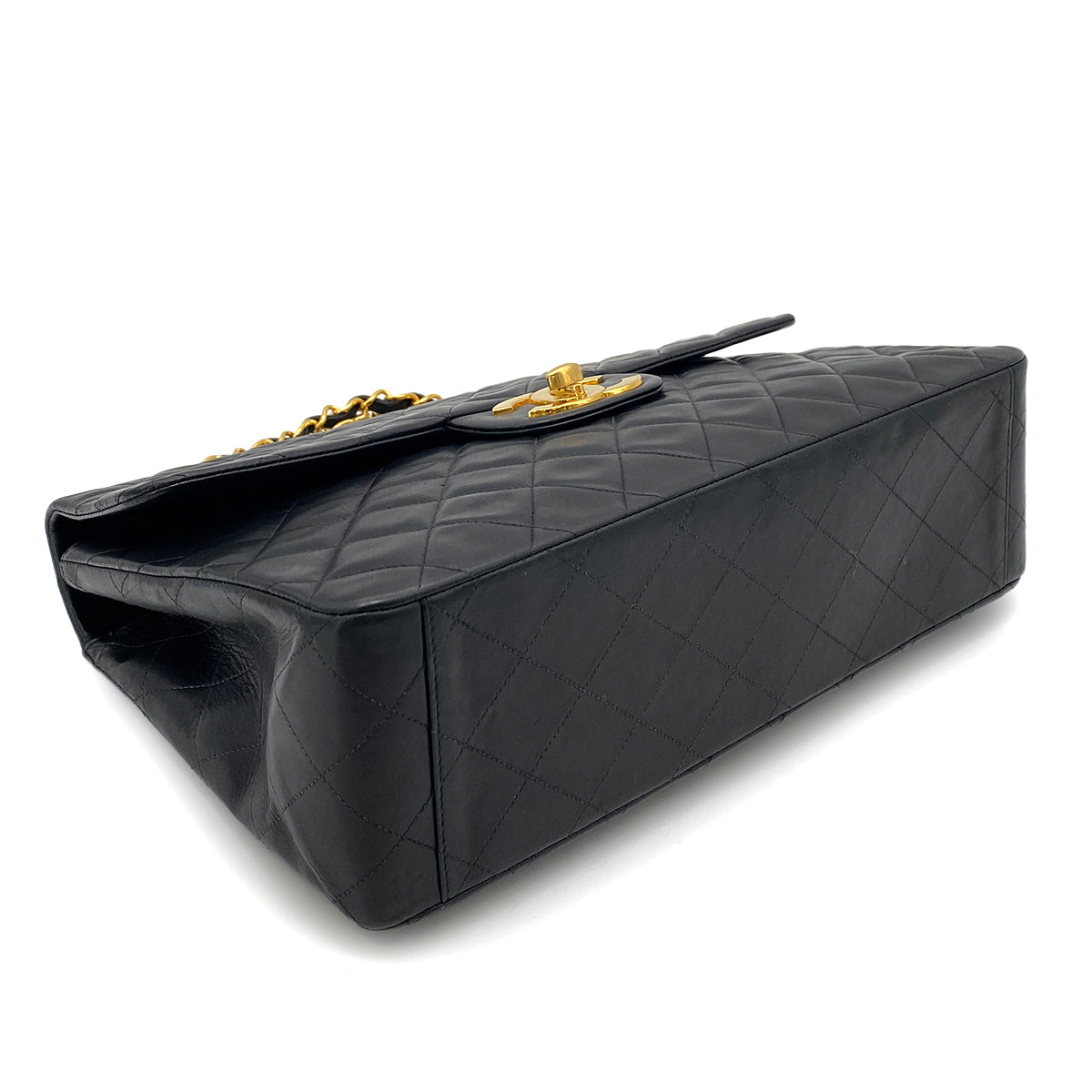 CHANEL VINTAGE MAXI MATELASSE 34 CHAIN SHOULDER BAG BLACK LAMB SKIN 90252002
