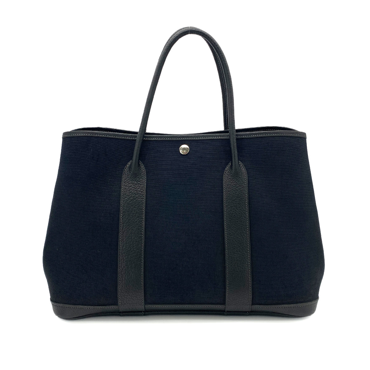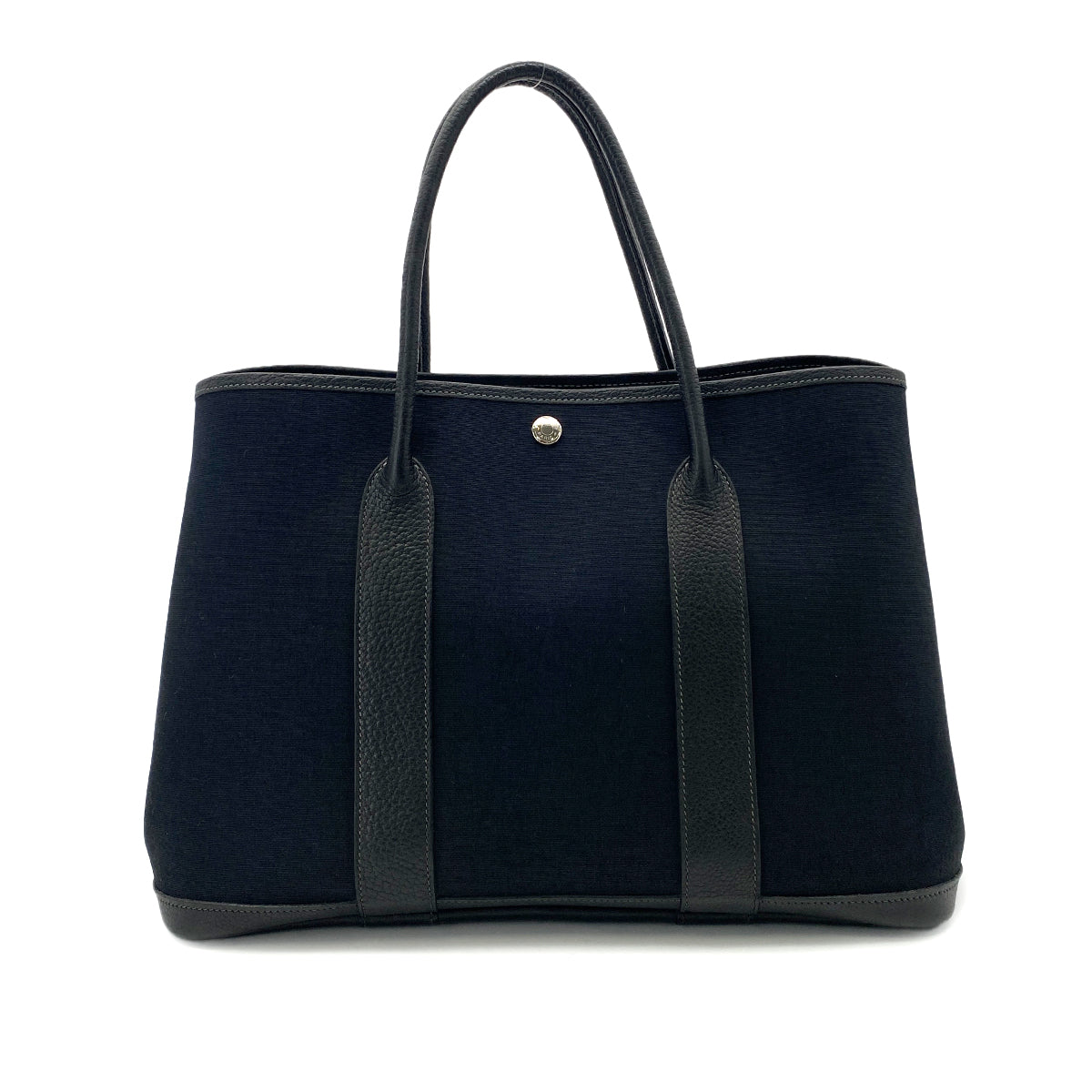 HERMES GARDEN PARTY PM BLACK TOILE OFFICIER HAND BAG □H 90252004