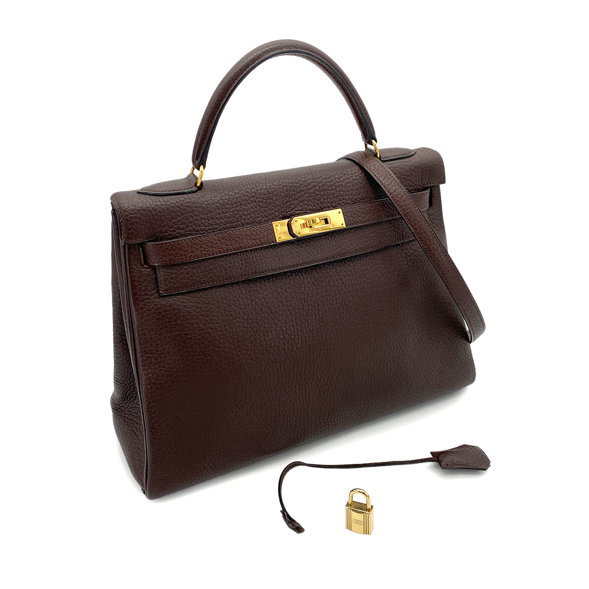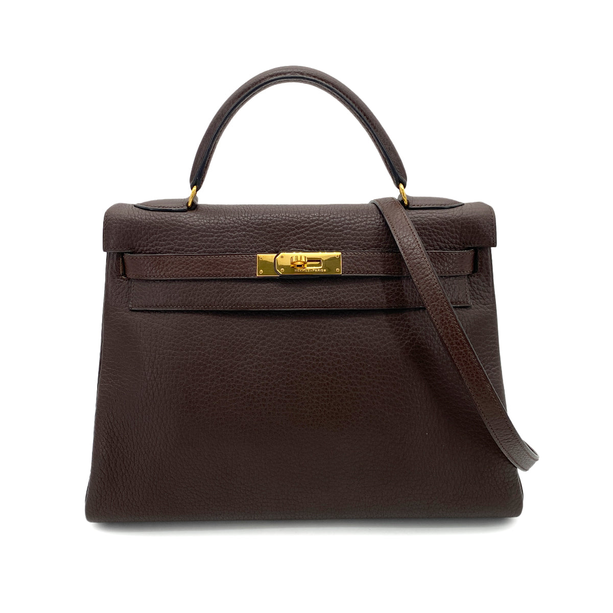 HERMES KELLY 32 RETOURNE BROWN TYPE TOGO HAND SHOULDER BAG 〇V GHW 90252014