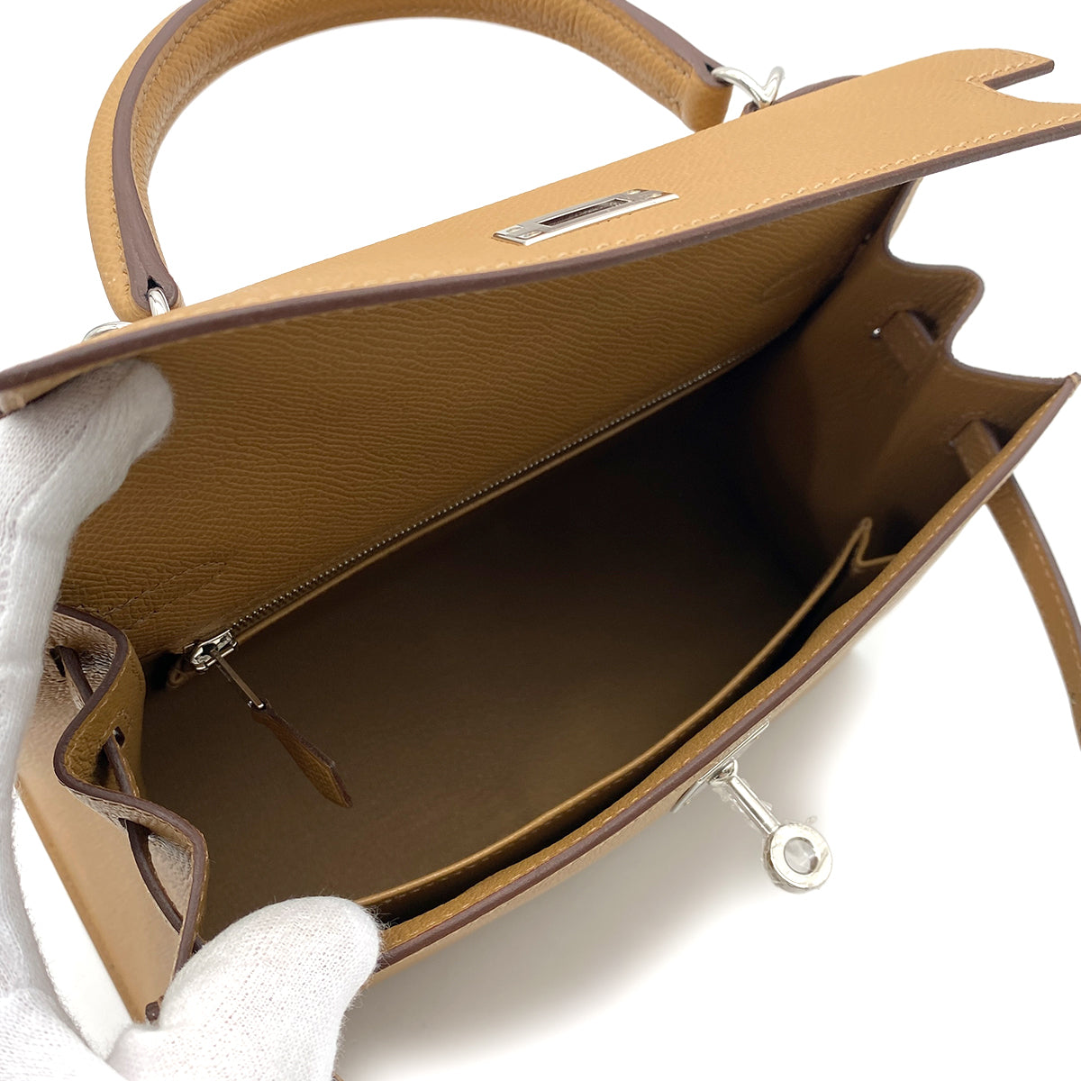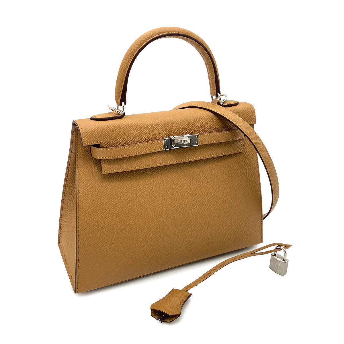 HERMES KELLY 25 SELLIER BISCUIT EPSOM HAND SHOULDER BAG W SHW 90252535
