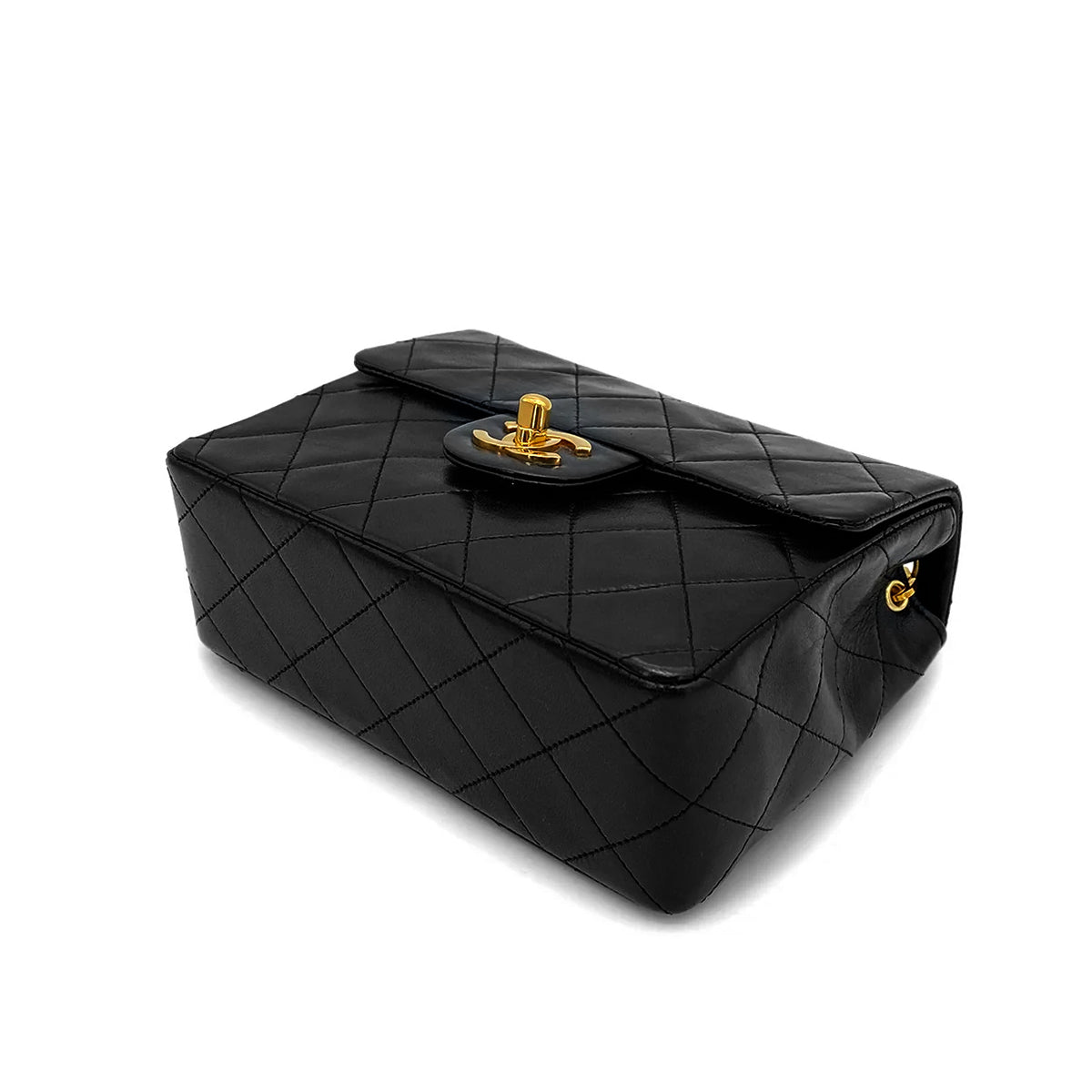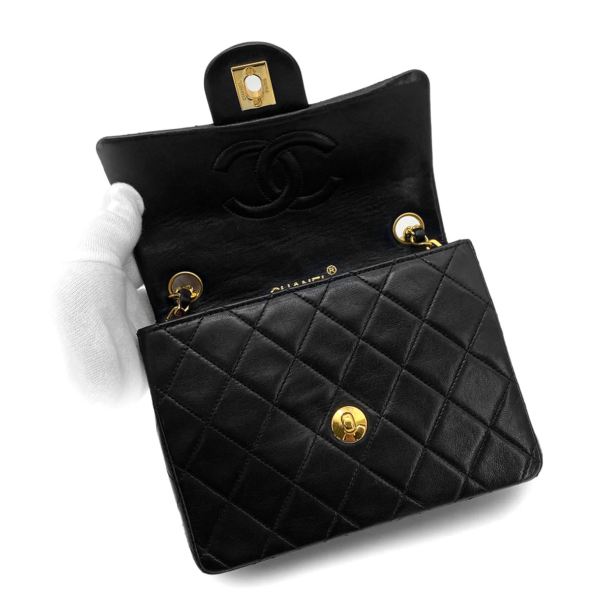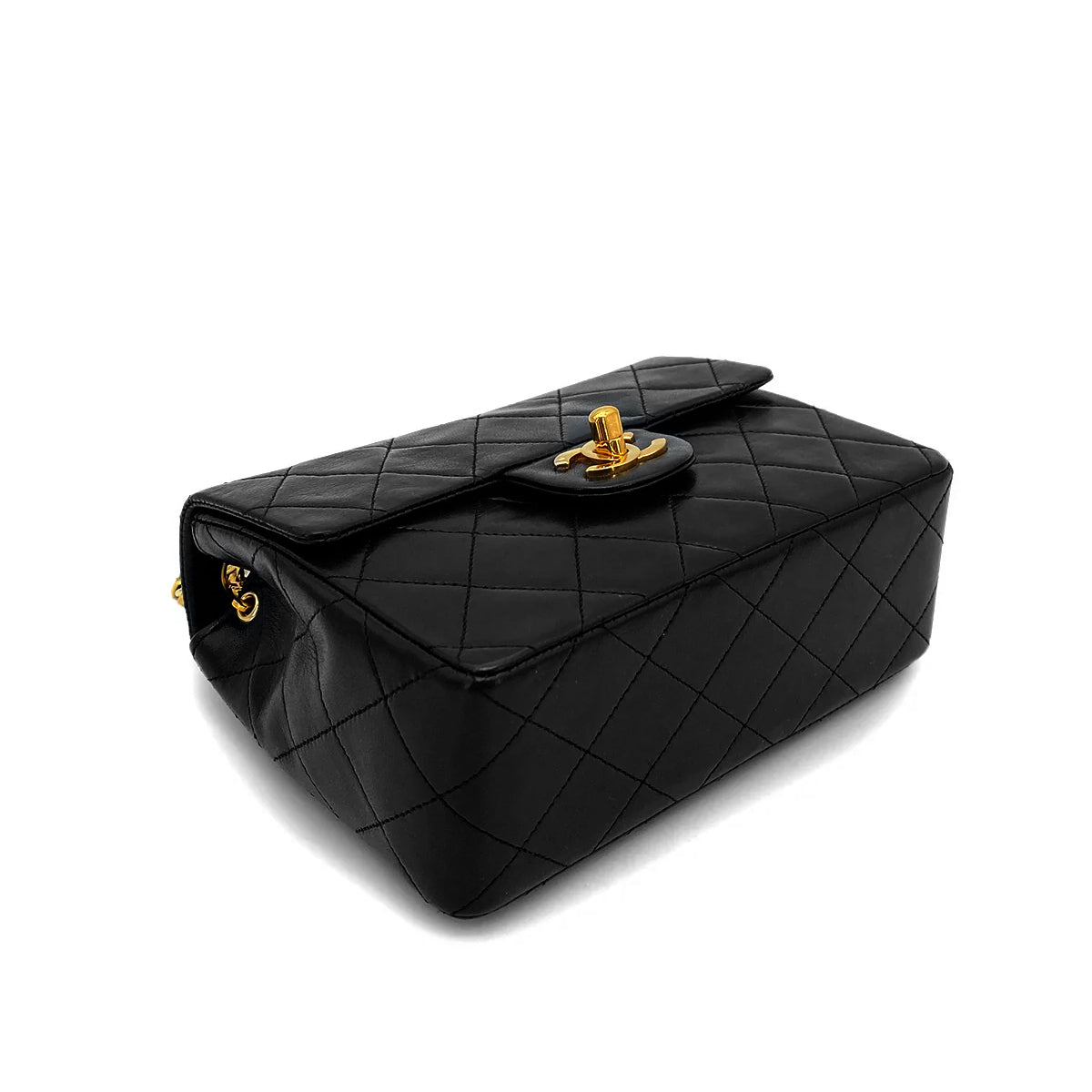 CHANEL VINTAGE MINI SQUARE 17 CHAIN SHOULDER BAG BLACK LAMB SKIN 90252542