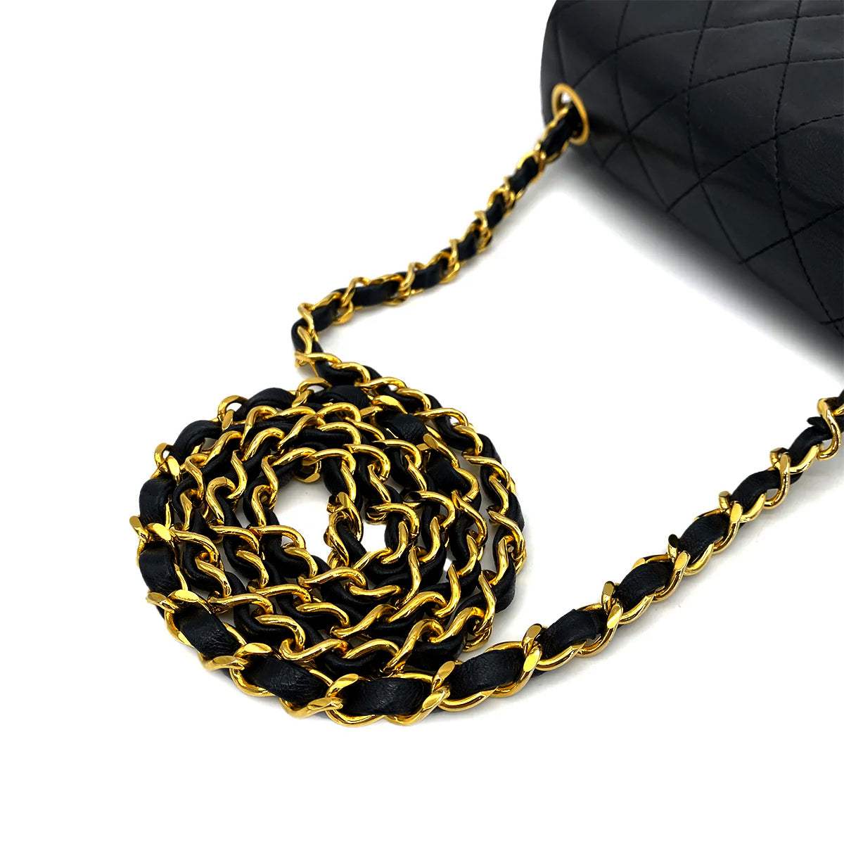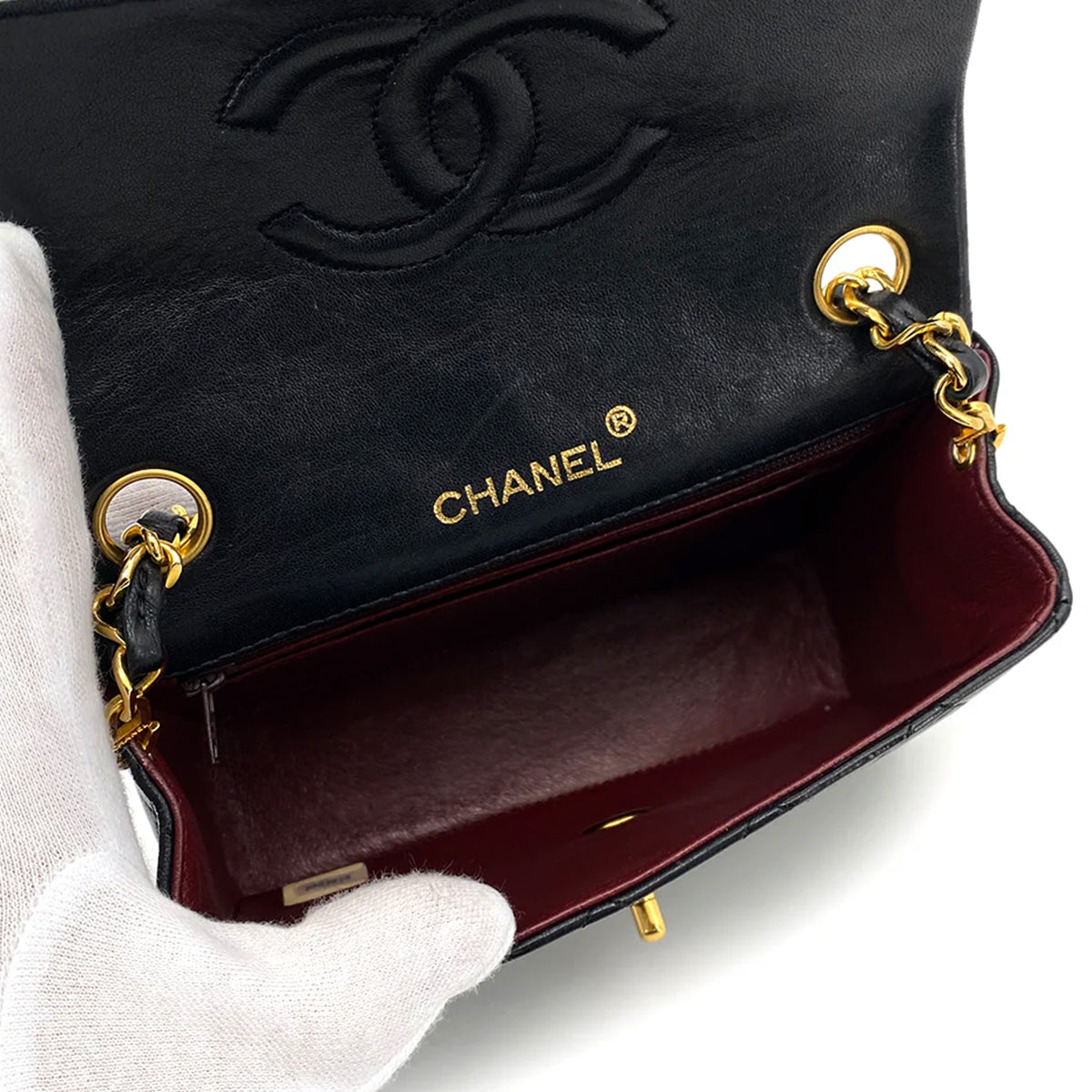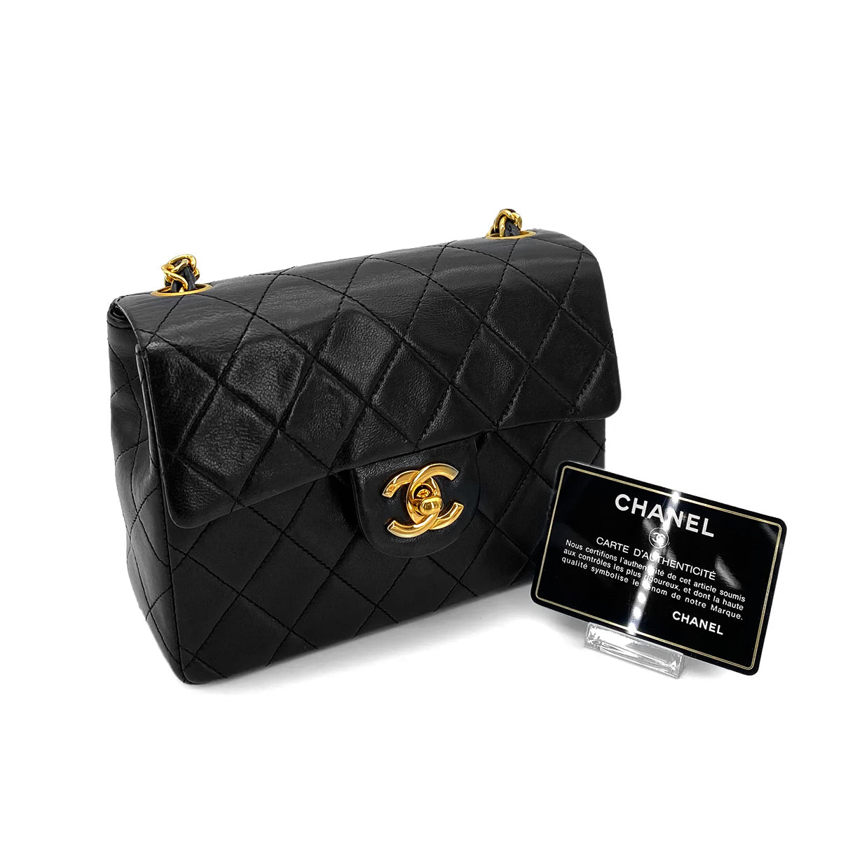 CHANEL VINTAGE MINI SQUARE 17 CHAIN SHOULDER BAG BLACK LAMB SKIN 90252542