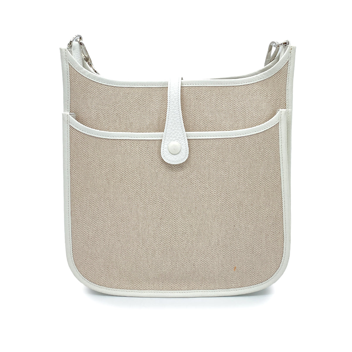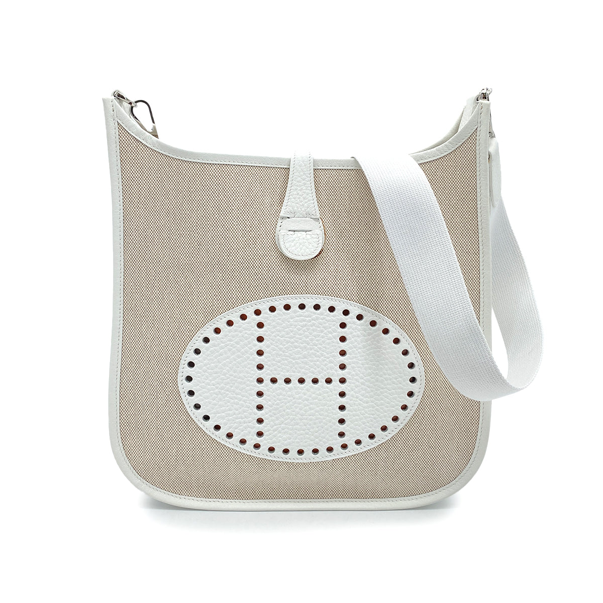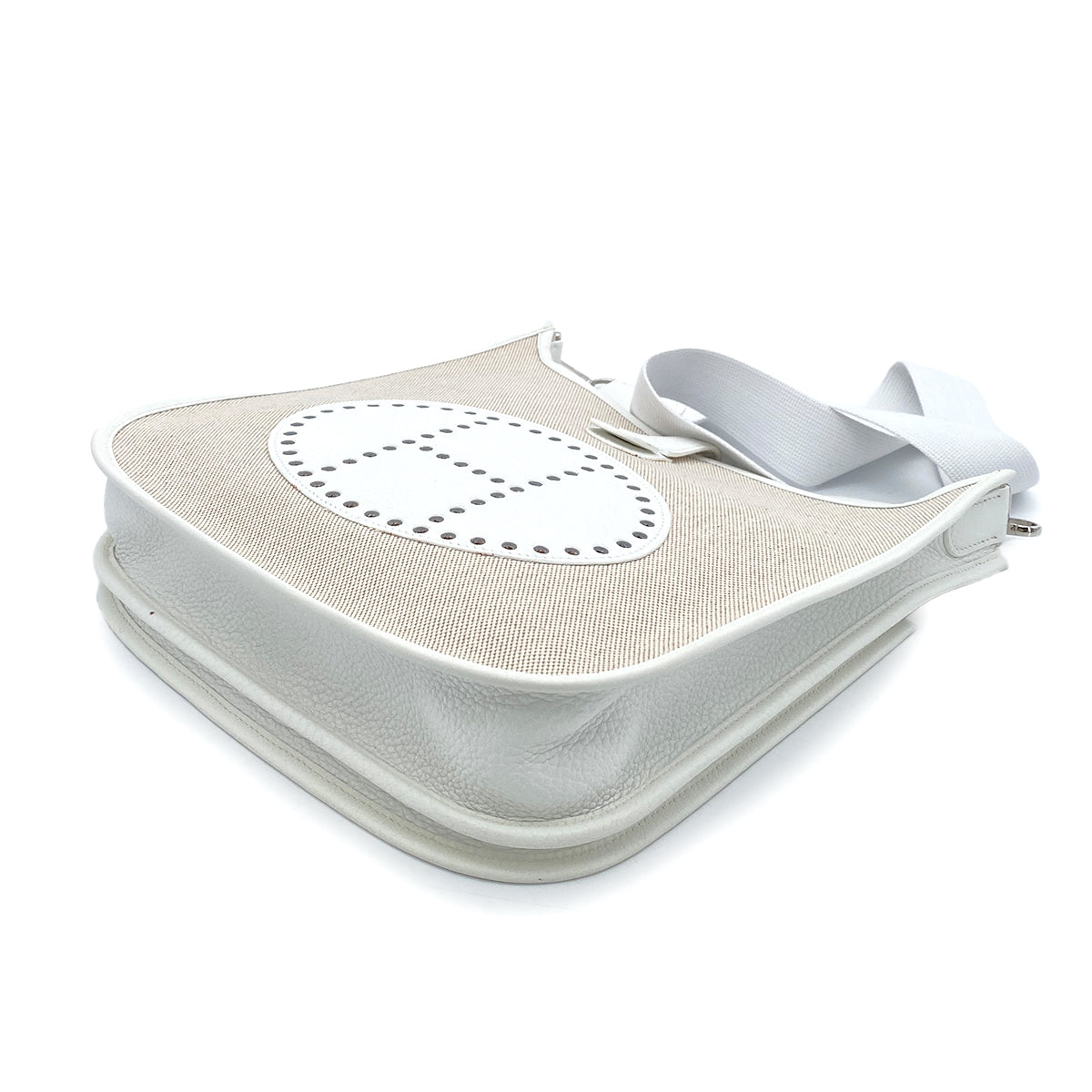HERMES EVELYNE2 PM WHITE TOILE H SHOULDER BAG □J SHW 90252979