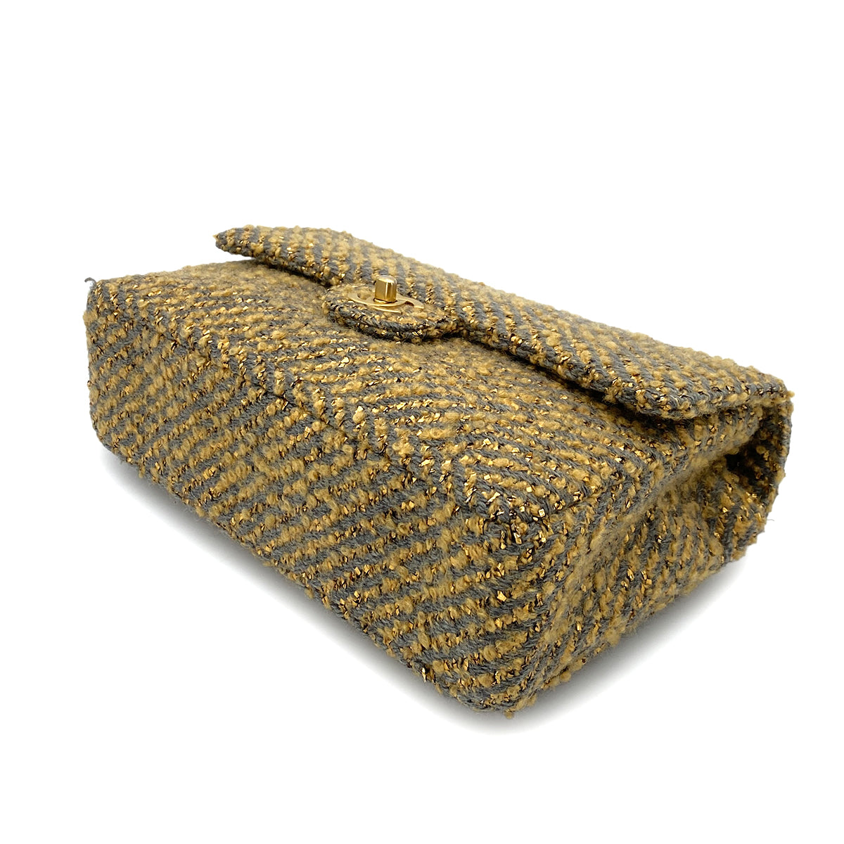CHANEL VINTAGE CLASSIC FLAP MEDIUM CHAIN SHOULDER BAG BEIGE GRAY TWEED 90252982