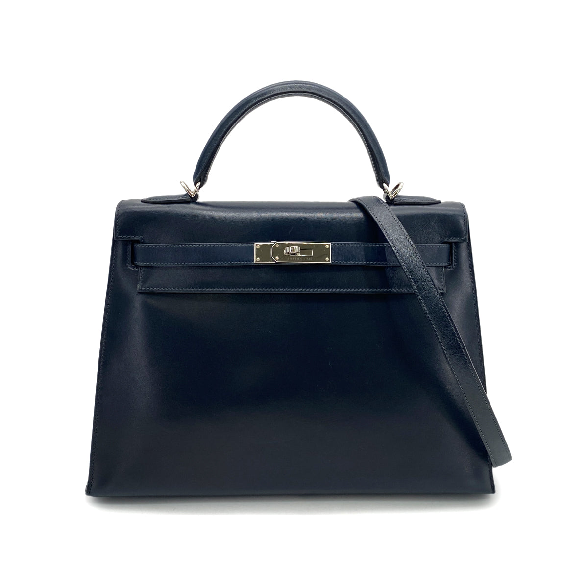 HERMES KELLY 32 SELLIER BLUE INDIGO BOXCALF HAND SHOULDER BAG □Q SHW 90253613