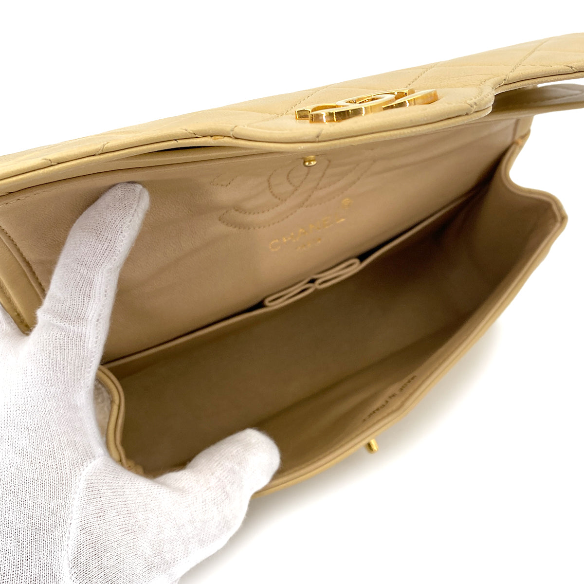 CHANEL VINTAGE MATELASSE CHAIN SHOULDER BAG BEIGE LAMB SKIN 90253640