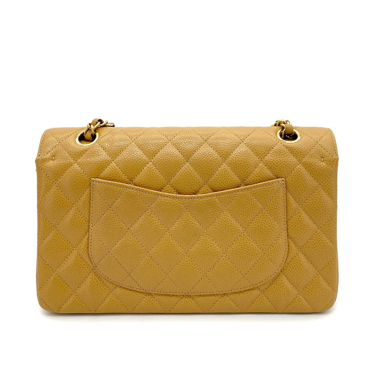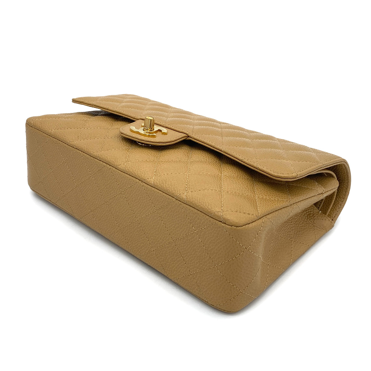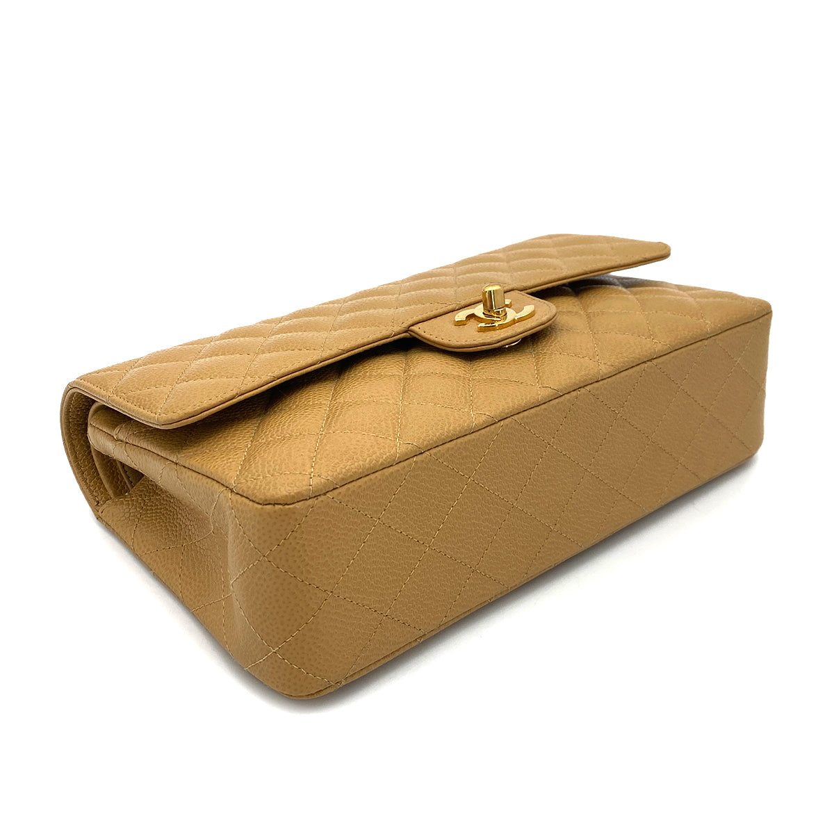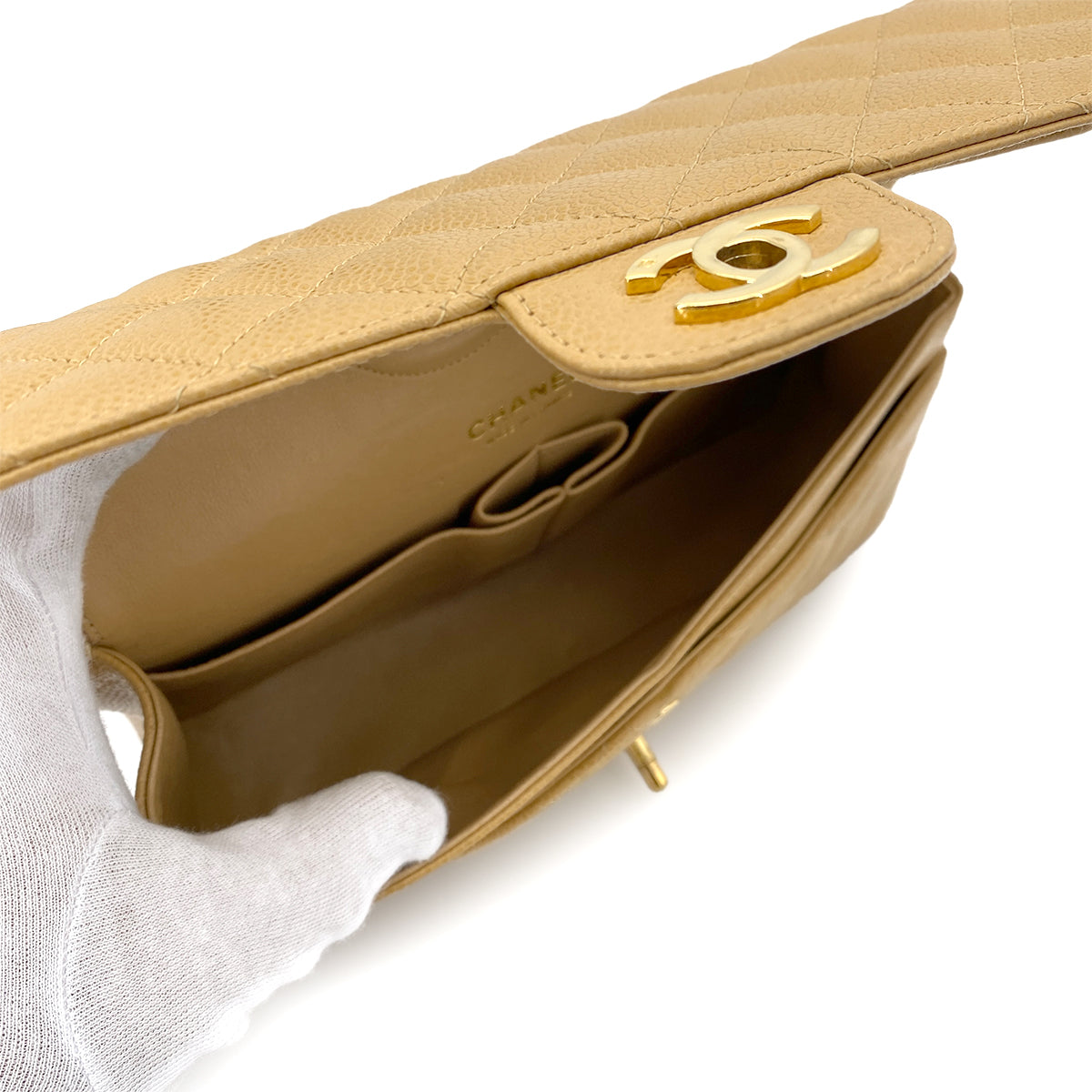 CHANEL VINTAGE CLASSIC FLAP MEDIUM CHAIN SHOULDER BAG BEIGE CAVIAR SKIN 90253882