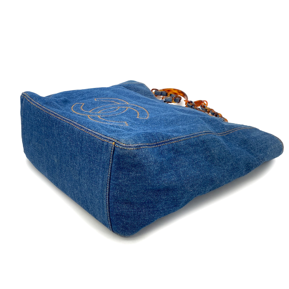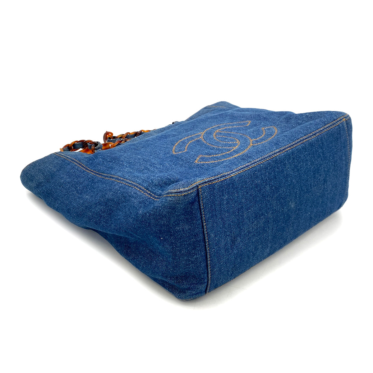 CHANEL VINTAGE DENIM BIG COCO TORTOISESHELL HANDLE CHAIN TOTE BAG 90254618