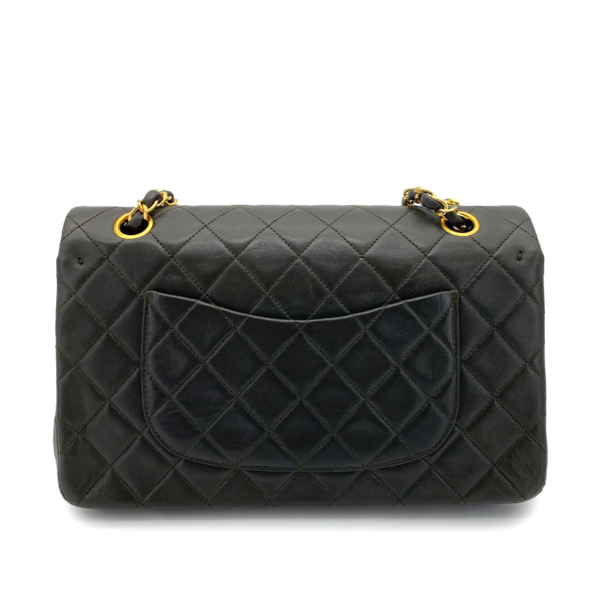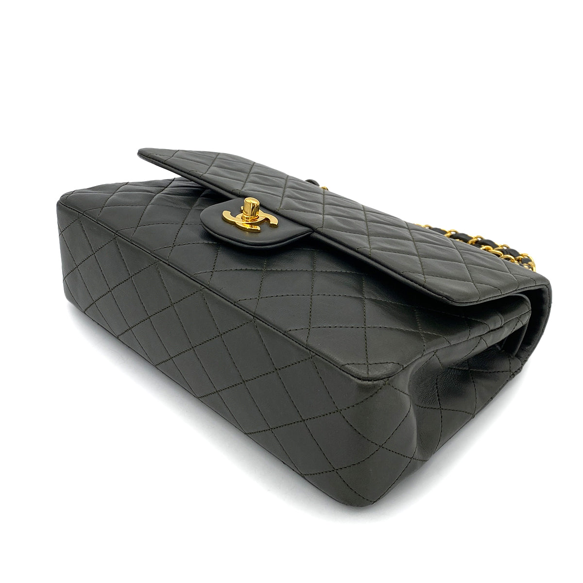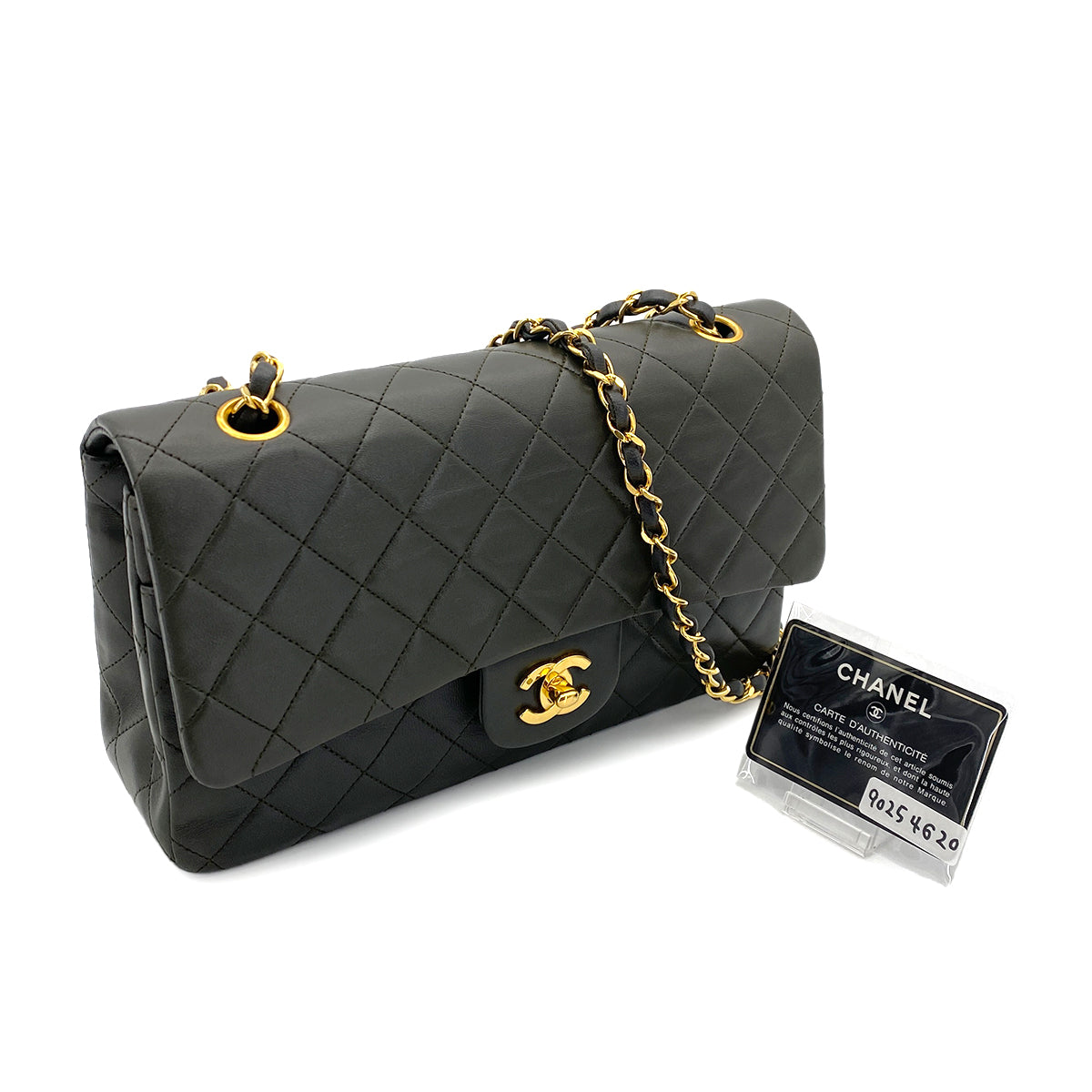 CHANEL VINTAGE CLASSIC FLAP MEDIUM CHAIN SHOULDER BAG KAHKI LAMB SKIN 90254620