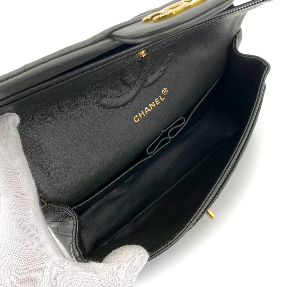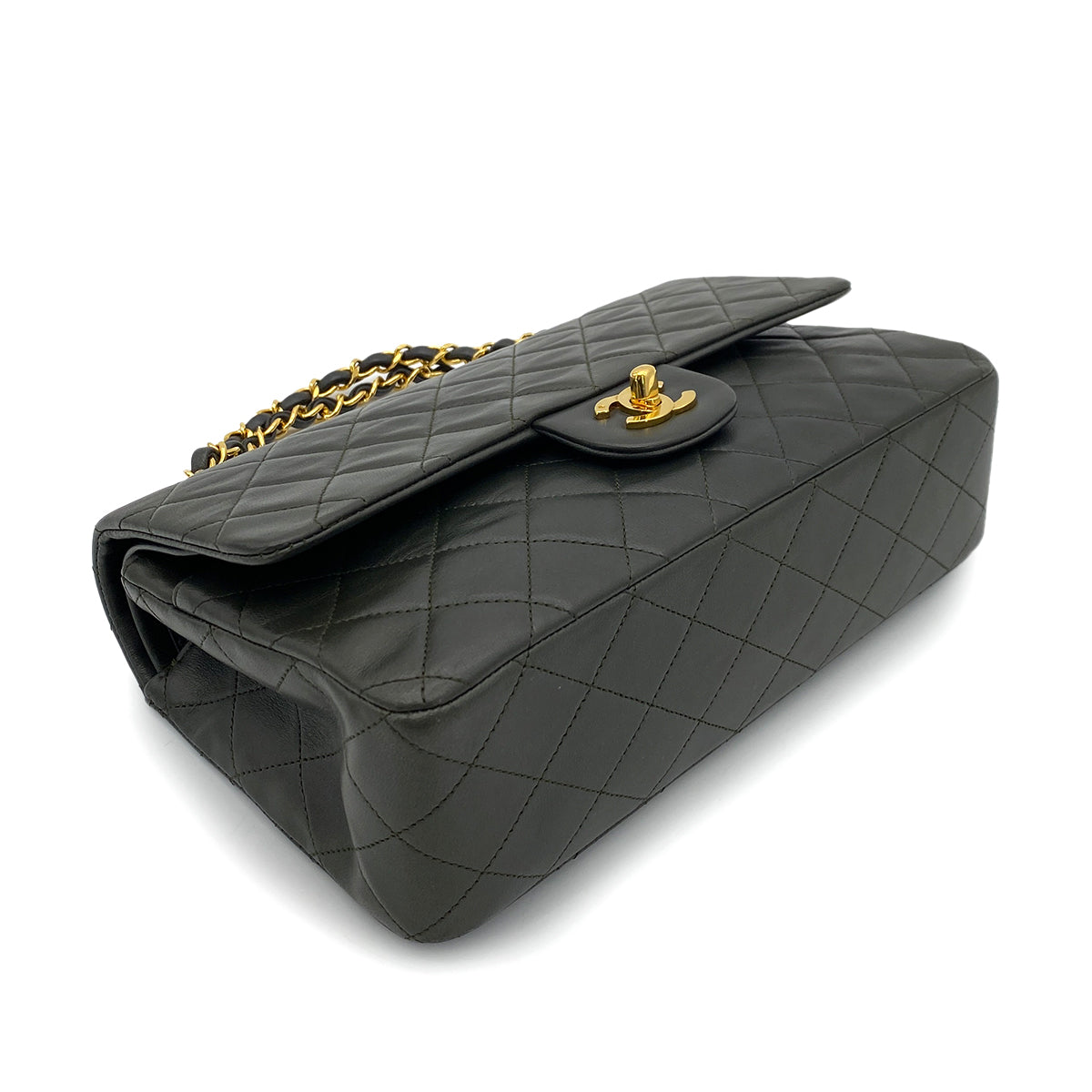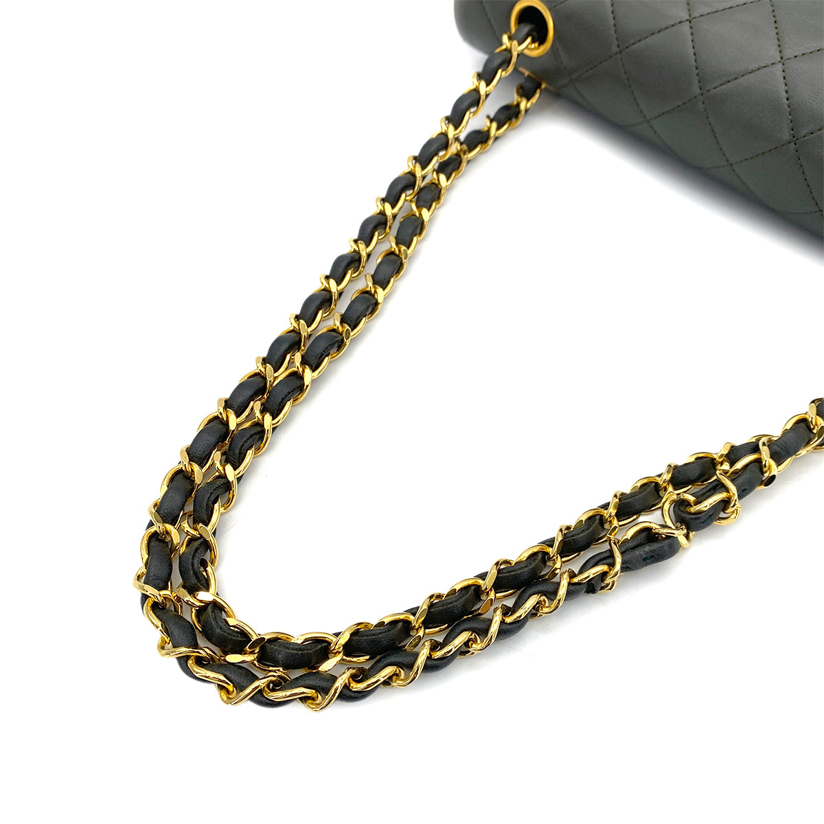CHANEL VINTAGE CLASSIC FLAP MEDIUM CHAIN SHOULDER BAG KAHKI LAMB SKIN 90254620
