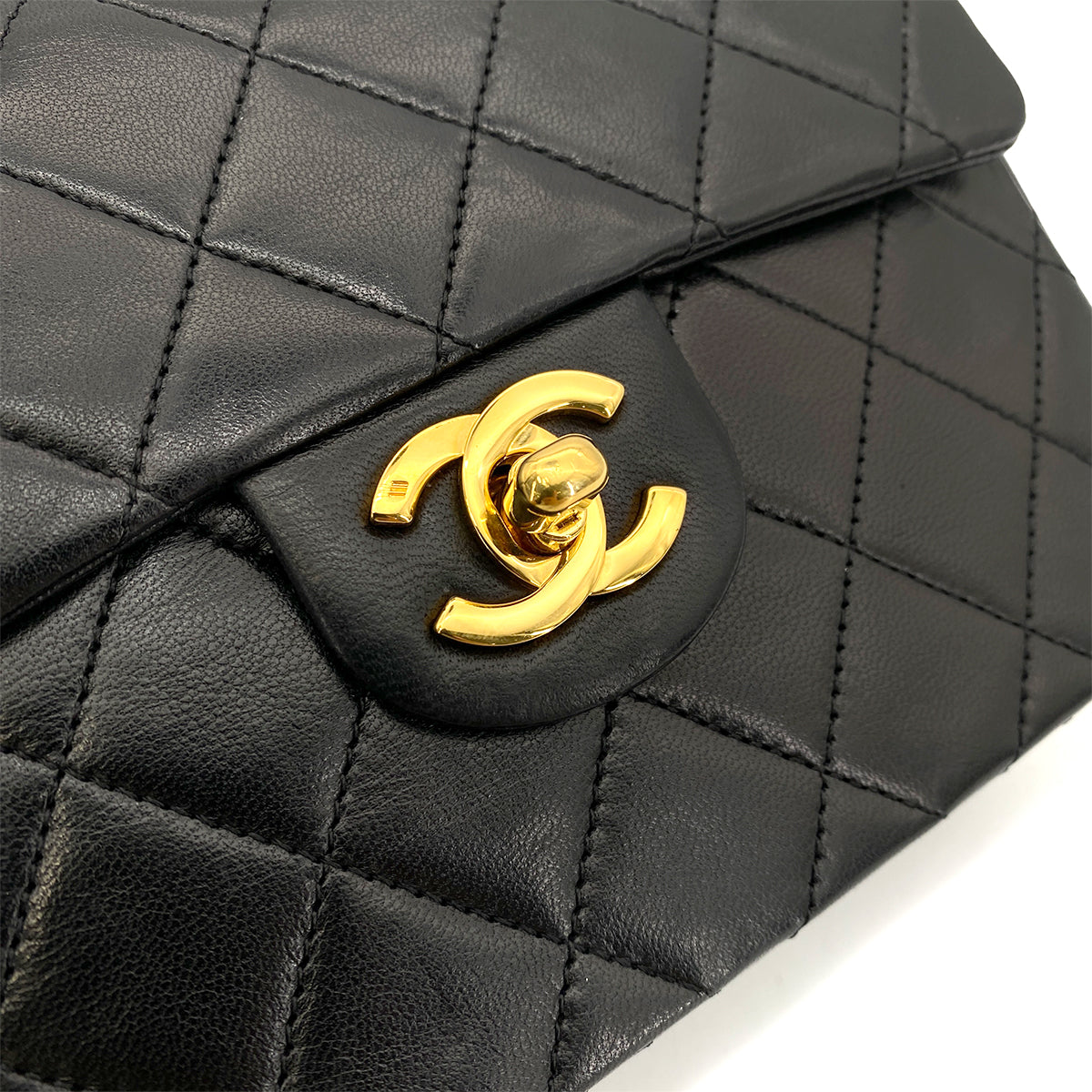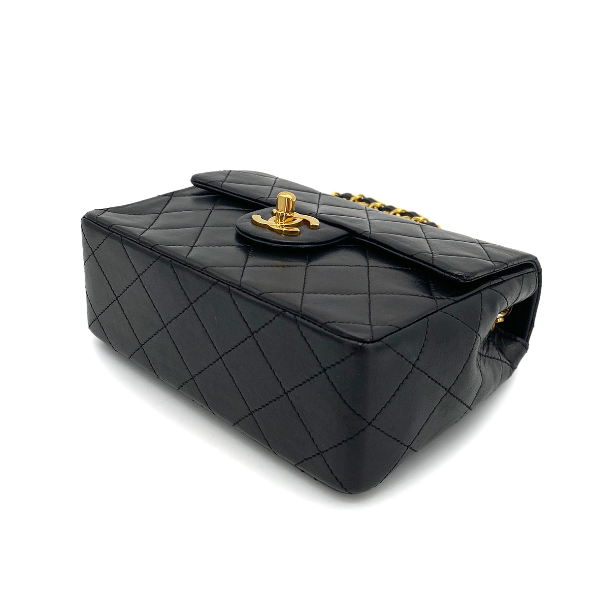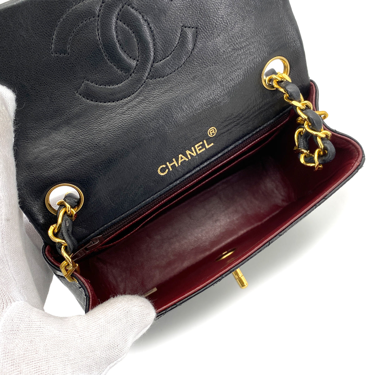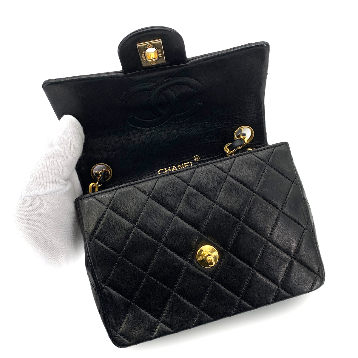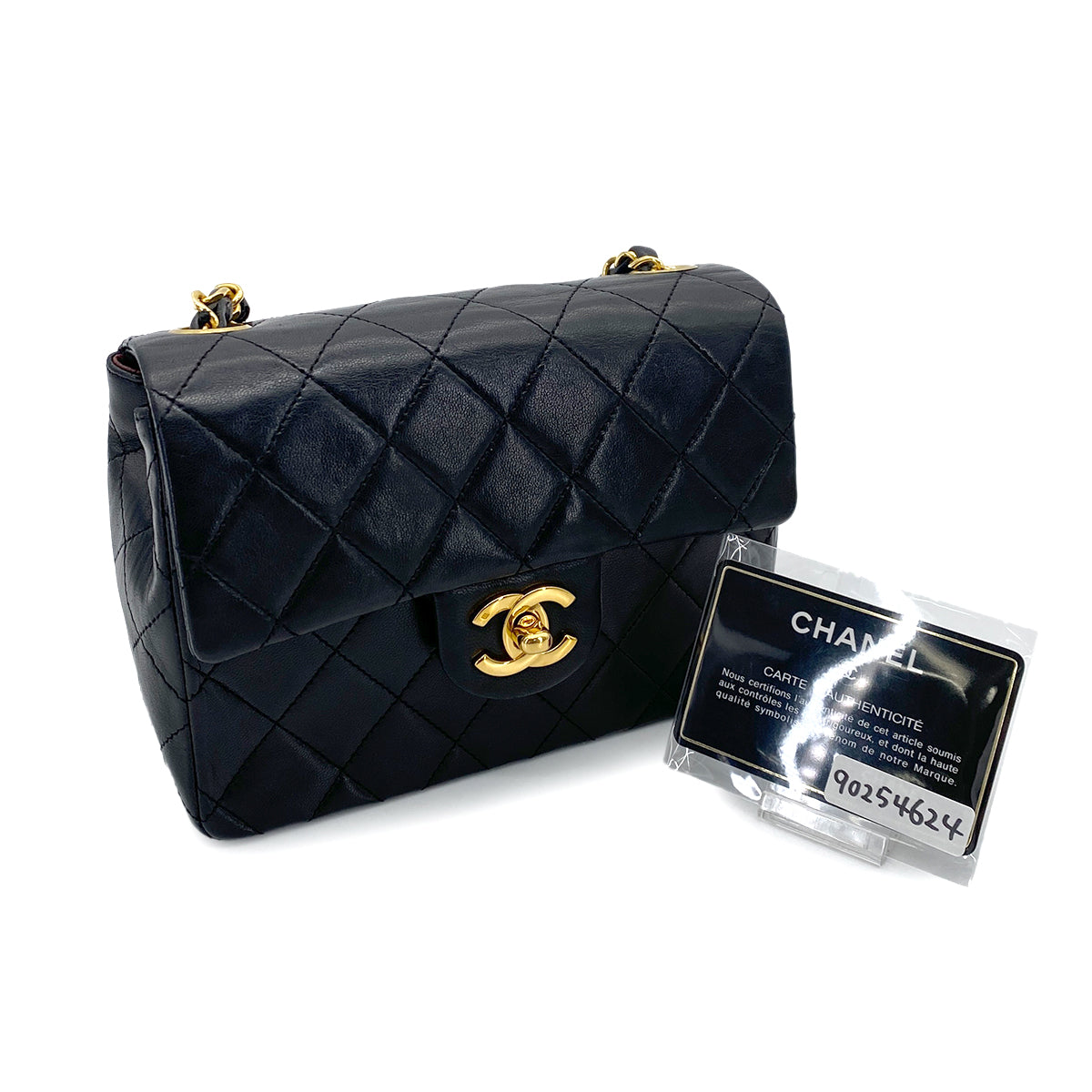 CHANEL VINTAGE MINI SQUARE 17 CHAIN SHOULDER BAG BLACK LAMB SKIN 90254624