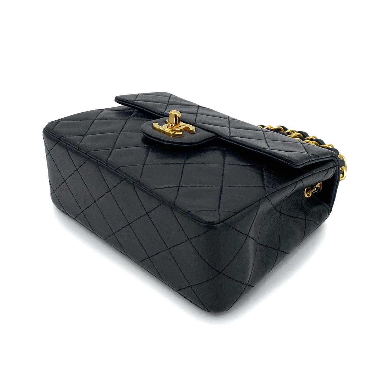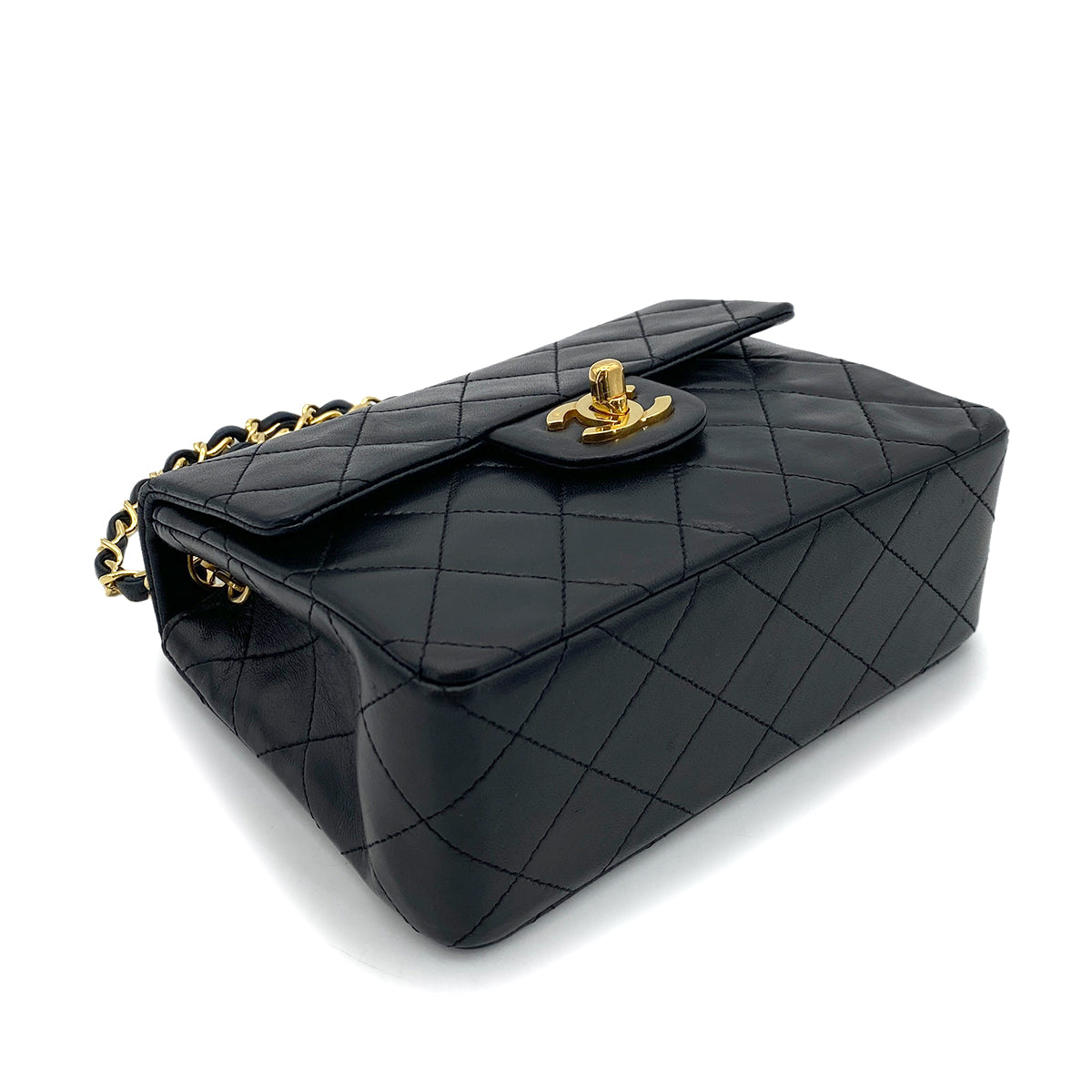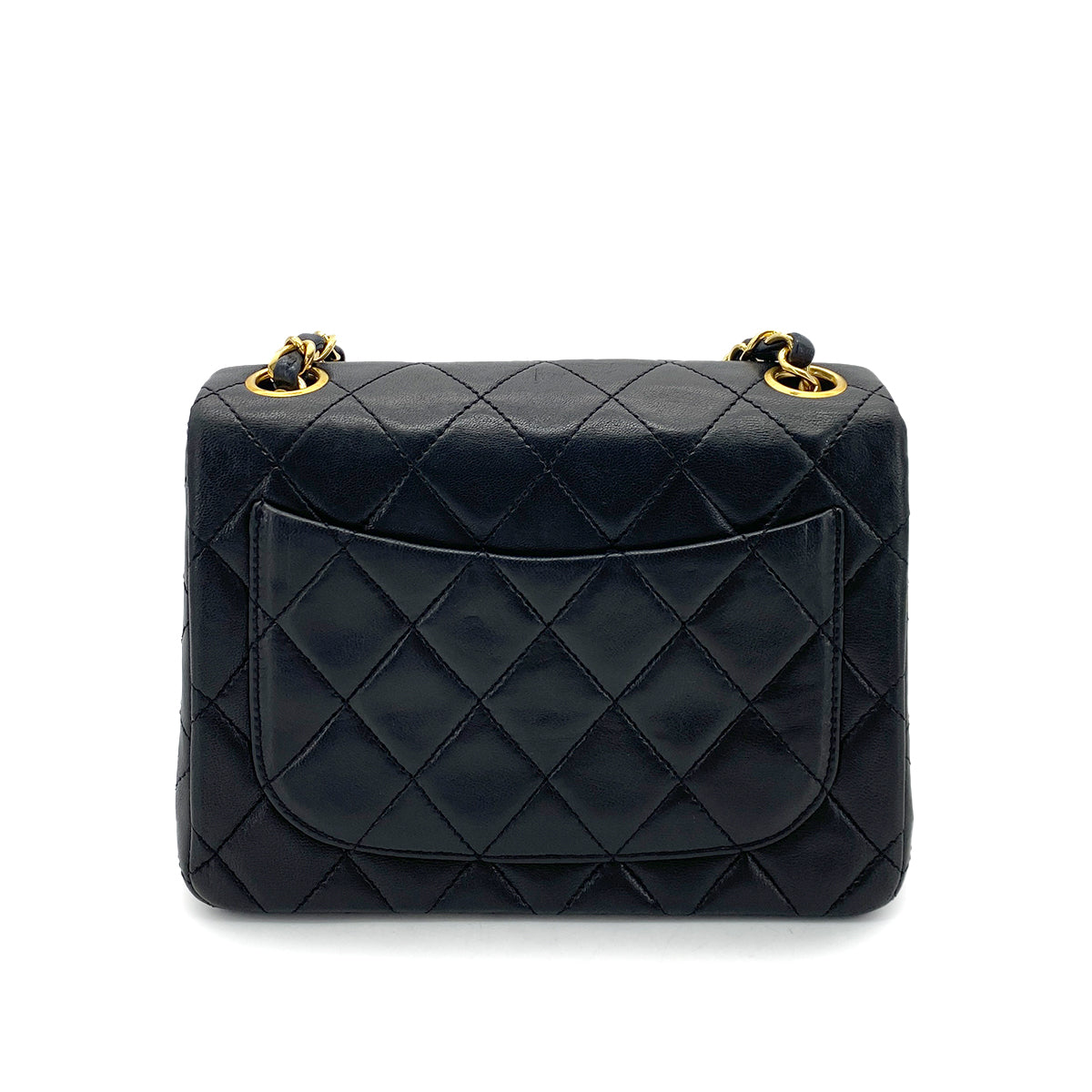 CHANEL VINTAGE MINI SQUARE 17 CHAIN SHOULDER BAG BLACK LAMB SKIN 90255092