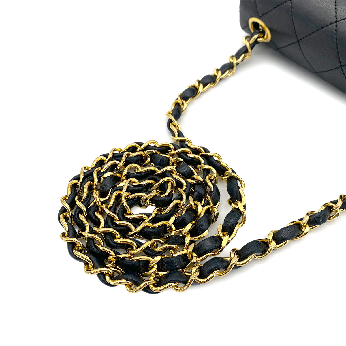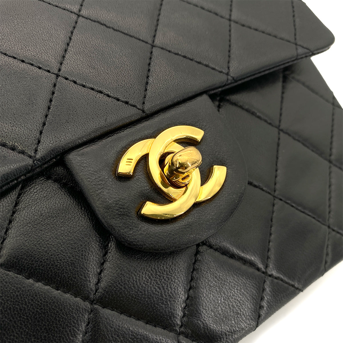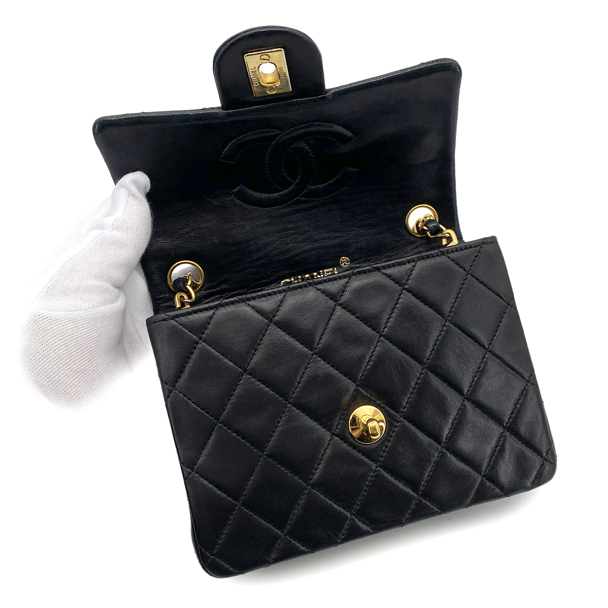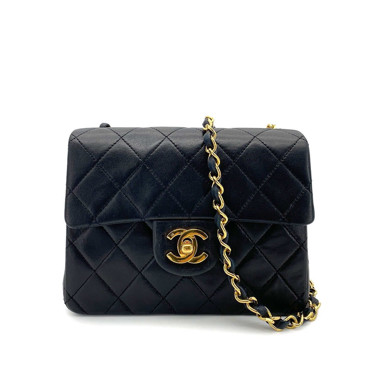 CHANEL VINTAGE MINI SQUARE 17 CHAIN SHOULDER BAG BLACK LAMB SKIN 90255092