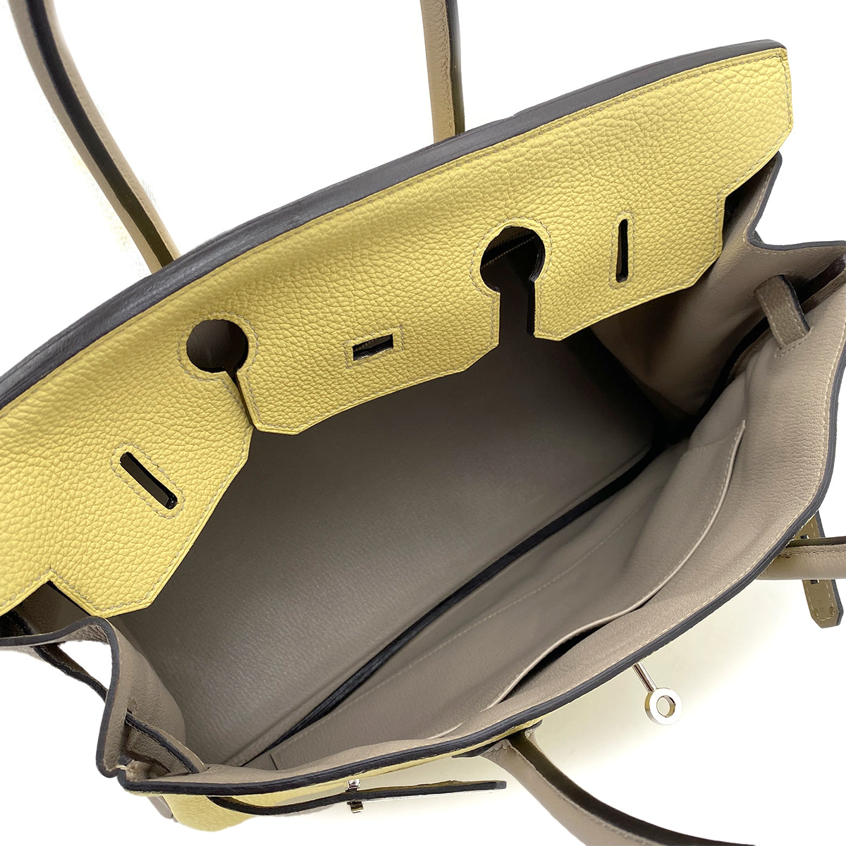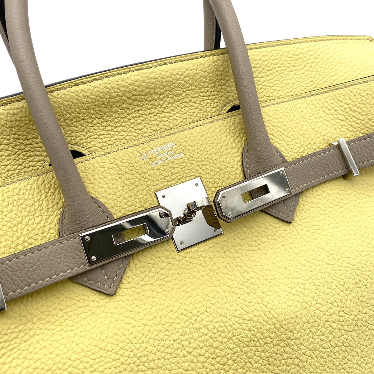 HERMES BIRKIN 35 JAUNE POUSSIN GRIS TOURTERELLE TAURILLON CLEMENCE HAND BAG T SHW SPO 90255359