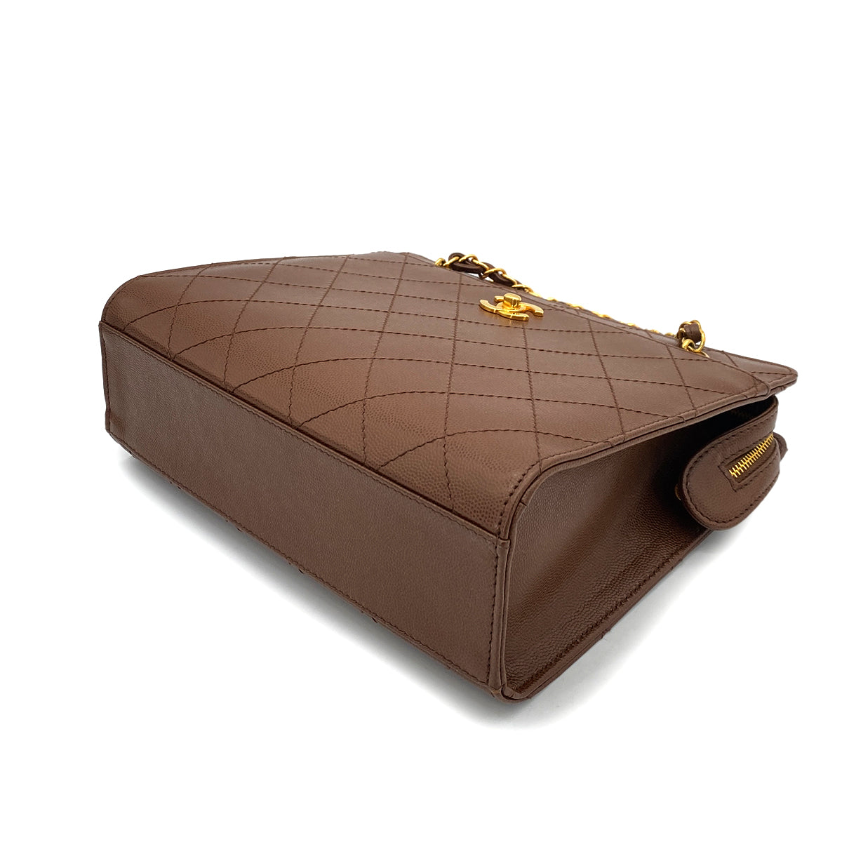 CHANEL VINTAGE CHAIN TOTE BAG BROWN CAVIAR SKIN 90255387