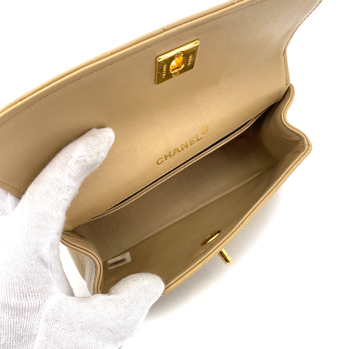 CHANEL VINTAGE MATELASSE CHAIN SHOULDER BAG BEIGE LAMB SKIN 90255392
