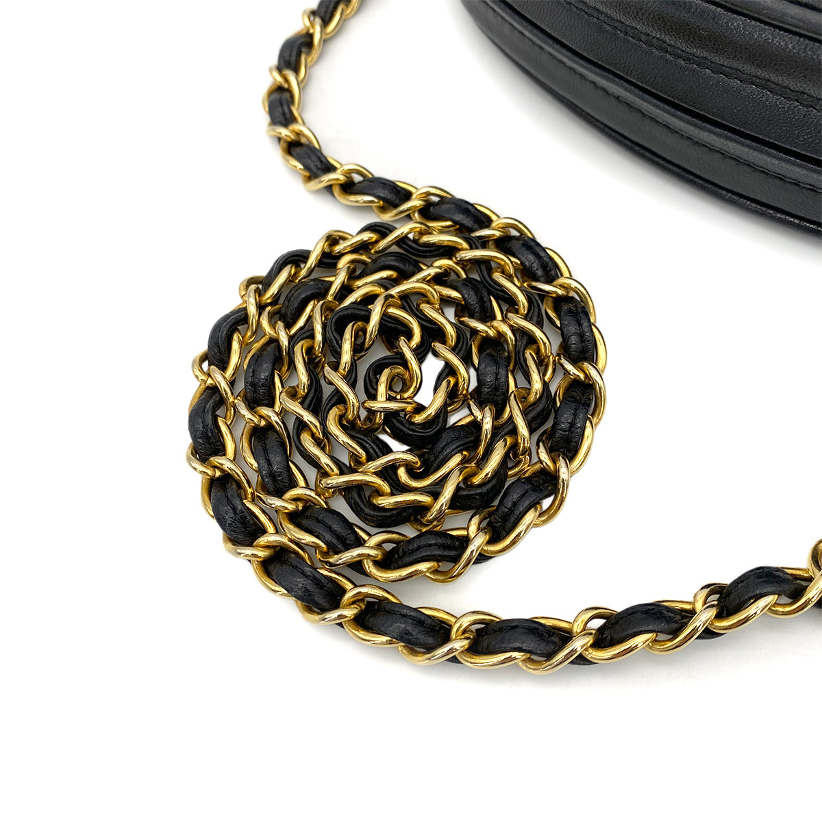 CHANEL VINTAGE FRINGE BIG COCO ROUND CHAIN SHOULDER BAG BLACK LAMB SKIN 90255680