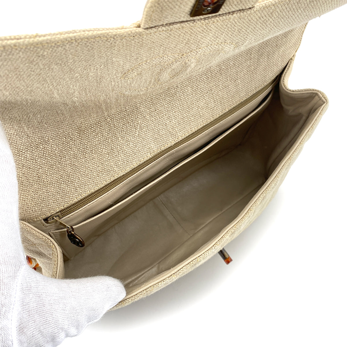 CHANEL VINTAGE TORTOISESHELL CHAIN SHOULDER BAG BEIGE CANVAS 90255783