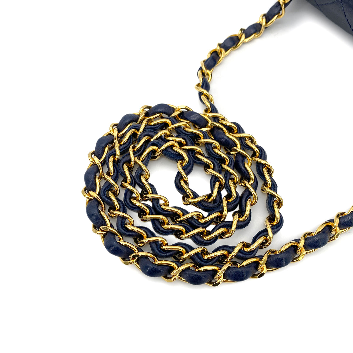 CHANEL VINTAGE MINI SQUARE 17 CHAIN SHOULDER BAG NAVY LAMB SKIN 90255940
