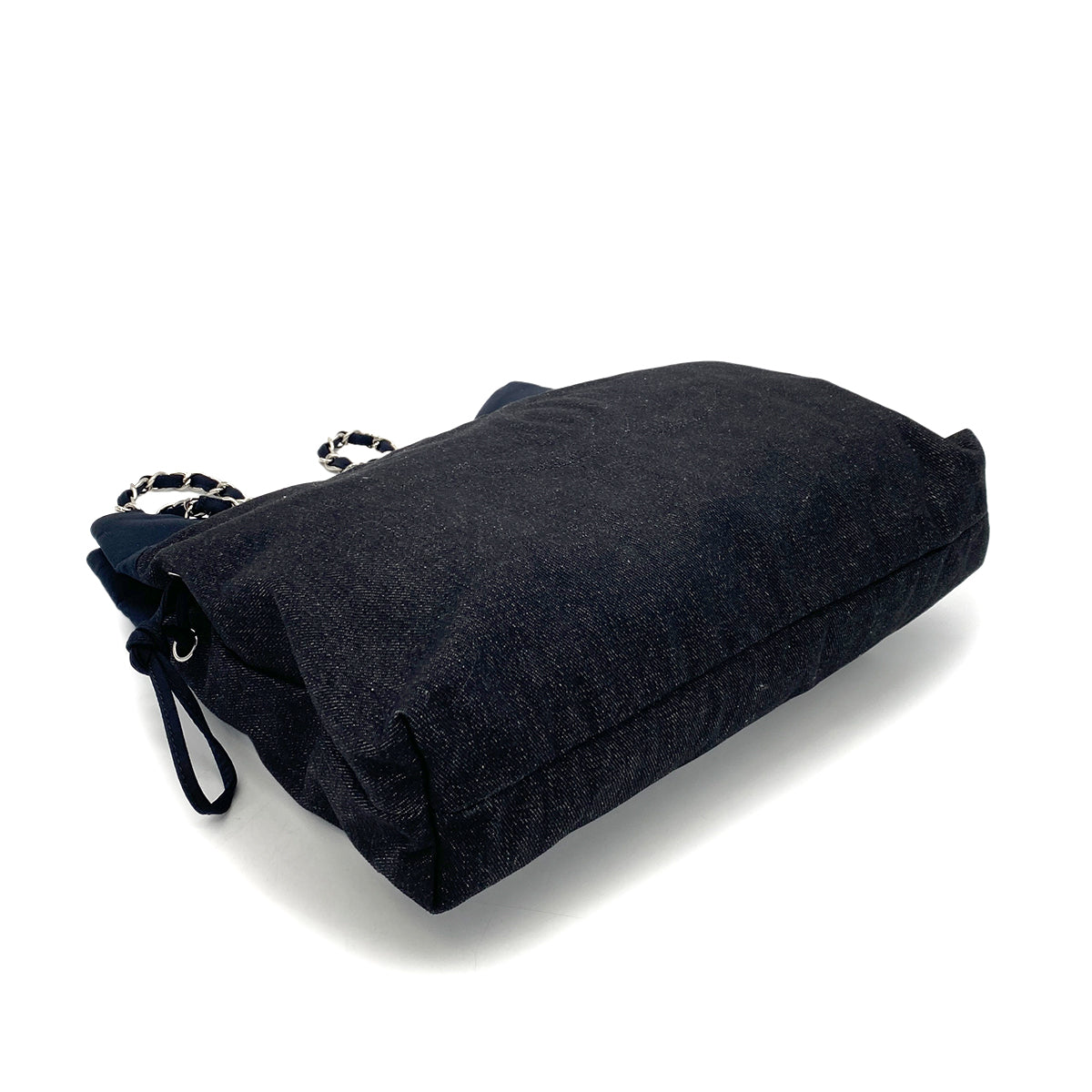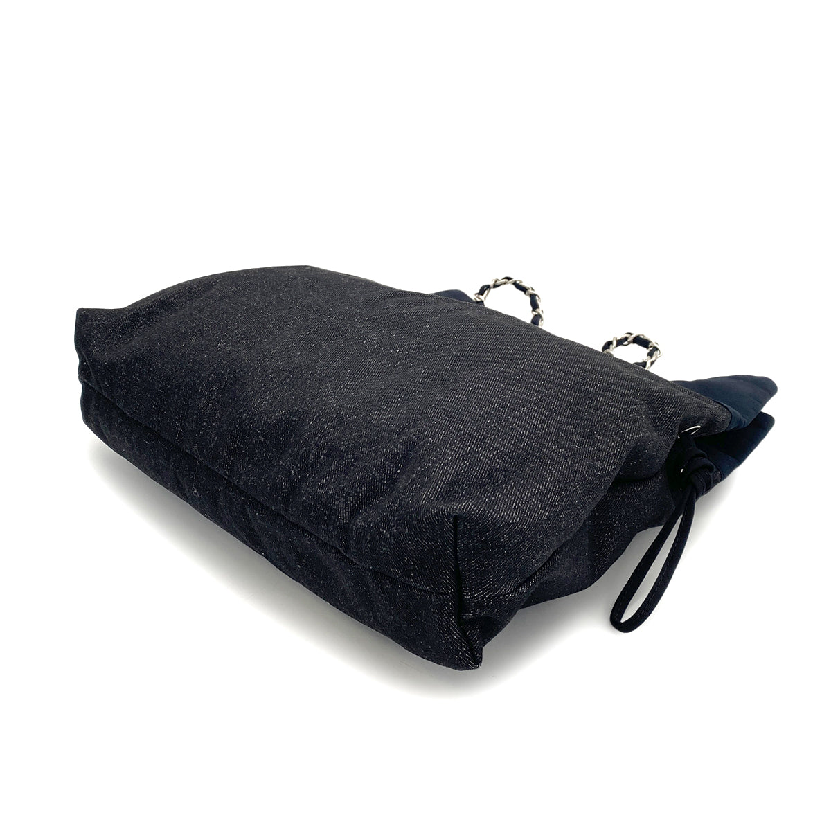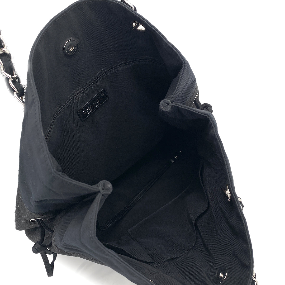 CHANEL VINTAGE CHAIN TOTE BAG BLACK CANVAS 90256433